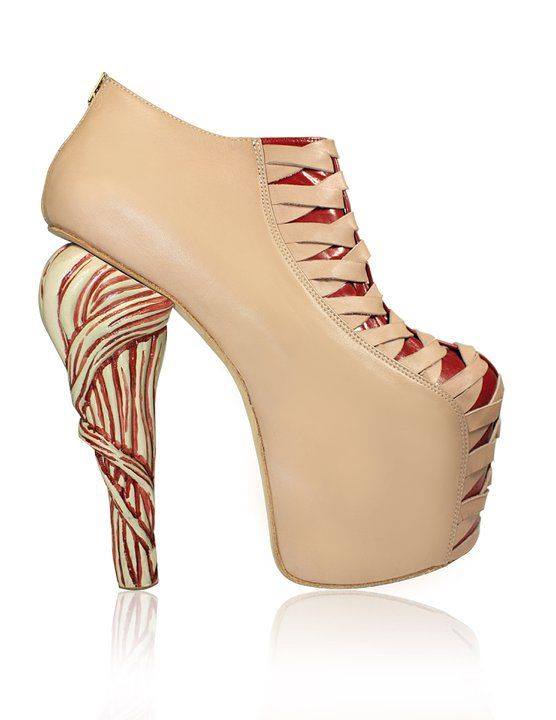 特別是他設計的高跟鞋款,都相當高相當特別。如果是有鞋跟的鞋款,就會在鞋跟上大做文章(像是肌肉的紋裡以及他最著名的骷髏頭後跟)。如果是沒有鞋跟的鞋款,則整雙鞋子都會被設計成語種不同的樣子,有整個鞋子都是鉚釘的(這雙Lady Gaga穿過),也有整雙鞋看起來像是融化一般的,還有以動物蹄為靈感發想的鞋款。