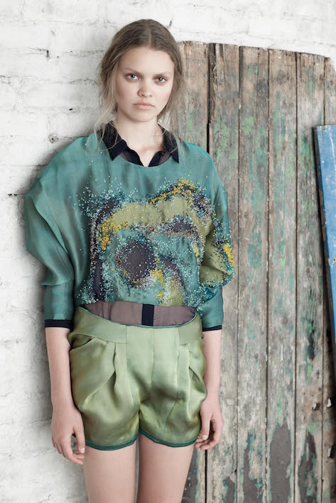 這一季從凋蔽和衰敗的苔蘚中找到優雅的另一面。誰說優雅永遠只能光鮮亮麗呢?除了顏色都選得極好之外,在面料的處理手法上也是細膩到不行,雙重刺繡(利用已刺繡處理過的絲或緞再次手工刺繡)、水晶刺繡,加上有如摺紙藝術的手法,都是極佳。