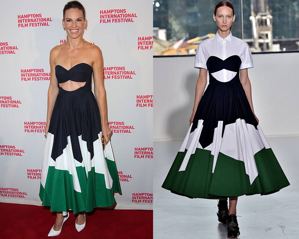 Hilary Swank 在出席電影【The Homesman】的首映時,挑了Delpozo 2015春夏這套別出心裁剪裁的禮服出席。