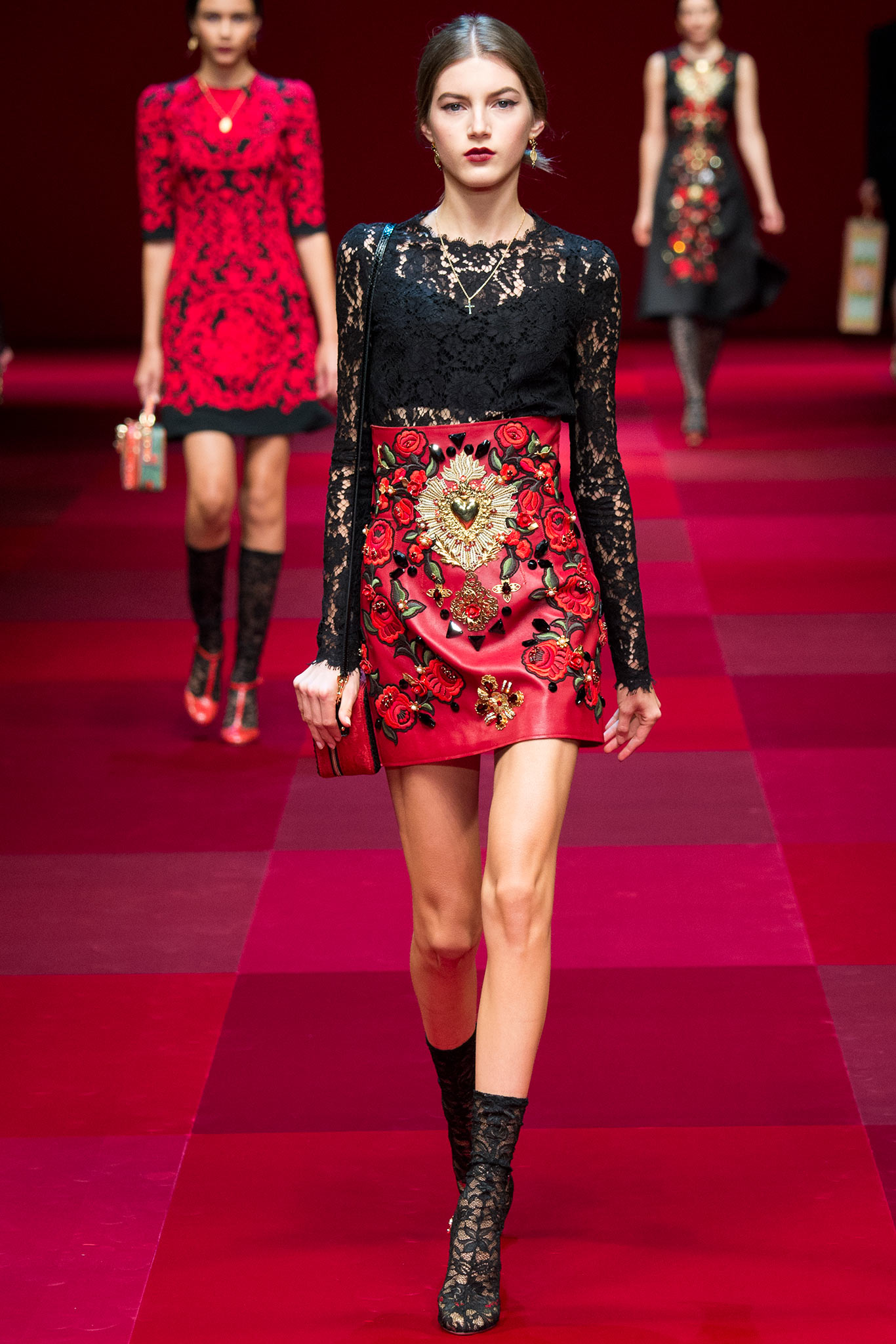 這一季品牌元素傾囊而出,舉凡寶石裝飾,黑色蕾絲,花朵刺繡,率性丹寧,緊身上衣,點點洋裝,寶石皇冠…整個就是要讓人一看就知道,沒錯,這就是Dolce & Gabbana,這就是我們一直堅持的義大利浪漫精神。