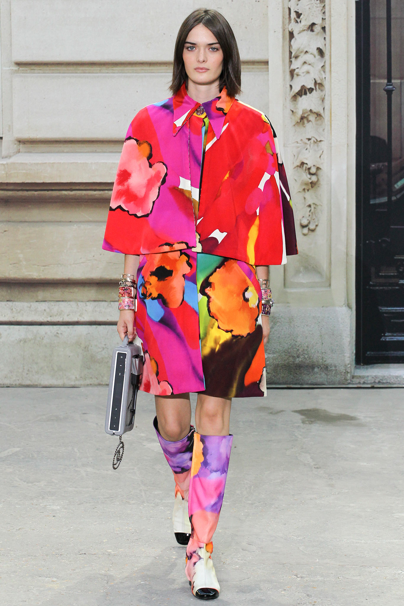 整個系列幾乎沒有貫穿全部的妝容,每一個model幾乎都不太一樣,也沒有一個整體完整的概念來實踐。如果要說有的話,那就是『女性應該按照自己的意思打扮自己,而且也絕對有權利這麼做』。所以我們可以看到,從開場的Cara Delevingne穿的略顯寬鬆的Boyish西裝款式,到浪漫到爆炸的花朵印花洋裝(這些繽紛的花朵印花都是老佛爺自己設計,自己畫的,然後再轉印到衣服上的呢!)再到有點軍裝元素的搭配,休閒元素,街頭元素,當然也有經典的優雅黑白調性套裝(我還是比較喜歡這個部分)。
