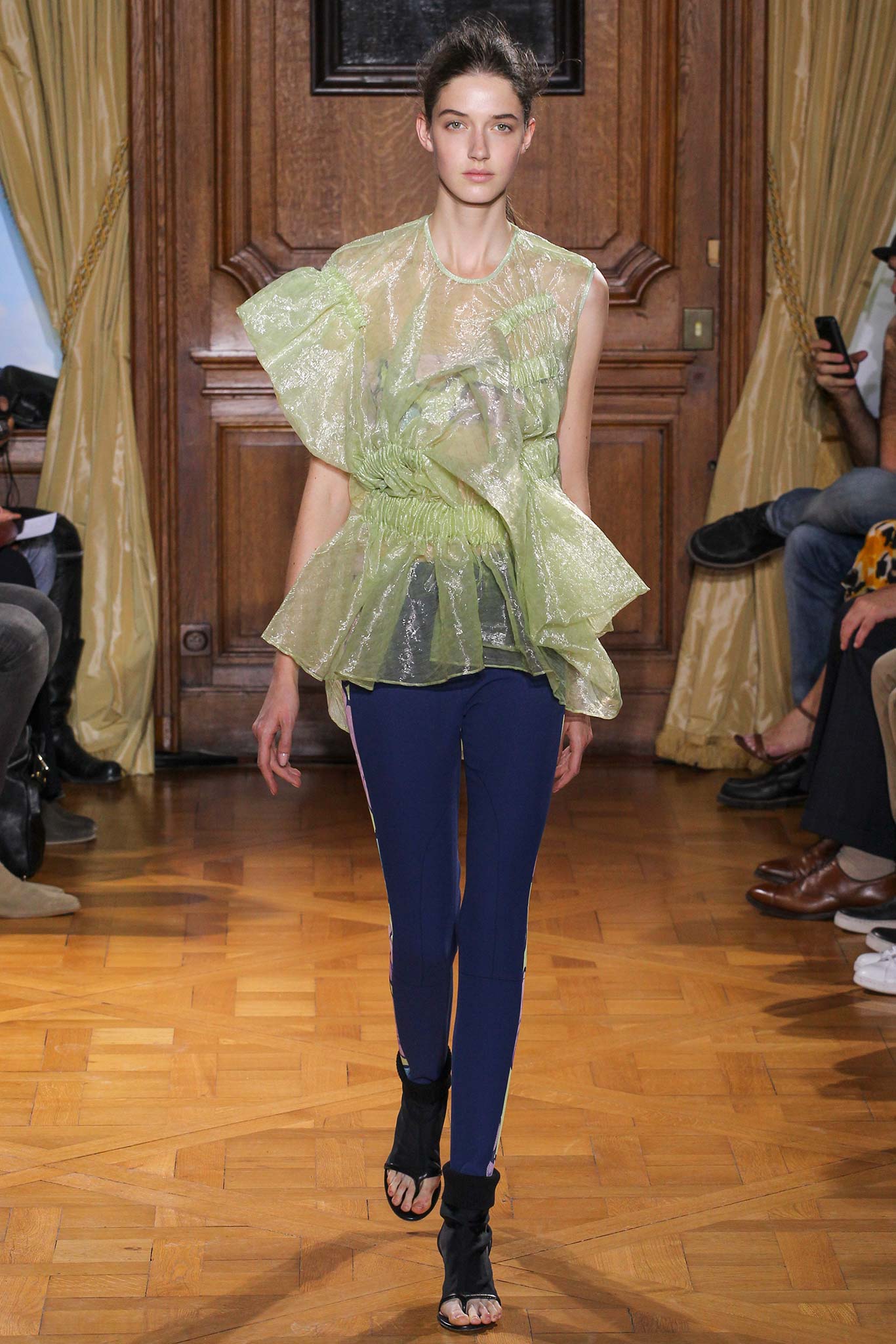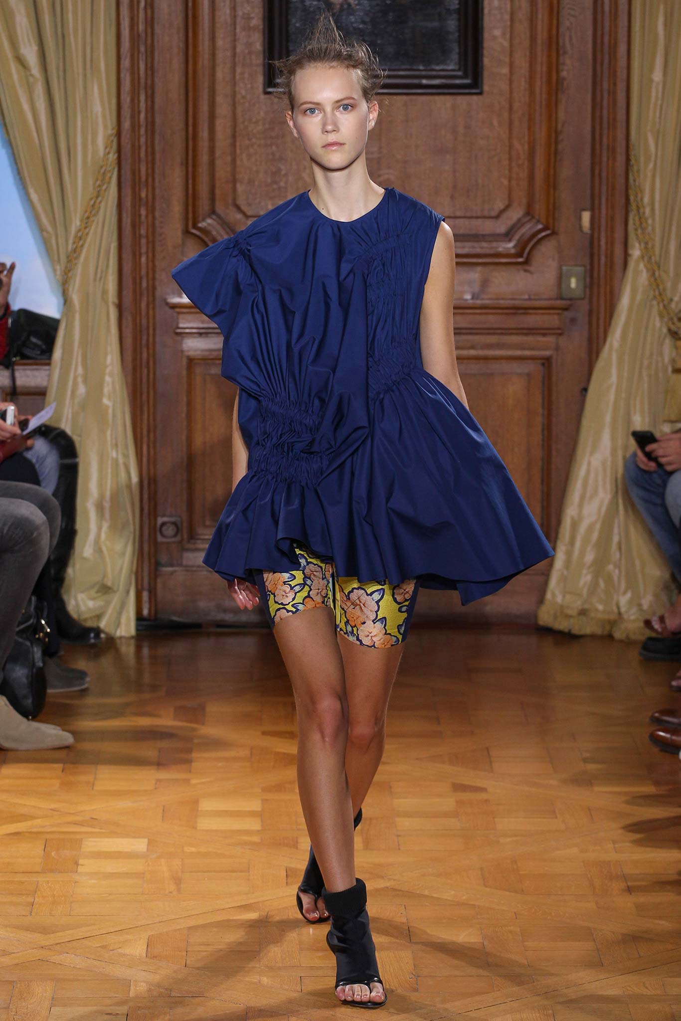 這一季把夯到炸的自行車褲和leggings搬上時裝舞台,並且加上了青春洋溢的花朵印花。除此之外,在上衣部份,我們也可以看到很多剪裁精緻的設計巧思。舉凡層層堆疊的荷葉邊,不對稱的袖子和垂墜,有點怪但很時髦的抓皺,立體結構的上衣,都是很棒的單品。