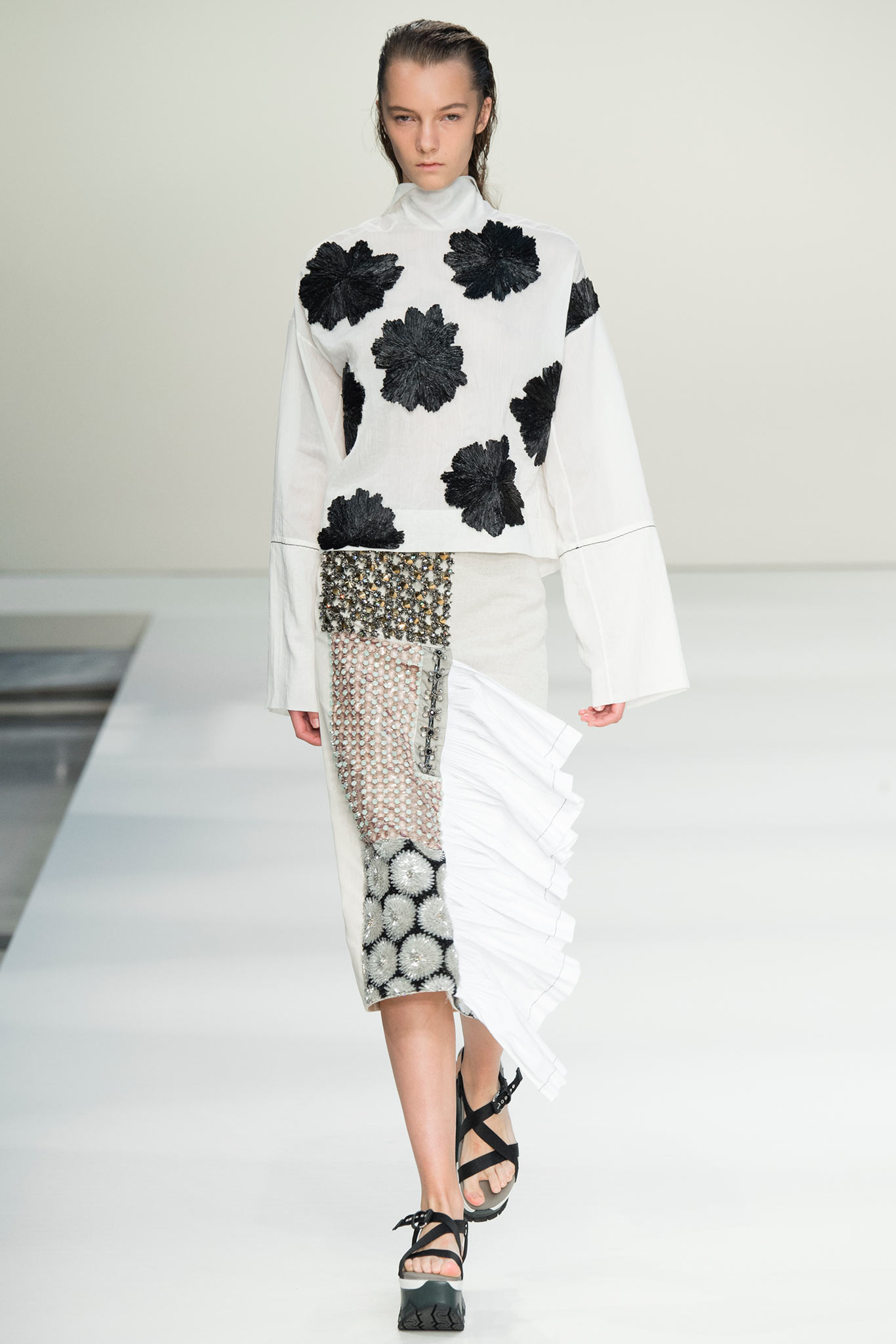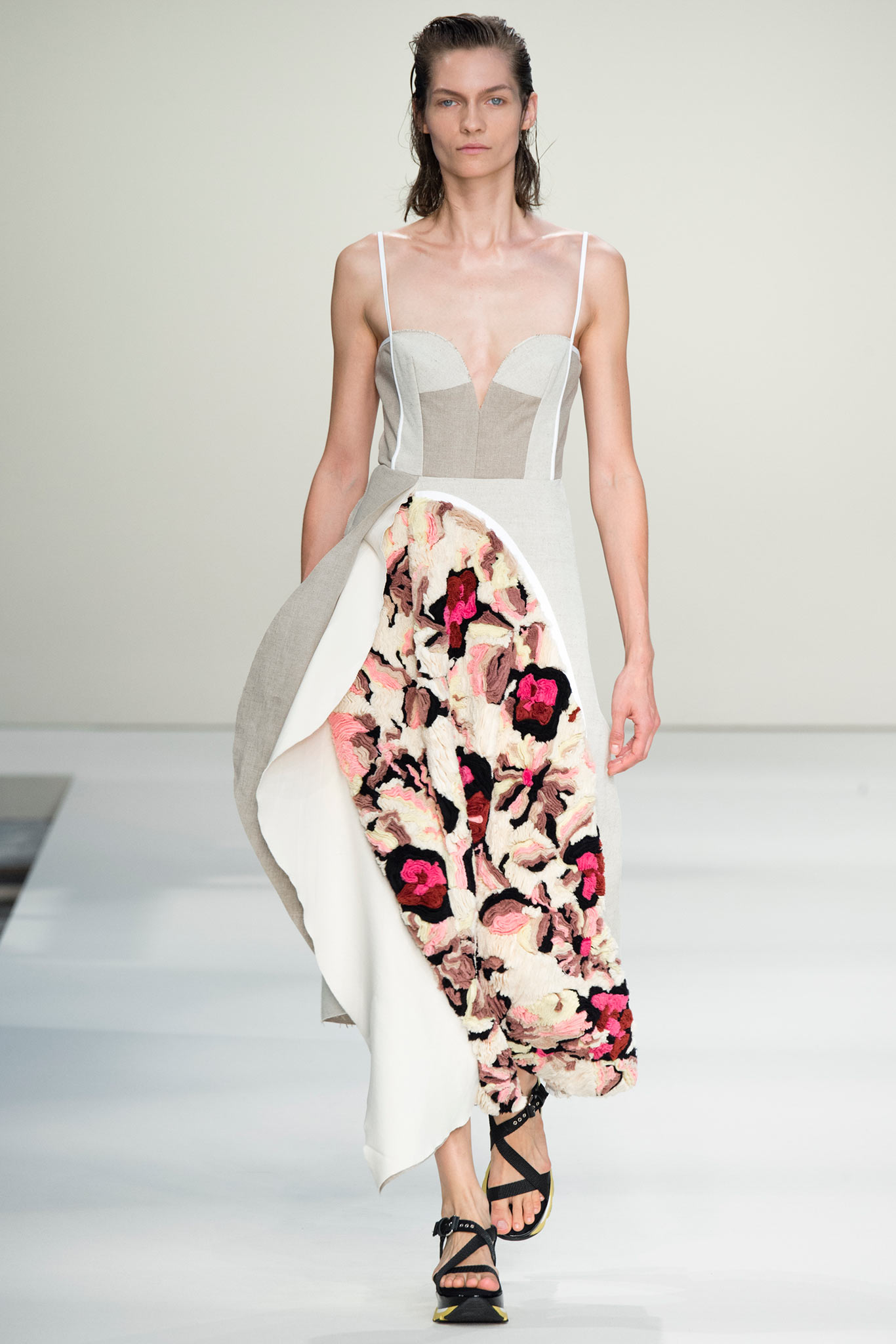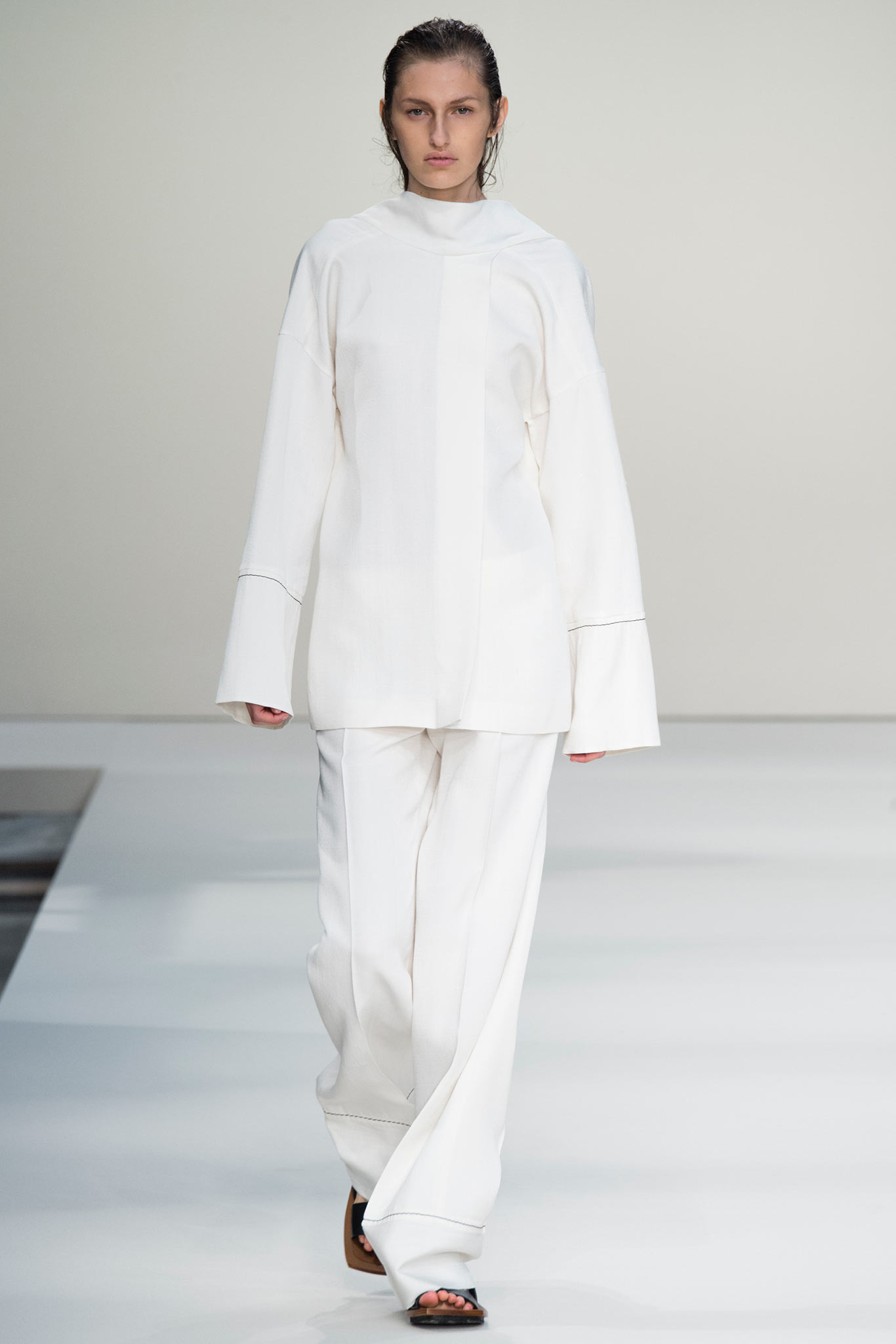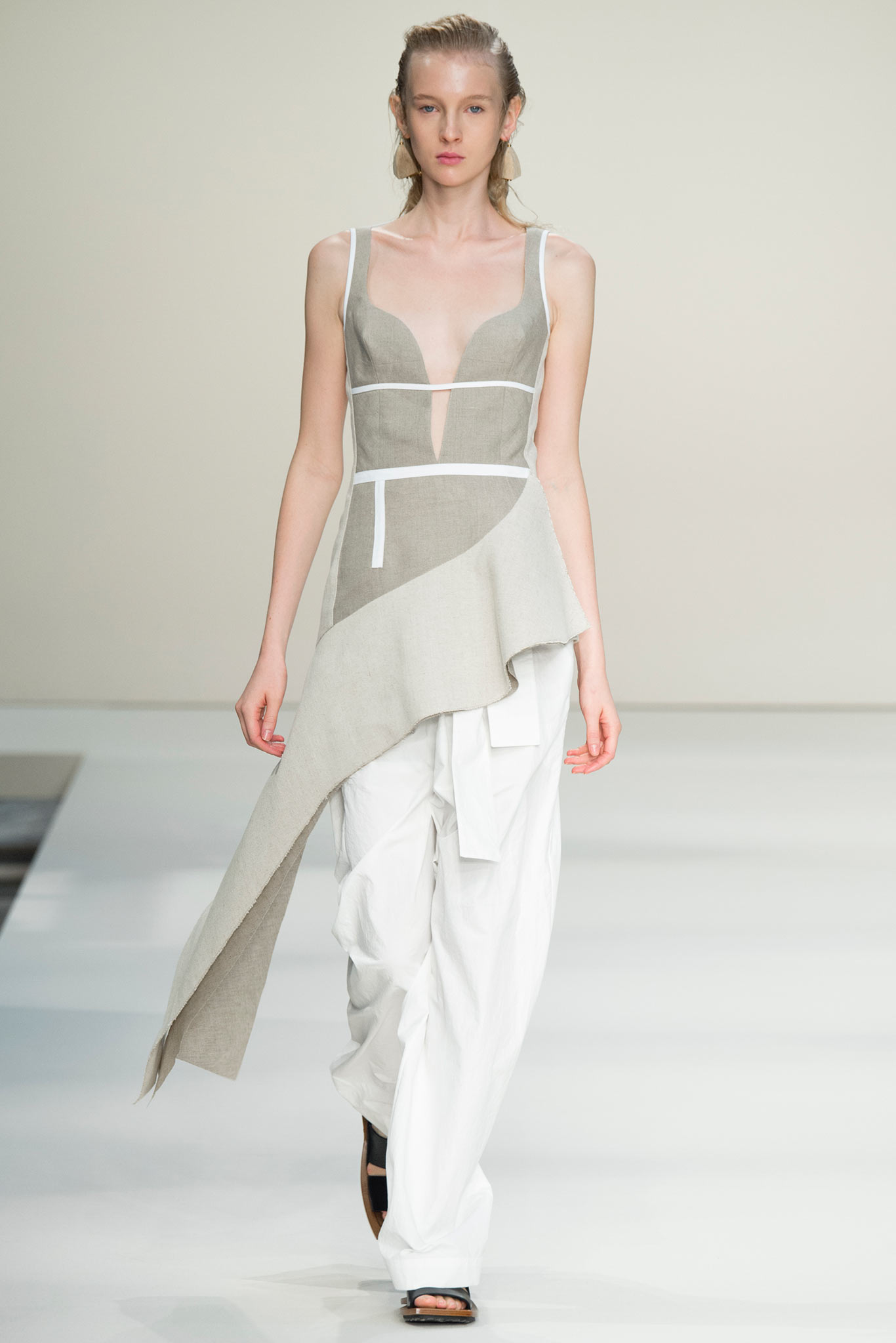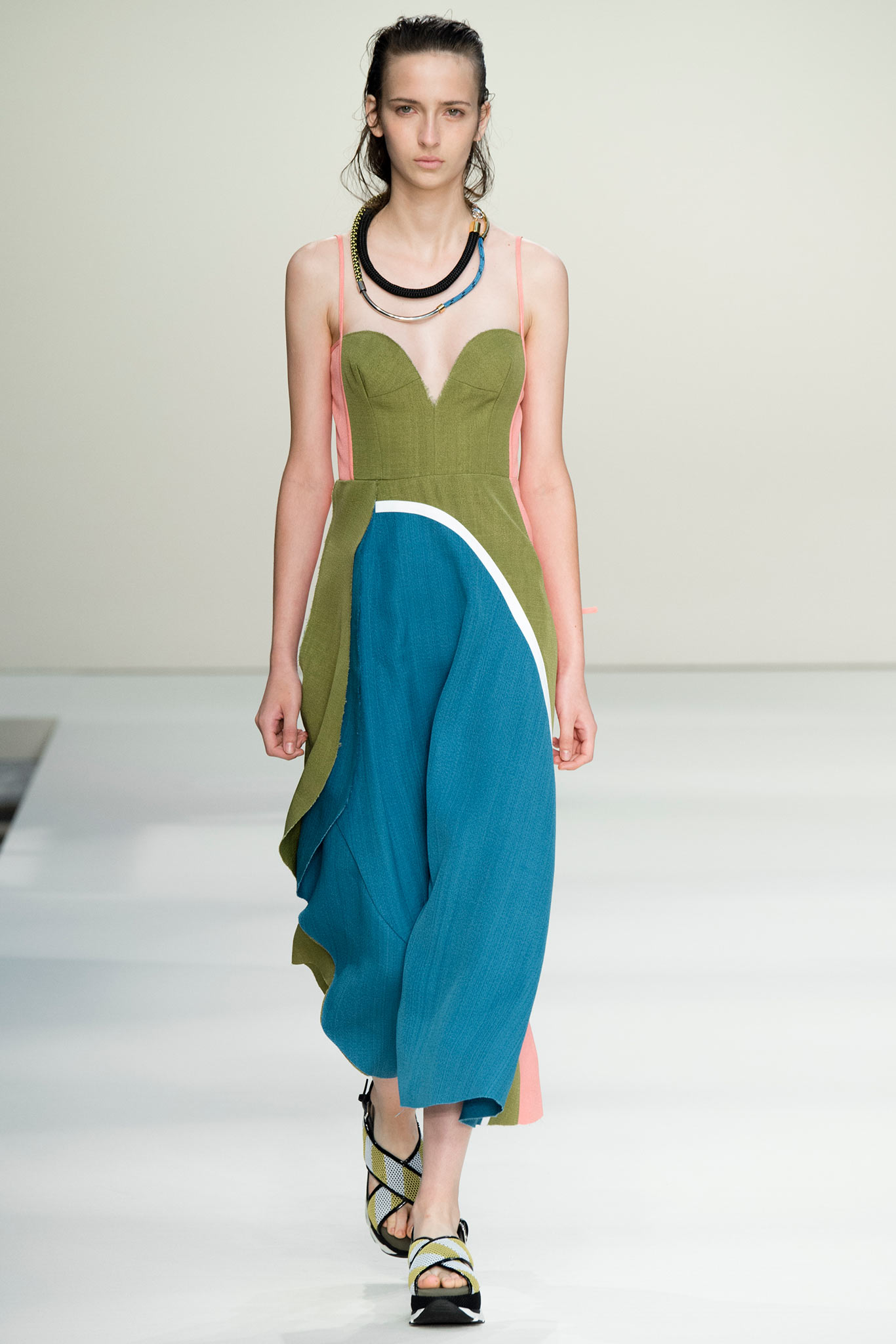 這一季的Marni前幾套以質樸的寬袖麻料洋裝配上黑色長腰帶,完全就是仙風道骨路線。但是我們看到脖子上的項鍊,又有點前衛,卻帶來了閑靜感。