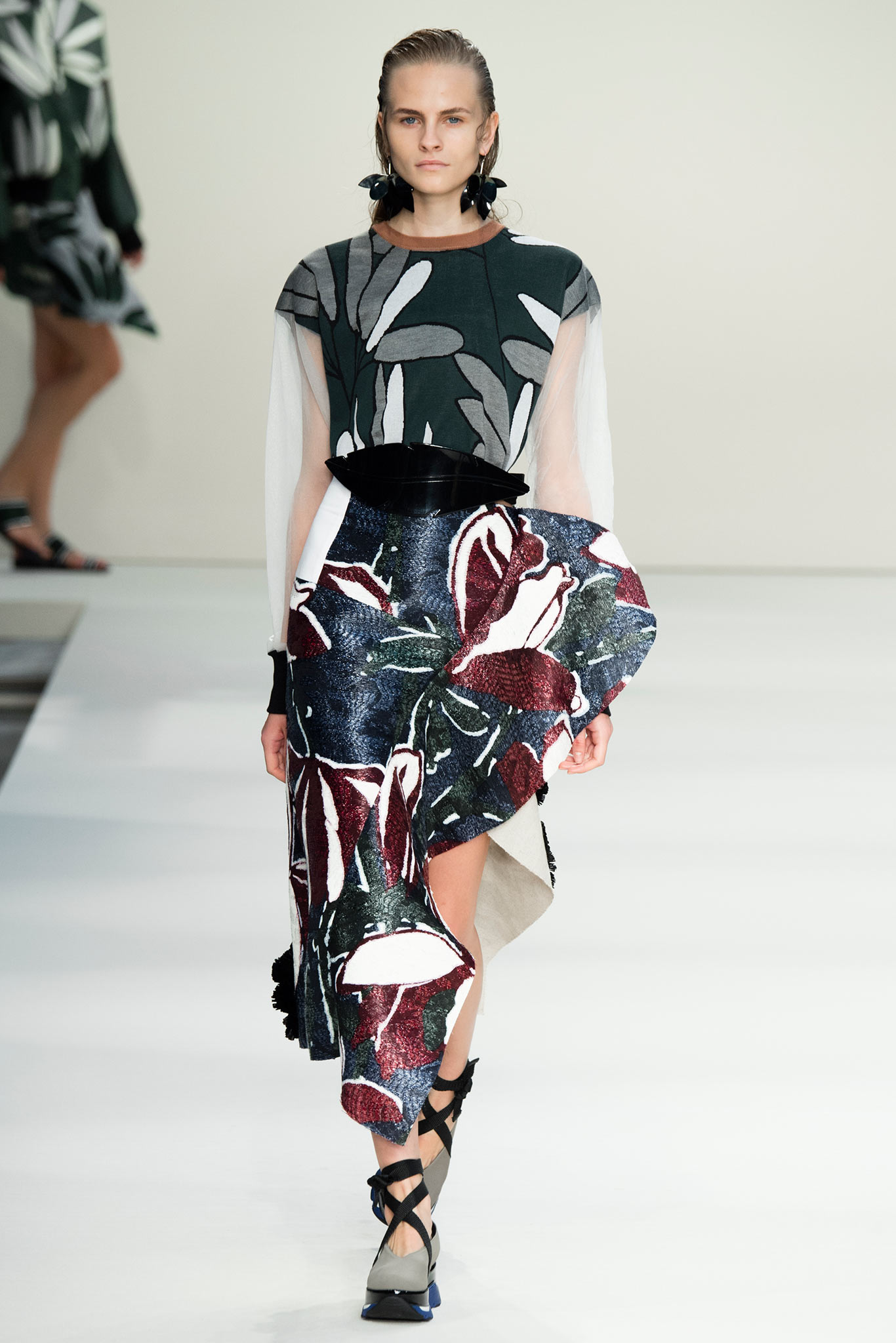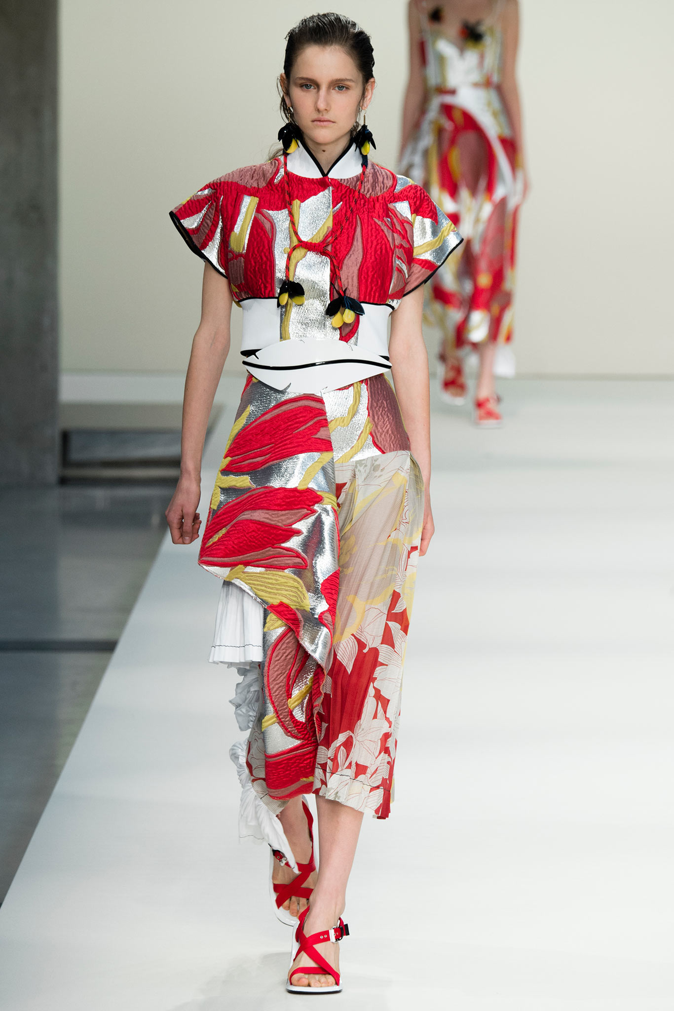 而後,又是我們熟悉的印花出現。我喜歡她對色彩的運用和印花的設計,活潑有現代感又不零亂,功力很強。最後ㄧ些異材質拼接的洋裝更是精彩。