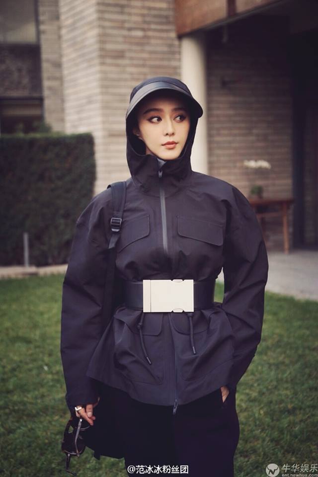 范冰冰果然是一姊,立馬穿上了Alexander Wang X H&M的系列,這套收腰款式的風衣,和達新牌雨衣有著異曲同工之妙呢~~