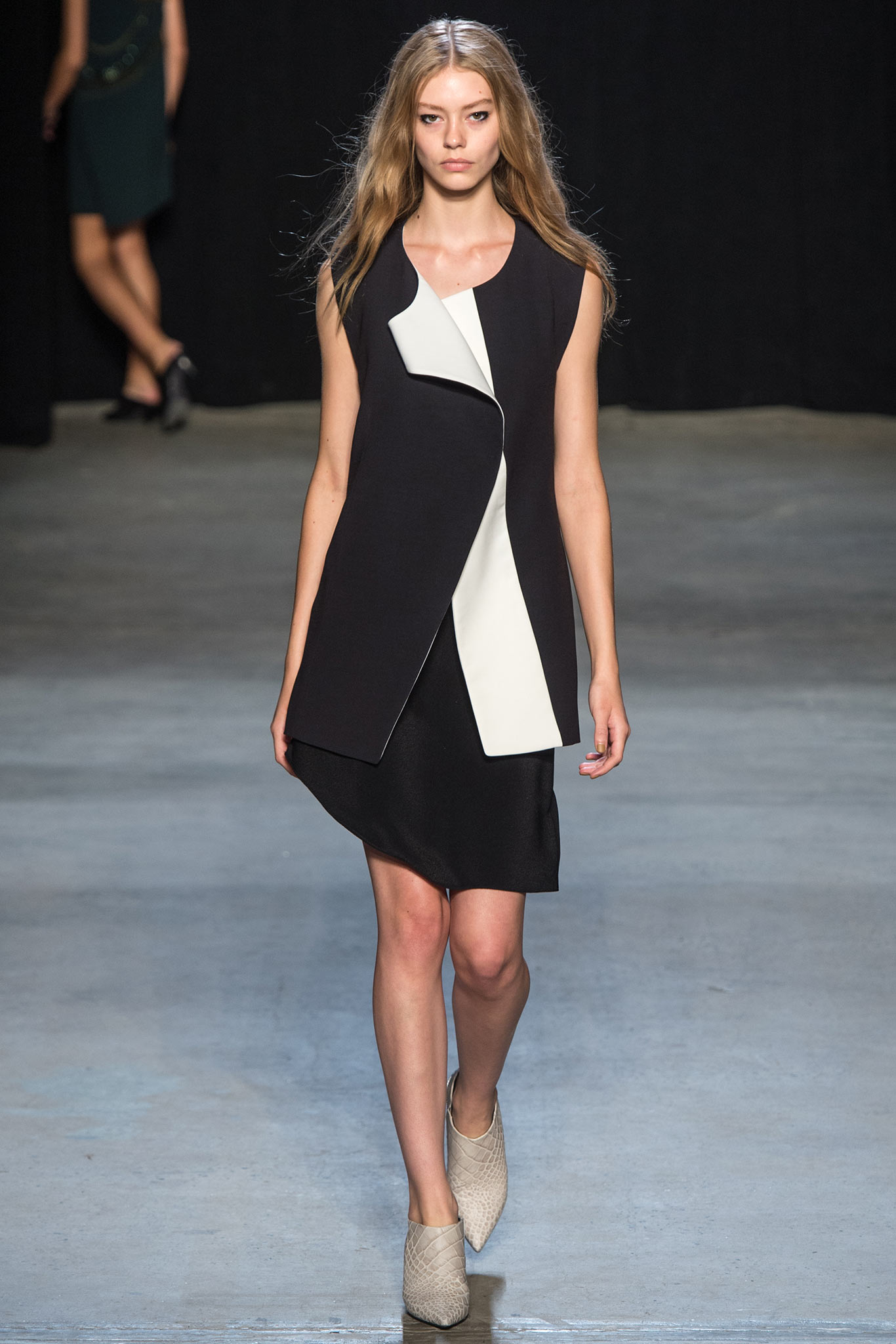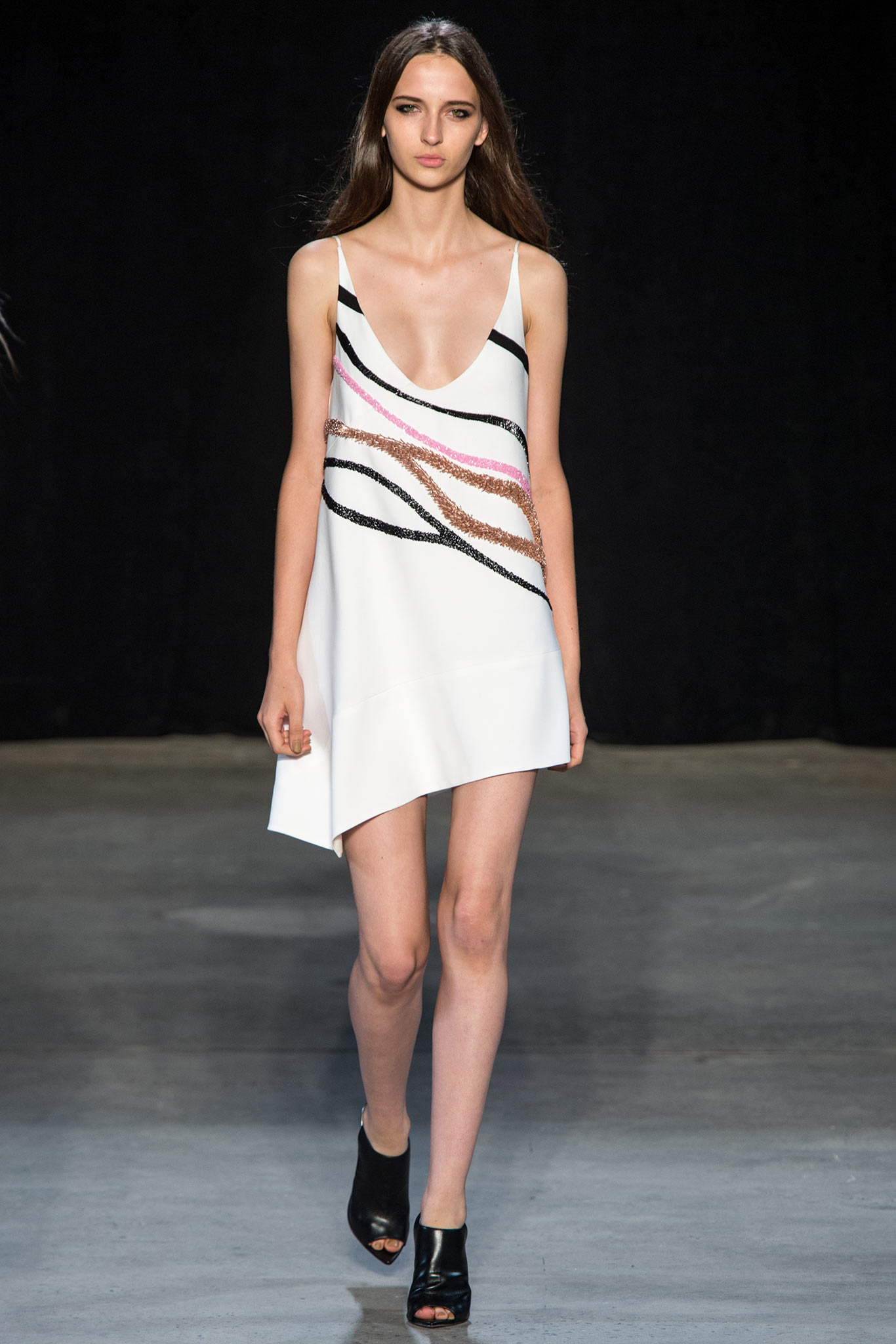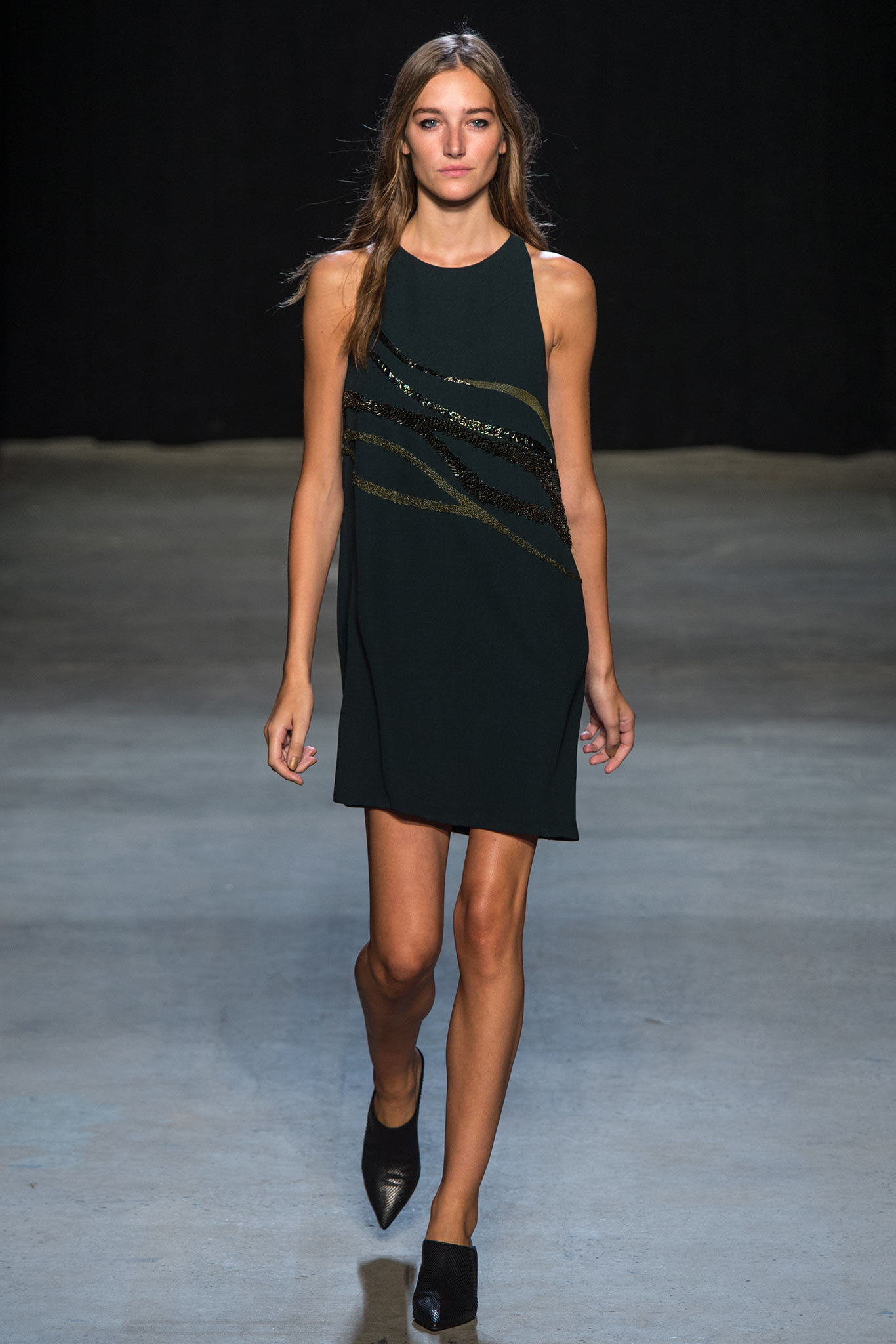 他的設計絕不繁複,淡雅而簡單的線條卻個性鮮明。這一季的靈感發想來自水面的波光,所以在衣服上亮片線條意圖捕捉那粼粼的閃耀之美。此外,剪裁極俐落,不管裙子還是褲裝,長度都落得剛好。