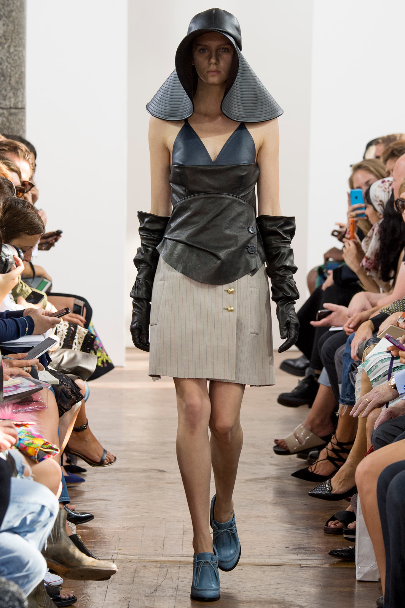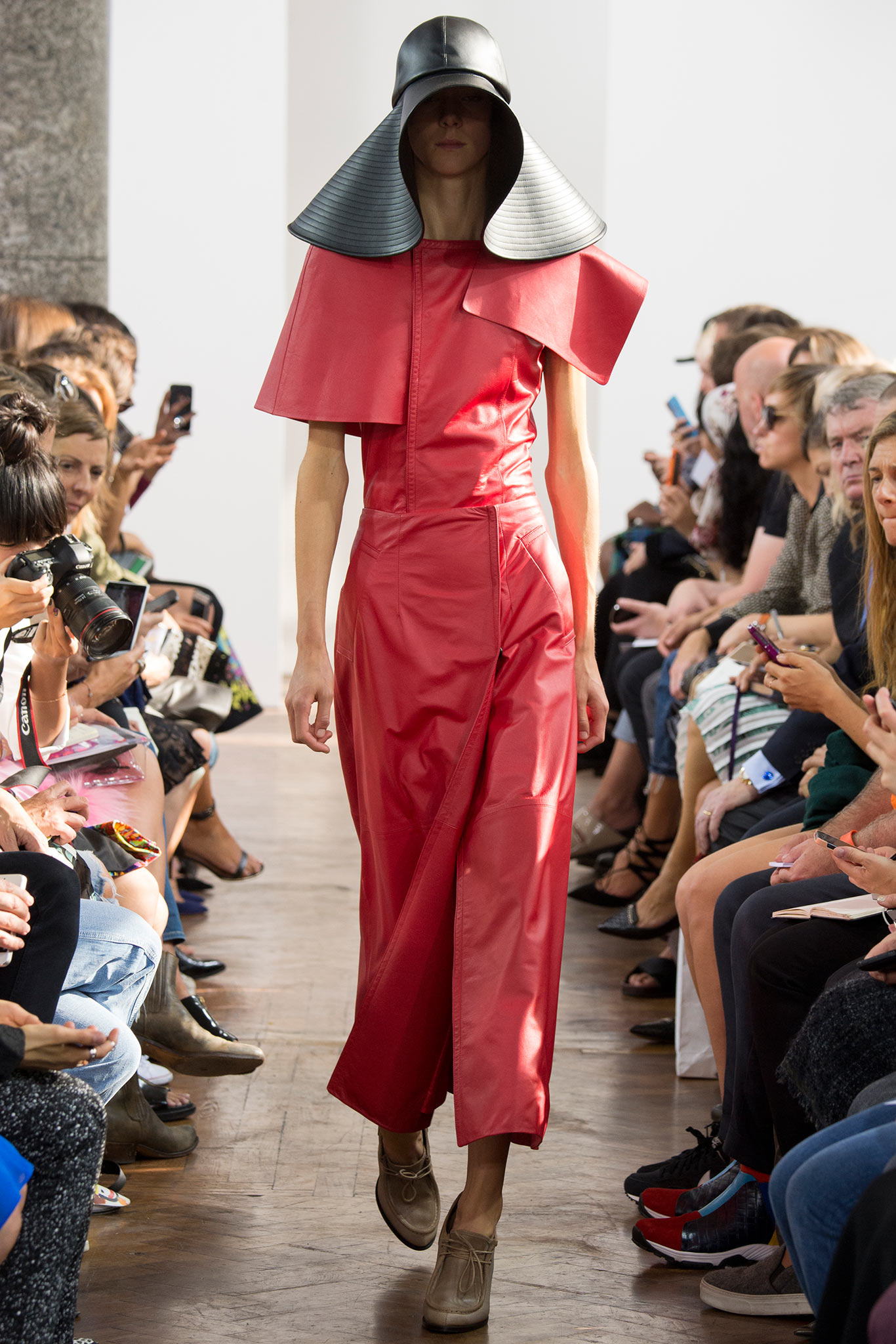 當然,沒有一點誇張戲劇元素就不是他了。超大的翻領、巨大的牛角釦、不對稱的設計感領子(我好喜歡那個金屬圓環)、別出心裁的皮革單領都為這系列帶來了新意。