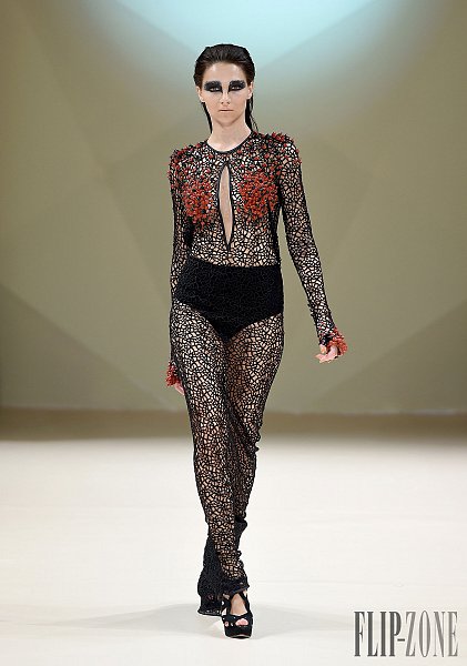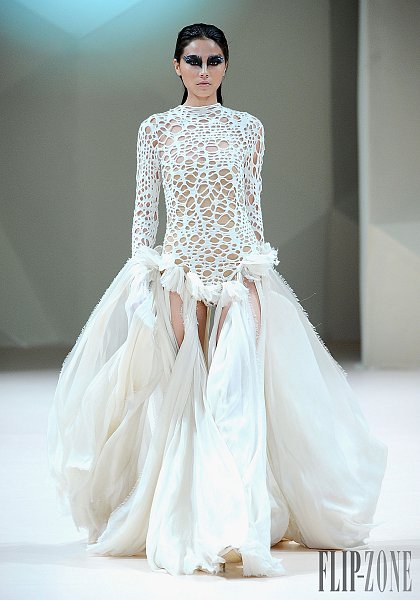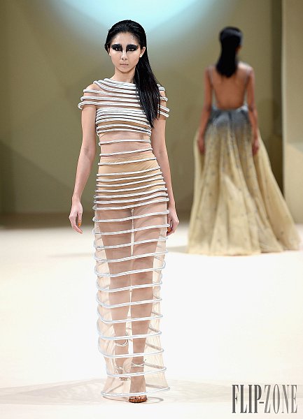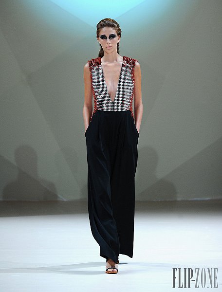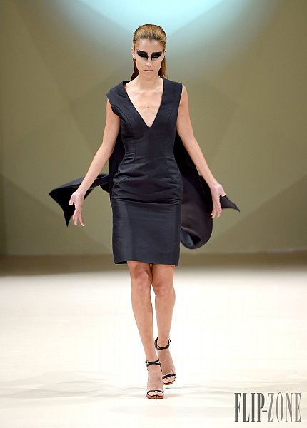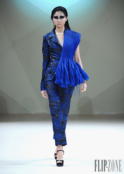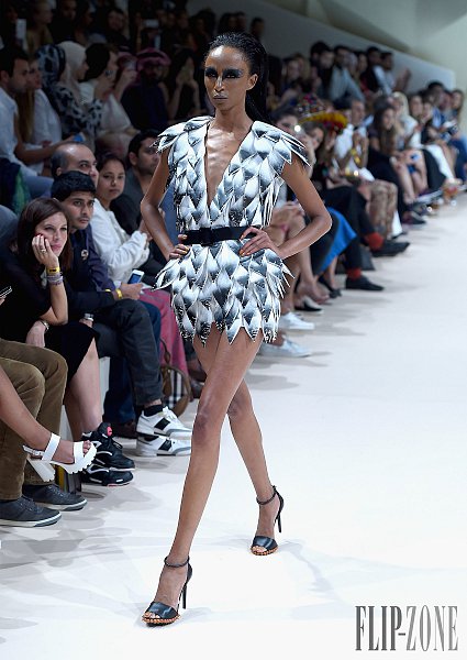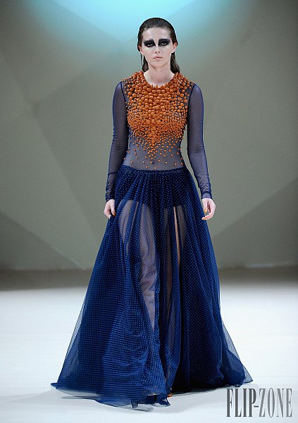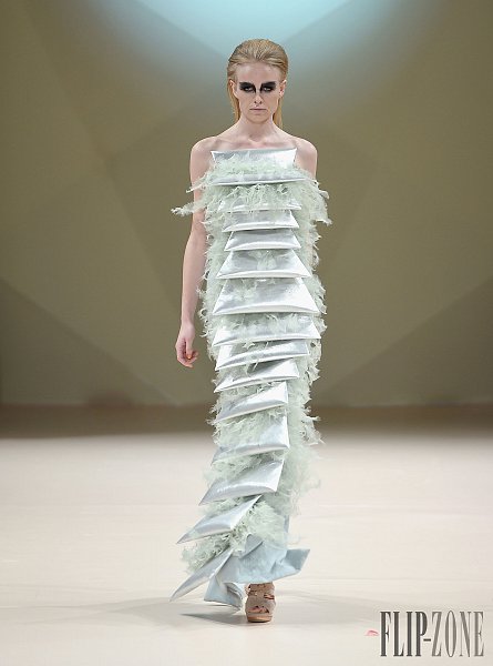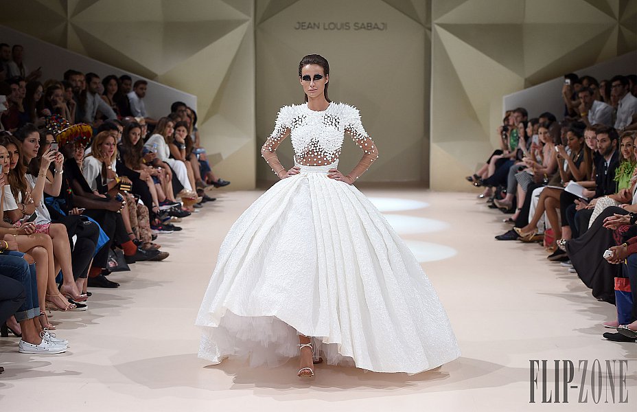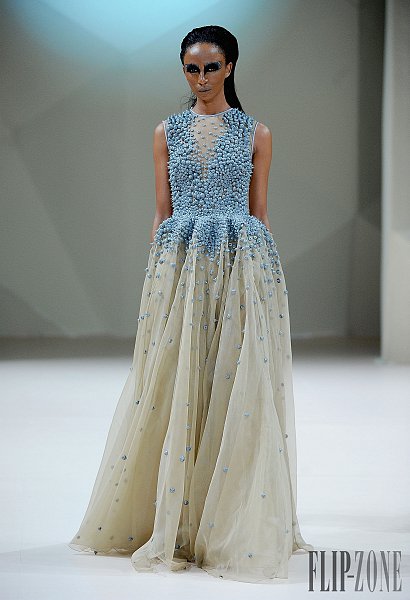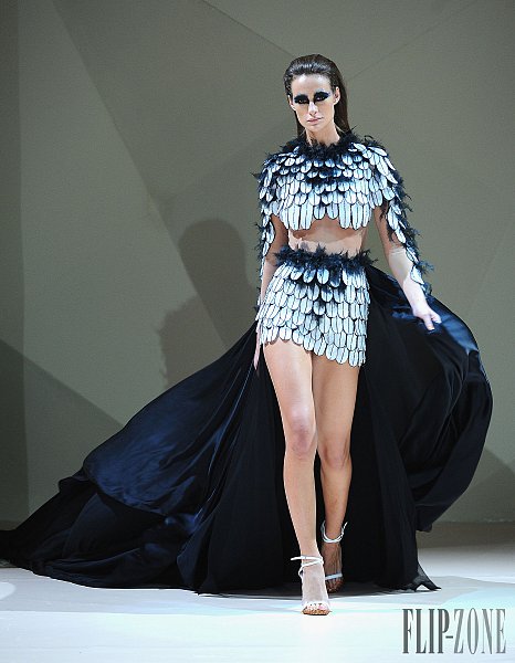 之前有介紹過的黎巴嫩設計師Jean Louis Sabaji,今年的靈感很明顯是來自於鳥。從身上精細繁複又細緻排列的串珠還有刺繡表現出鳥類身上斑斕的顏色,立體剪裁出鳥類羽毛的輪廓組合在身上,整個系列都很鮮豔,帶點不羈,也都是很精美的衣服。在剪裁方面,不是只有晚禮服,短洋裝也布缺少,也有誇張肩膀線條輪廓的設計。雖然在各個層面都顧慮到了,但似乎還是缺少了點貫穿全場的中心思想。