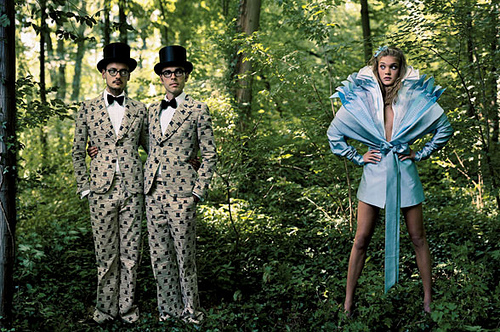 大家都耳熟能詳的愛麗斯夢遊仙境,但是VOGUE就是有辦法玩出新花樣!不是只有Natalia Vodianova當Alice這麼簡單而已,Anna Wintour決定要把設計師通通拉近來一起入鏡了,還請來 Annie Leibovitz,掌鏡。