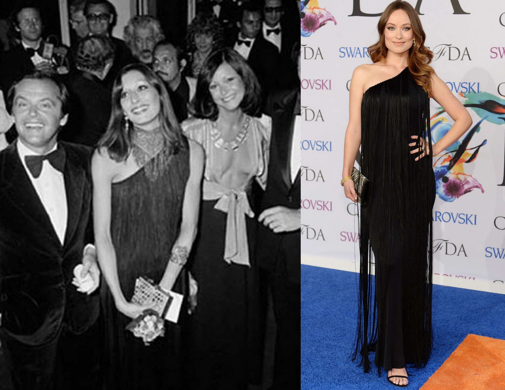 Olivia Wilde身穿Mollie Parnis的骨董禮服出席CFDA頒獎典禮。看起來非常現代的斜肩流蘇禮服看來非常現代,非常時髦,但是這可是Anjelica Huston在1974年於坎城影展身穿的那一件。我想經典的設計就是這樣,時間對於這些設計都不太有影響,歷久彌新,相當好看。腳上搭配的Stuart Weitzman高跟鞋也搭配得很好,是一套完美的禮服。