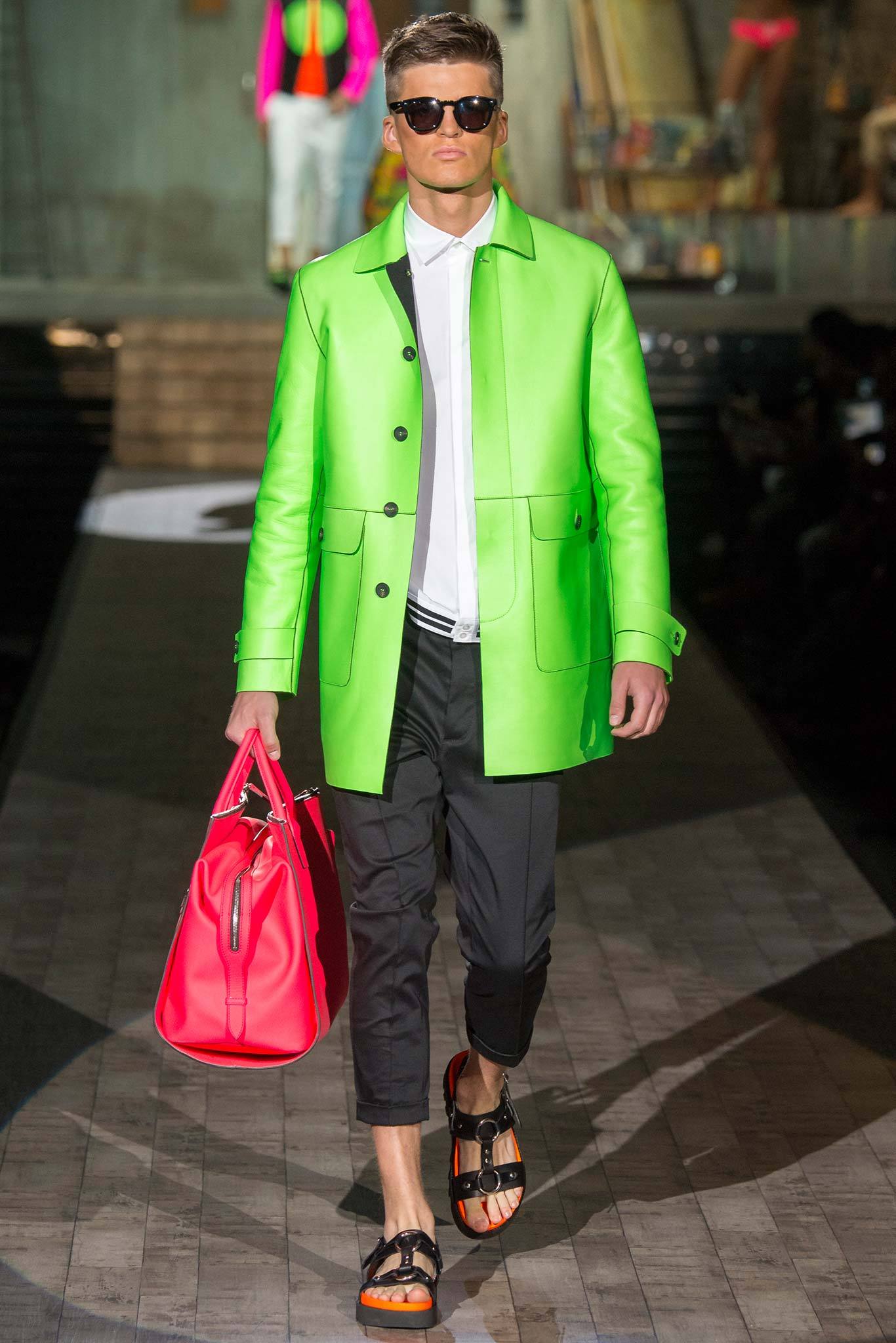 所以我們可以看到相當多大膽色彩拼貼的襯衫,或是搶眼圖案。有很明顯和Andy Warhol致敬的幽默作品,也有讓我想到由Stephan Sprouse幫Louis Vuitton設計的Graffiti作品,然後一些螢光色系的衣服讓我想到之前的Versace。但是都是非常搶眼和印象深刻的單品。