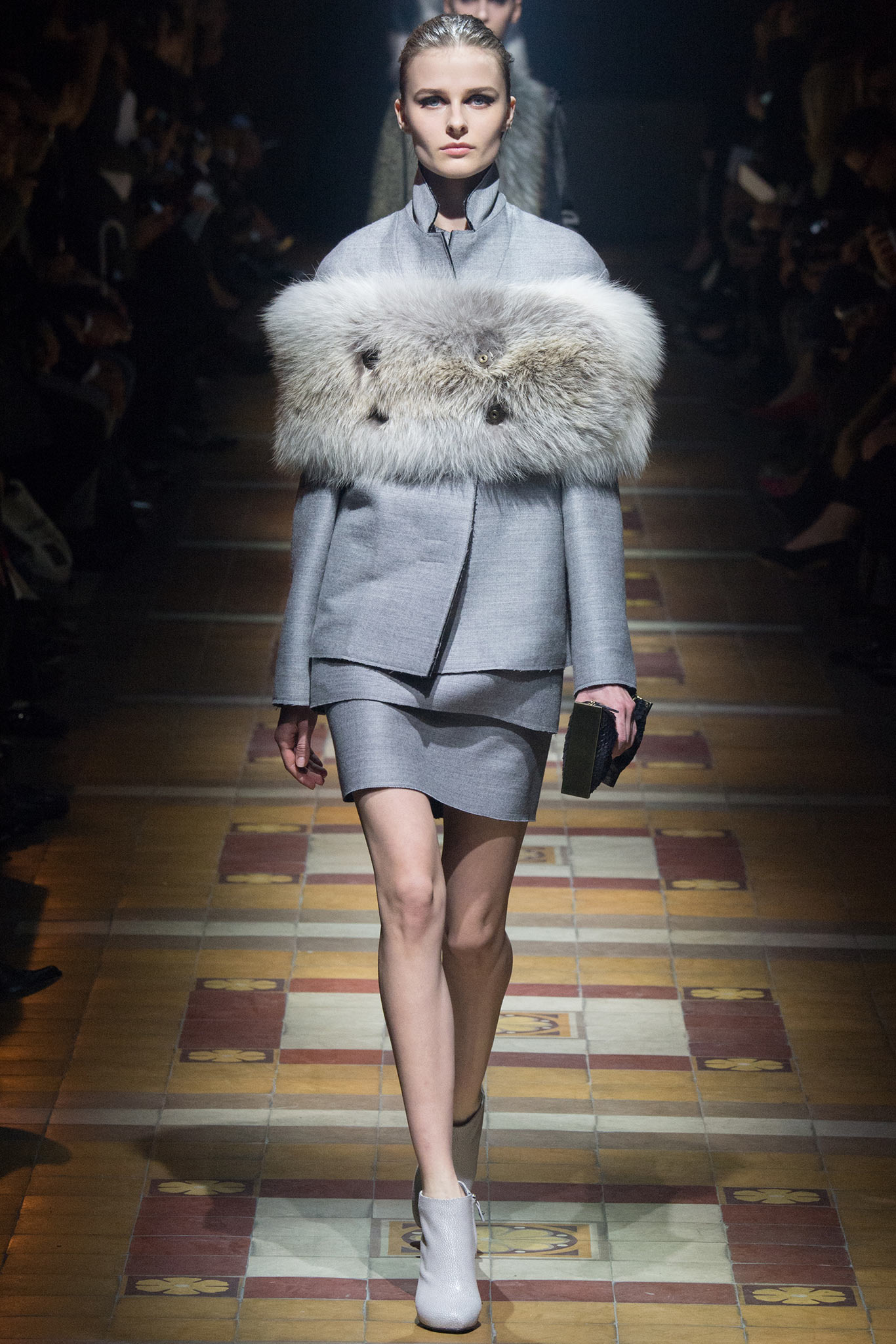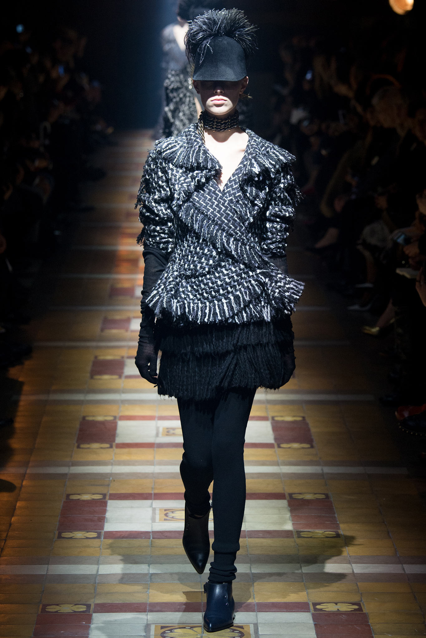 整個系列不見上一季的糖果色,取而代之的是一片黑,佐著一些乳白和灰,帶來了無可取代的質感。衣服的結構融合了運動風、高貴、還有Lanvin永遠獨特的女人味。