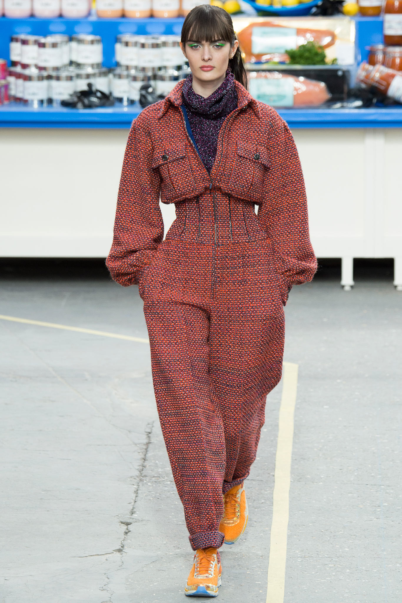 時尚同時也是流行文化的一環。所以當看到Chanel的會場佈置成超級市場的時候,其實內心是充滿期待的,想說藉由一般民眾在這挑選商品的方式來隱喻高級時裝的經典昂貴快速汰換之間的反差衝突。同時,在上一季和高訂時和藝術結合的線條與商品之後,這次與流行文化的融合會有什麼驚喜。