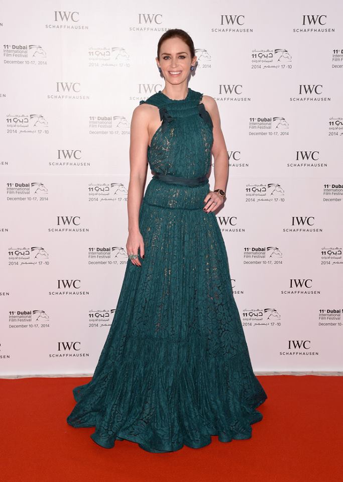 接下來來看個美美的吧!Emily Blunt在出席IWC Filmmakers award時,挑了LANVIN 2015早春的蕾絲禮服。