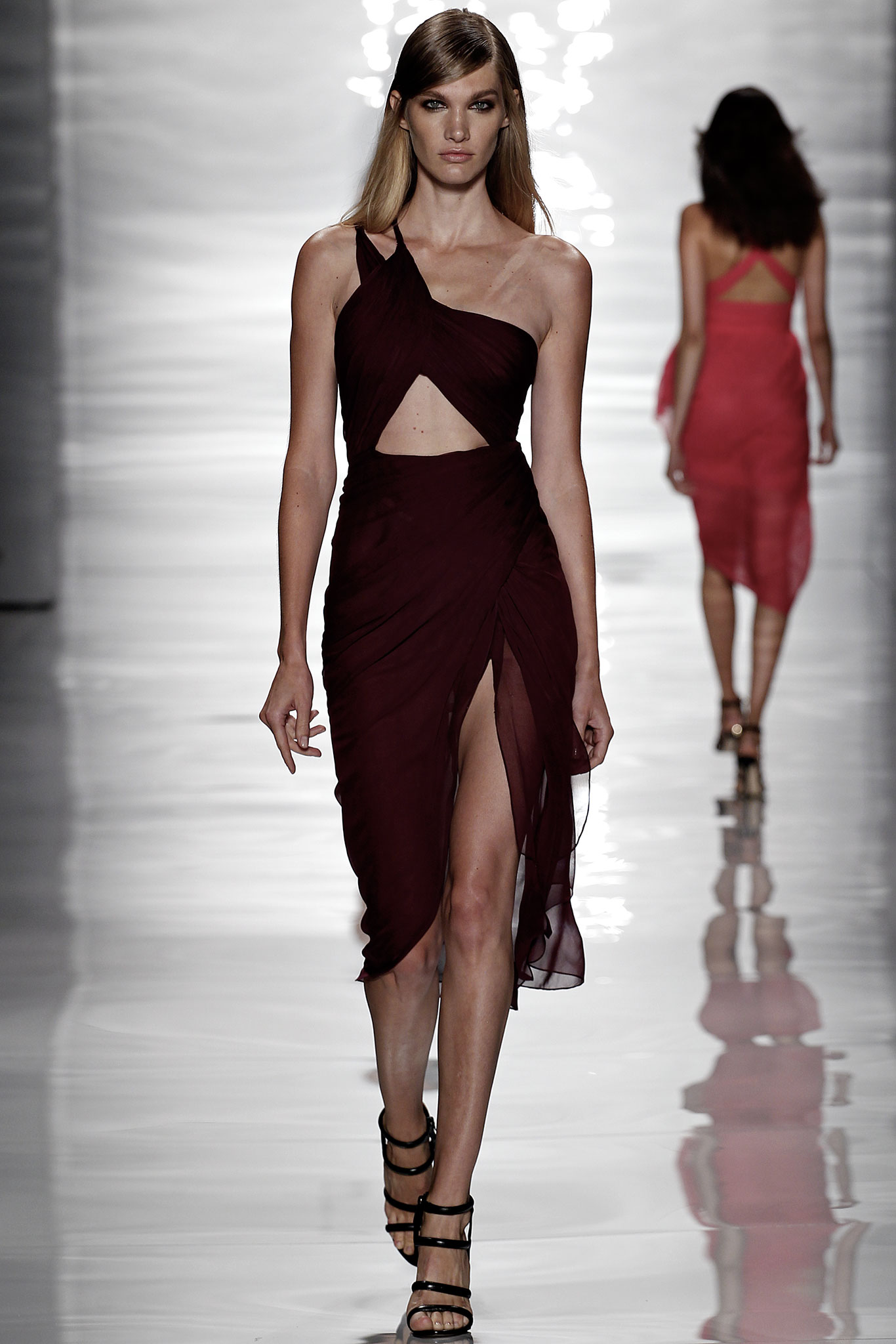 這一套2015春夏的不對稱剪裁單肩洋裝相當青春,在紗裙的部分看似保守卻有一點點性感的元素參雜。她挑的鞋子看起來和秀上很像,但是在細節上又更多了一點,我喜歡這一雙Jimmy Choo。這不是一套典型Taylor-style的服裝,但是被穿得非常Taylor Swift。一樣好看,一樣精緻。