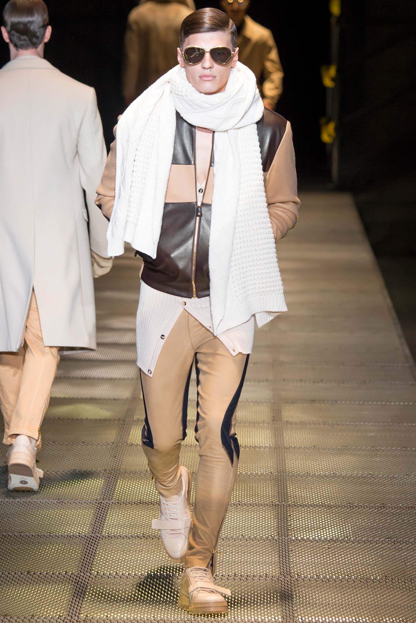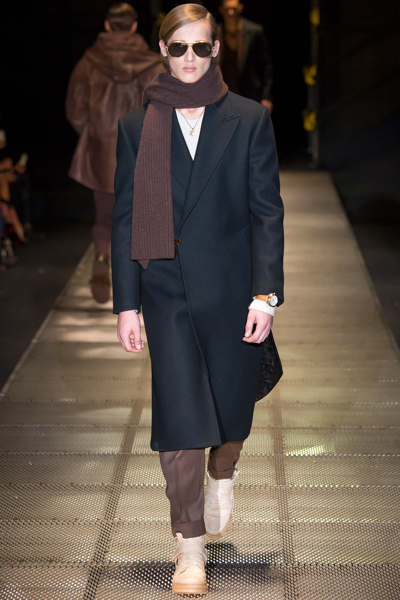 在輪廓上,整體上看來並不這麼現代的線條,反而有點九零年代的微復古感。基本上我很喜歡肩膀的線條,很精準,也很有精神和力道,但褲子的寬度可能就要見仁見智了。此外,內搭的毛衣刻意把長度拉長,形成多層次的視覺效果也不錯,但那個略緊的緊身褲(已經快要變成Leggings)到底有多少人敢嘗試,仍待商榷。