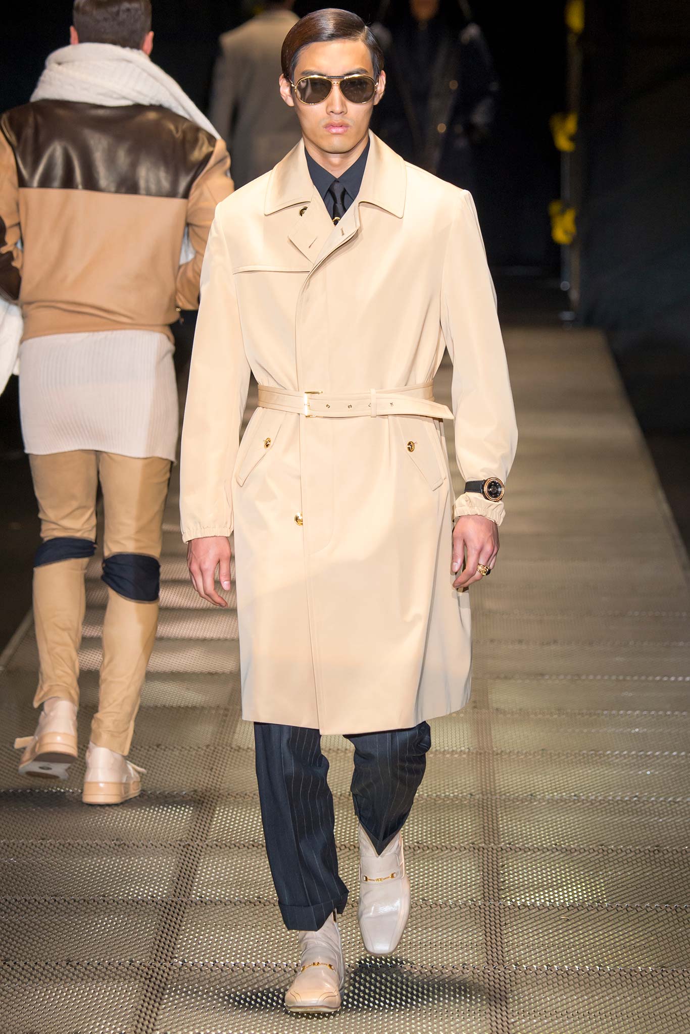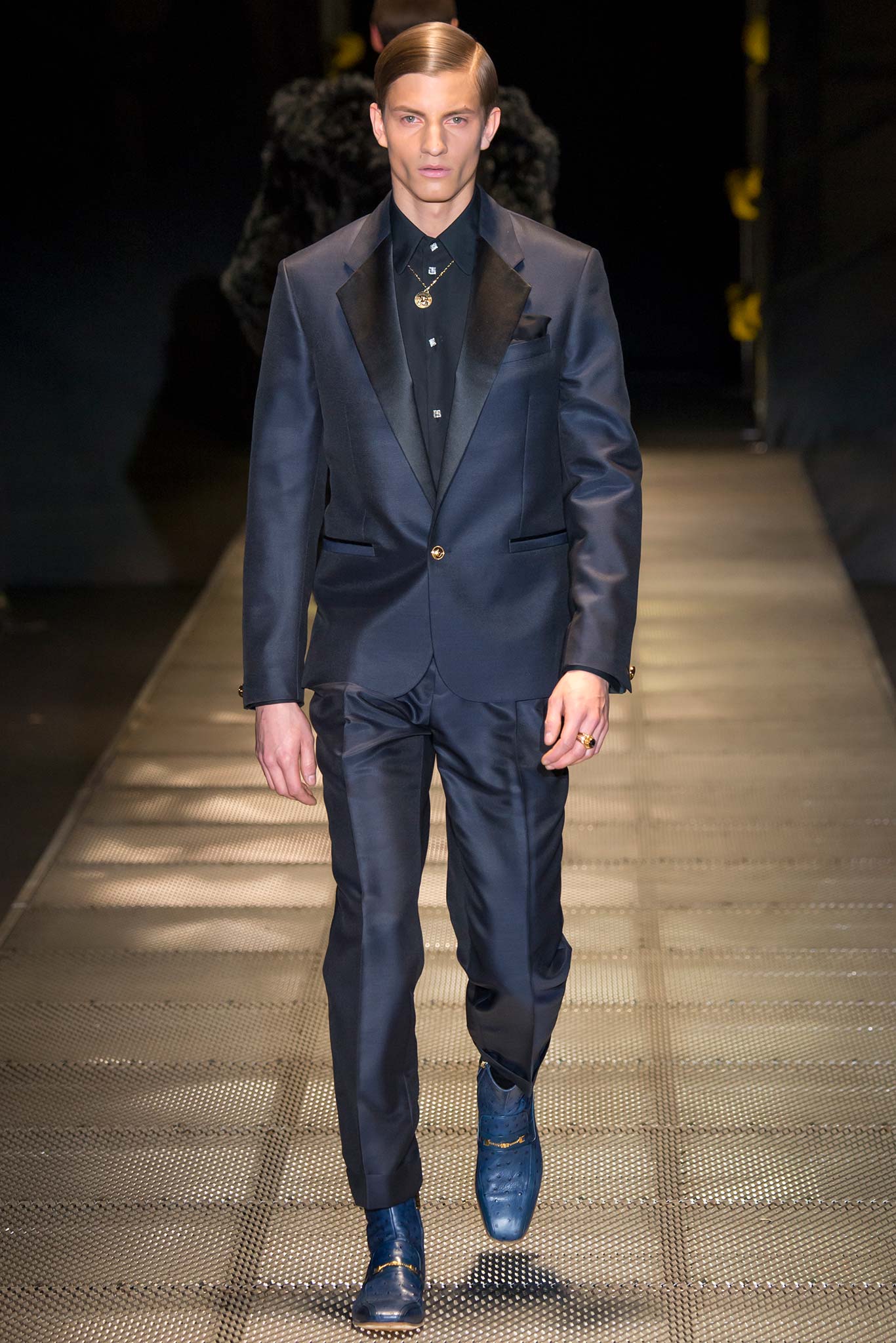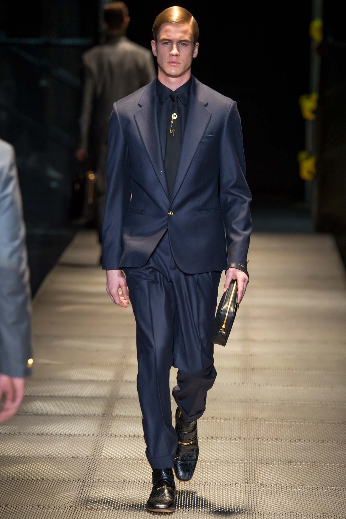 這一季的Versace真的很不一樣,沒有袒胸露背的男模,沒有上半身穿很多但是只配一條子彈內褲的男模,也沒有五顏六色的線條(所以如果期待有這些的讀者,可以先起身離開了),只有素雅和沈穩(天啊,我沒想到這兩個詞會用在Versace身上)可以形容。