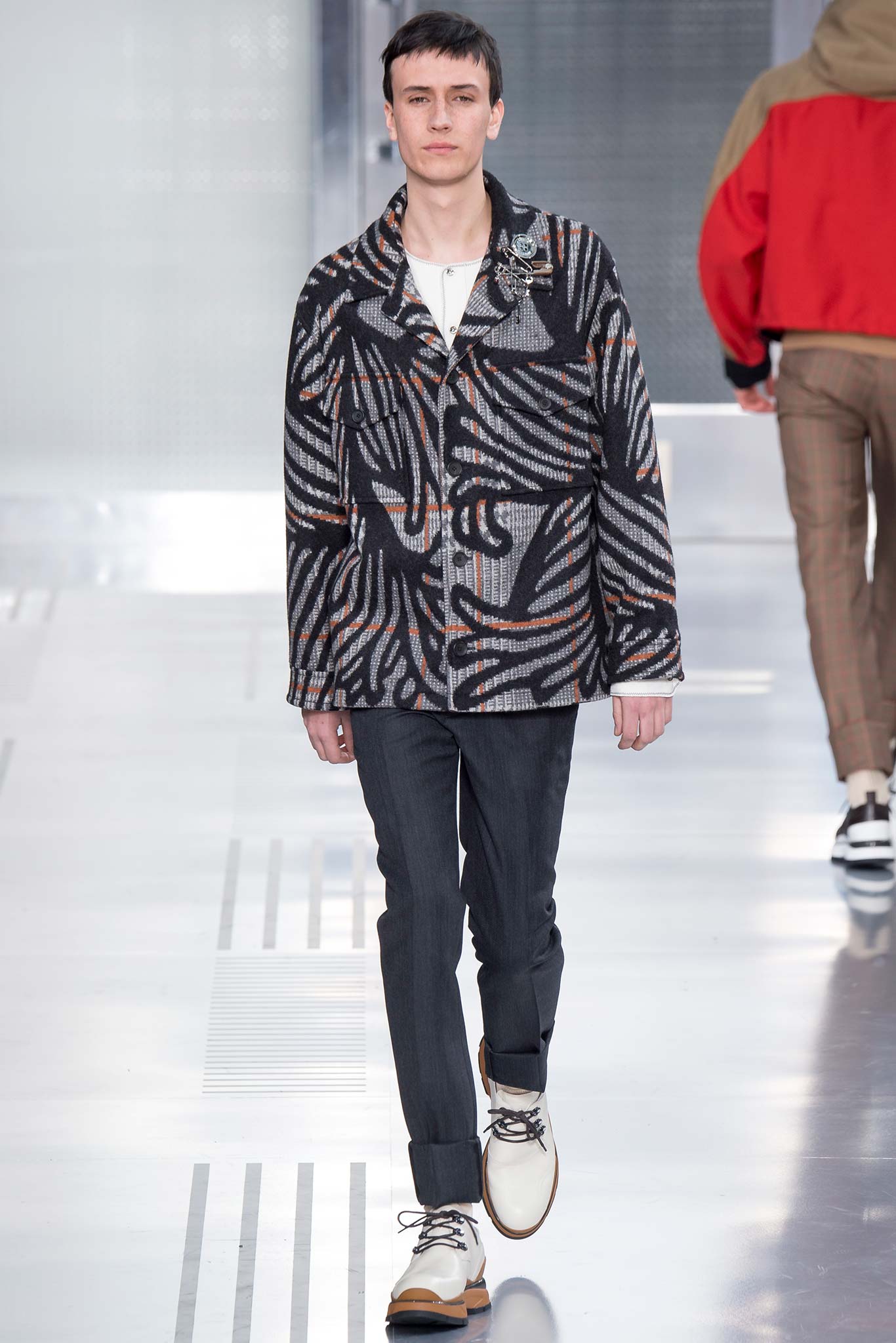 Kim Jones巧妙地把這個手繪圖騰和LV damier系列融合,而且整個系列洋溢八零年代的感覺。這系列充滿各式風格,不論是正式(看那皮衣的剪裁多麼精準)、休閒(風衣外套和粗呢外套都好看)或是簡單的針織衫都很隨意的時髦。