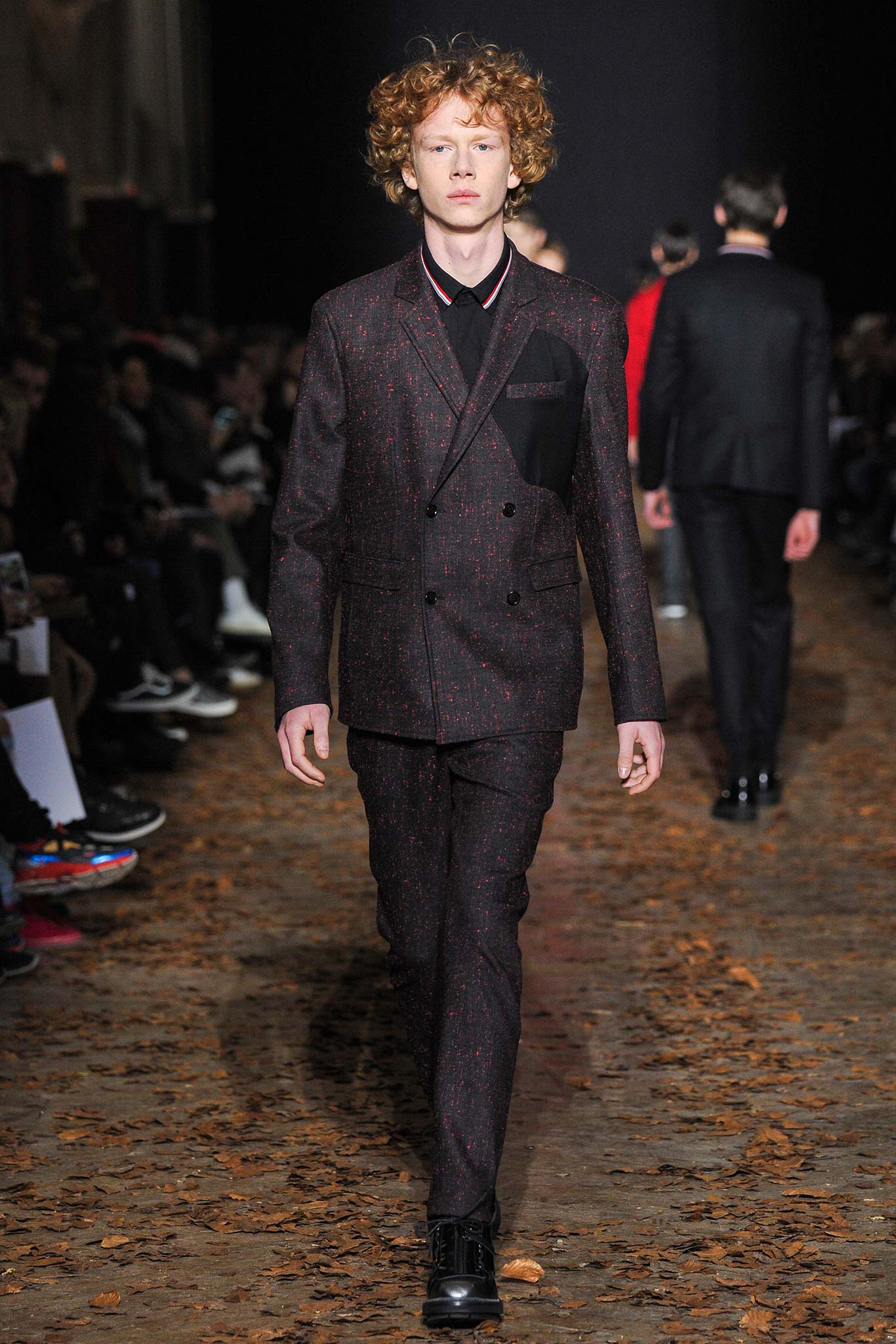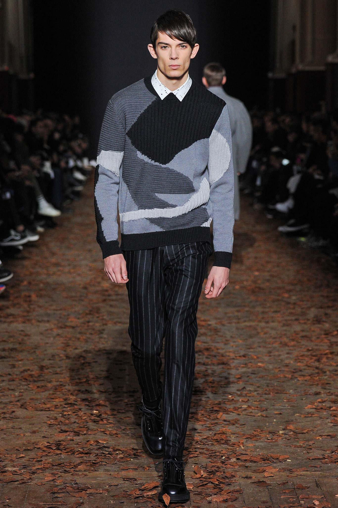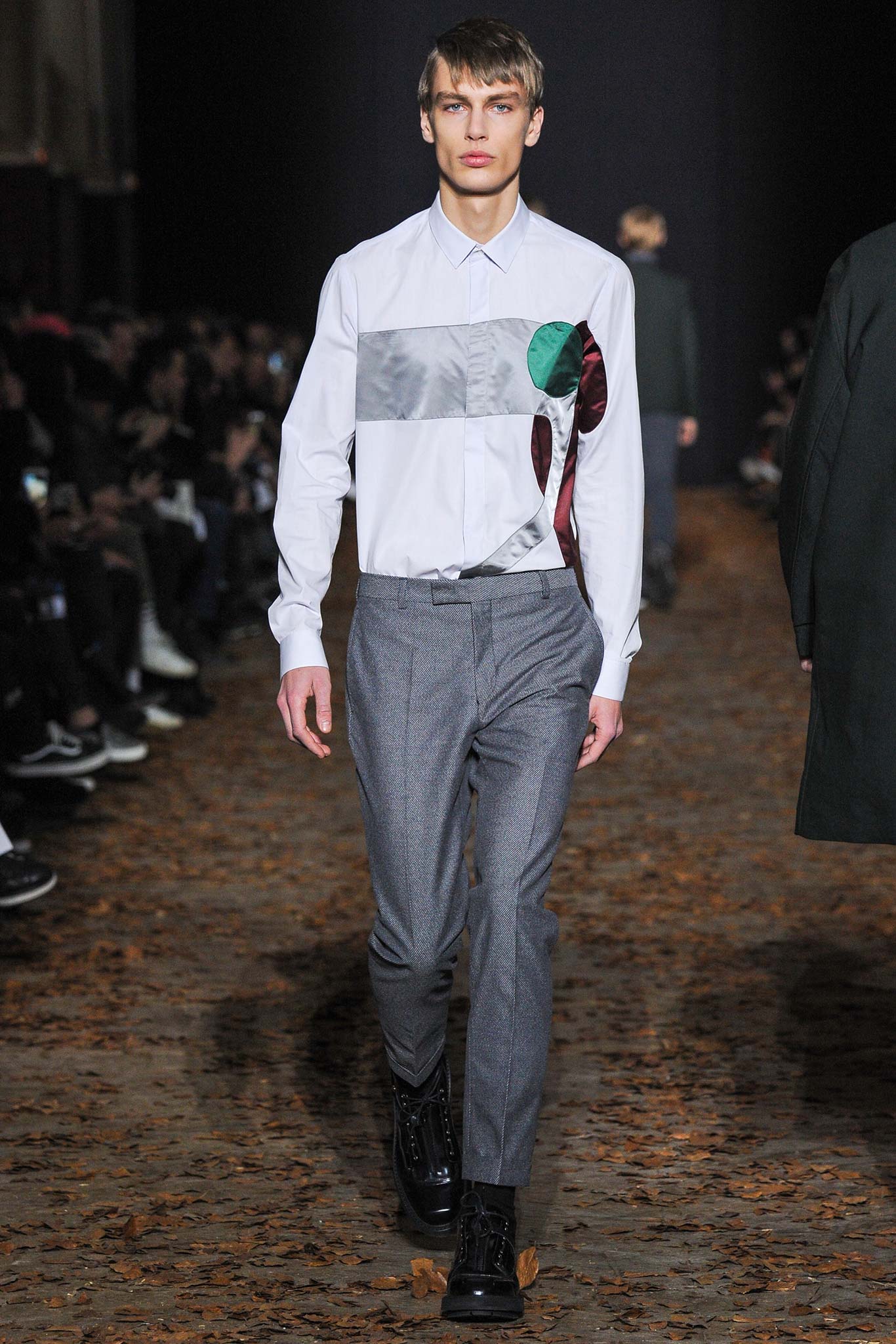 開場幾件襯衫和褲子看得我內心有點納悶,雖然襯衫上的印花很美,但似乎和前幾季沒太大分別,不過在色塊的運用上算是有在挑戰一些規則;三分之一之後才讓我覺得活過來,看到很多好看的單品,像是刷色特別的褲子(超像Dior Homme 2015春夏的風格),還有寶藍色拼色的上衣,甚至連加長款式的針織衫我都覺得好看。鞋子也相當好看喔!