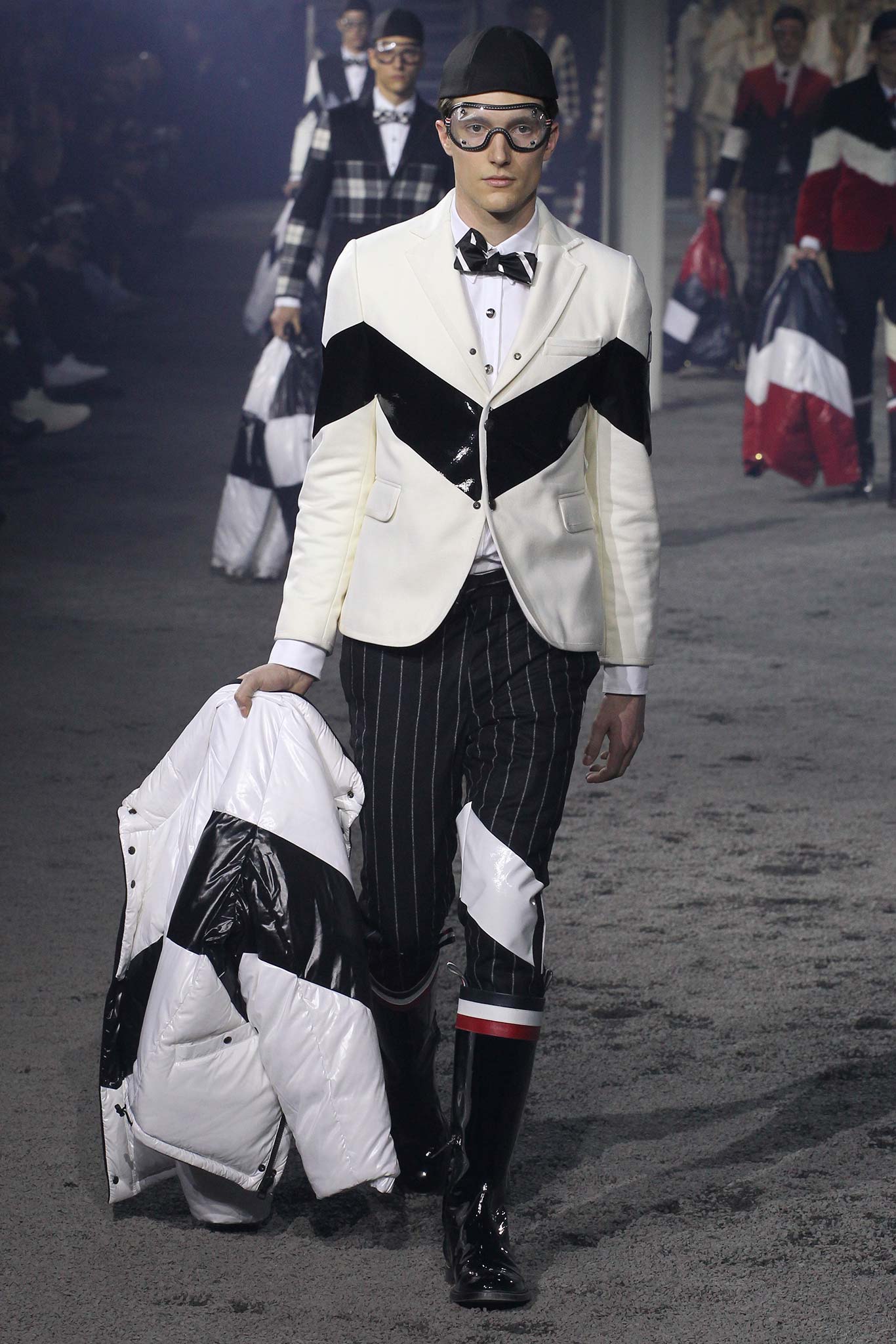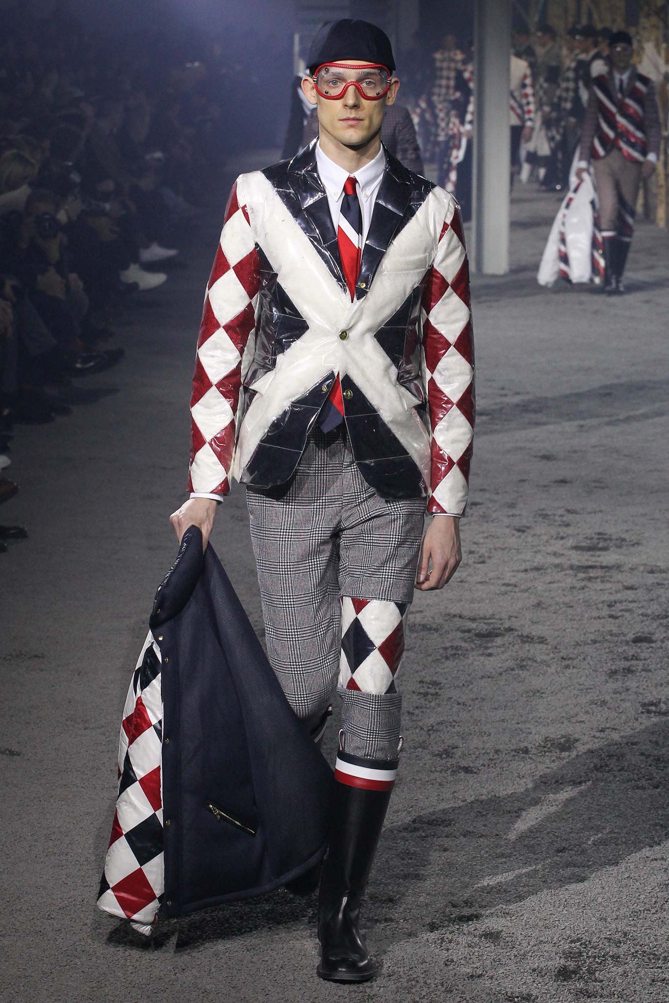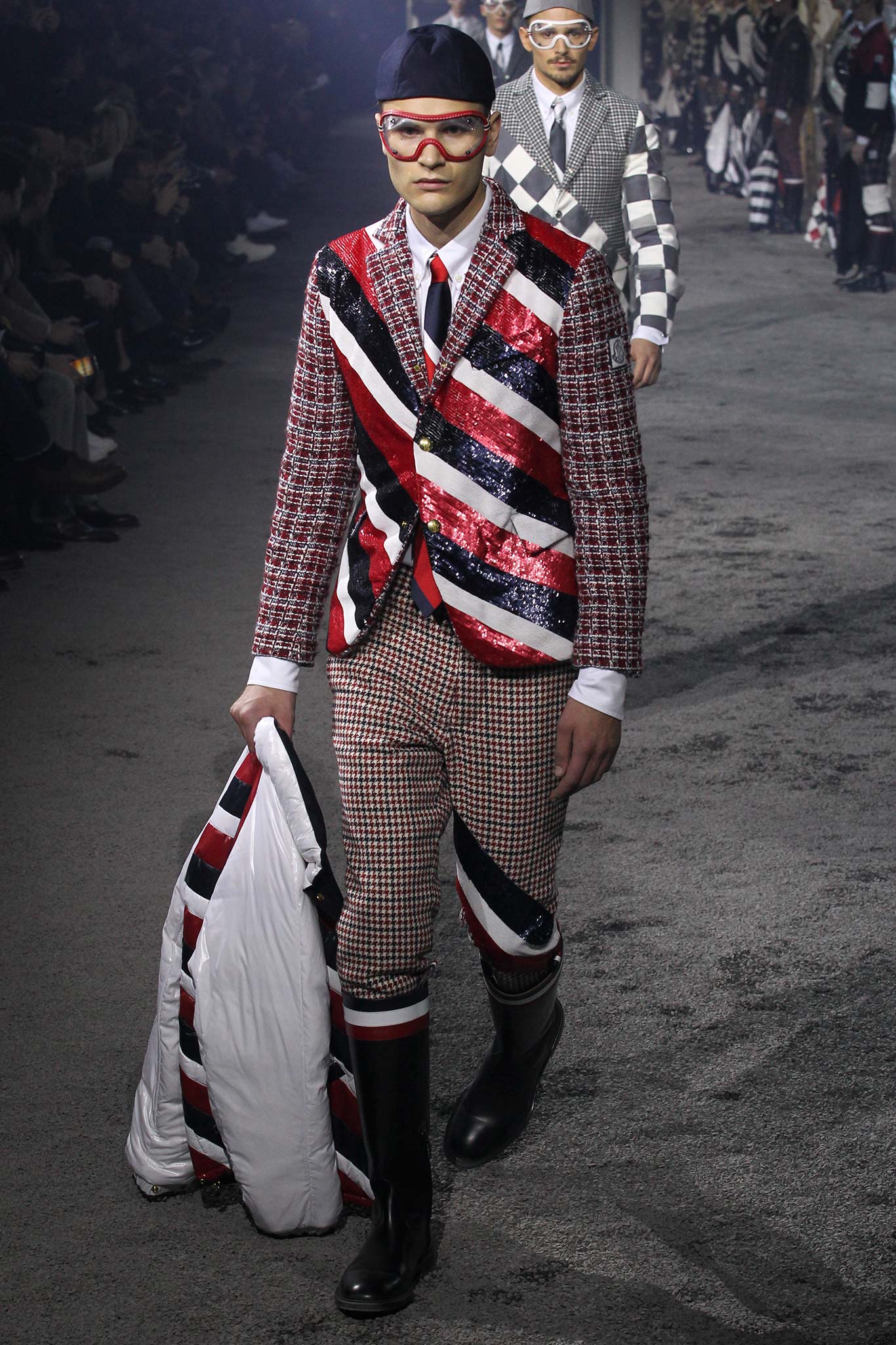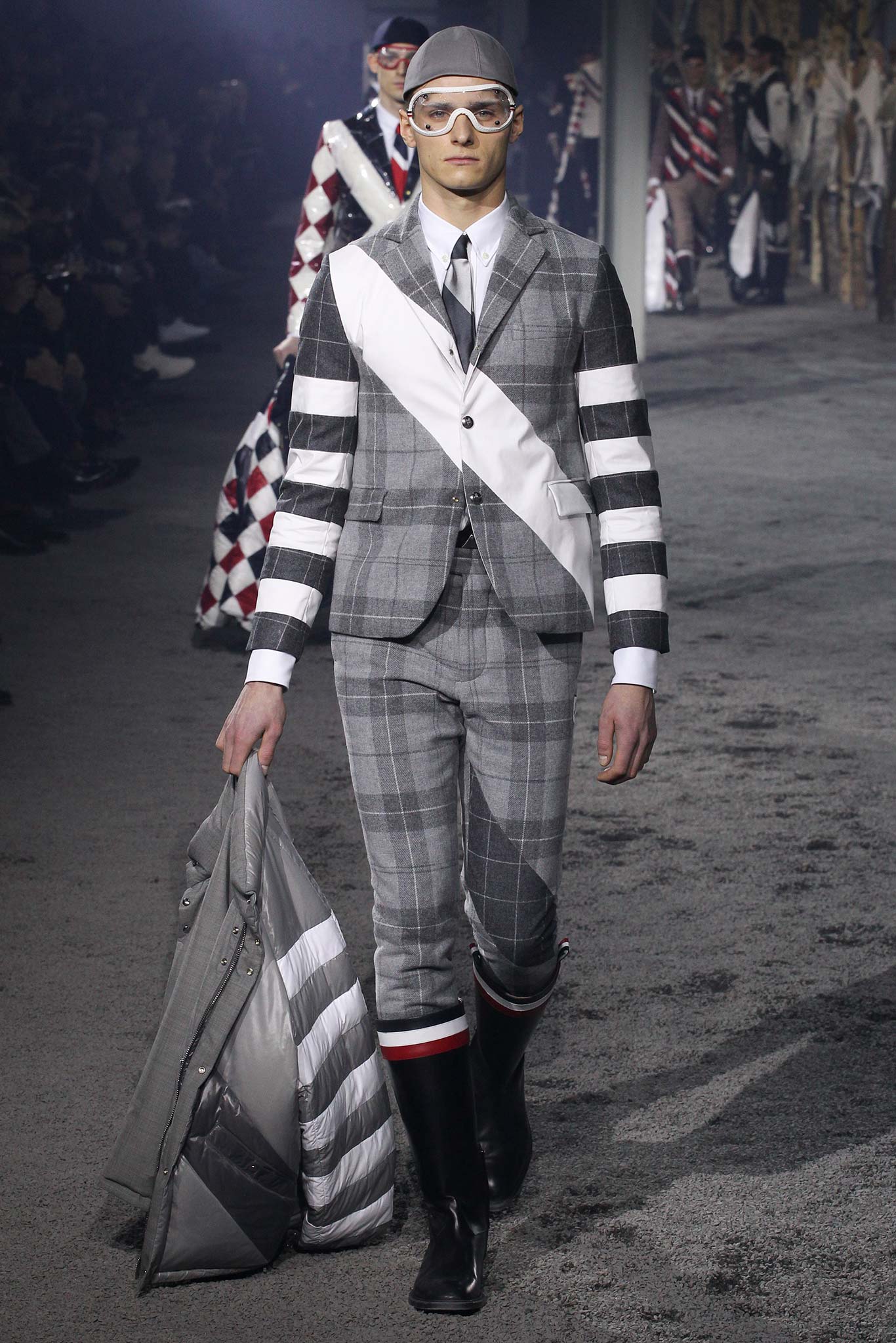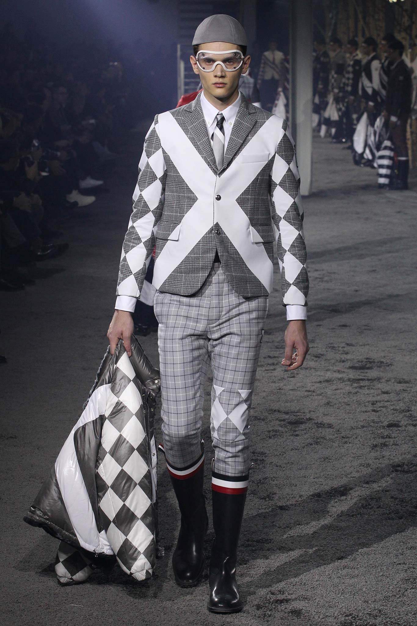 之後的衣服就是Thom Browne的天下了,各式各樣格紋、方塊還有色塊的碰撞,讓我們看到這麼多看似天馬行空卻和諧得理所當然又時髦至極的時裝。好看到連護目鏡都想帶走。