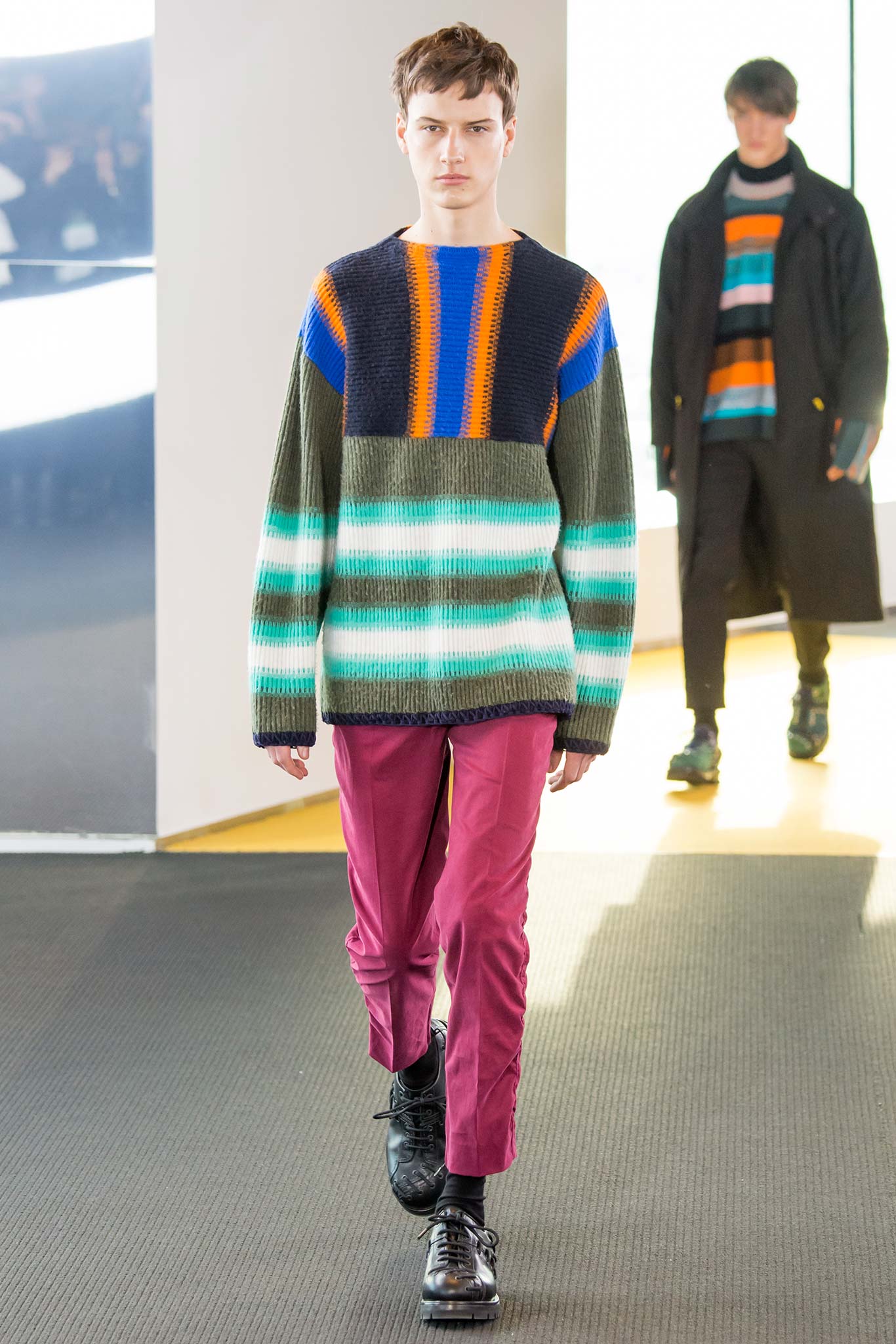 我們可以在這一季裡面找到各式各樣的風格,各式各樣的顏色組合,相當繽紛,也相當好看。喜歡顏色條紋的朋友,這裡面有好多顏色組合起來的針織衫,喜歡印花的朋友,這一季也有。你要軍裝風,這裡有,你要未來感,這裡也有,這一季就是一個沒有設限的個人秀,沒有特定的搭配規則,也沒有專一的風格,就留給消費者自己的組合和發掘。