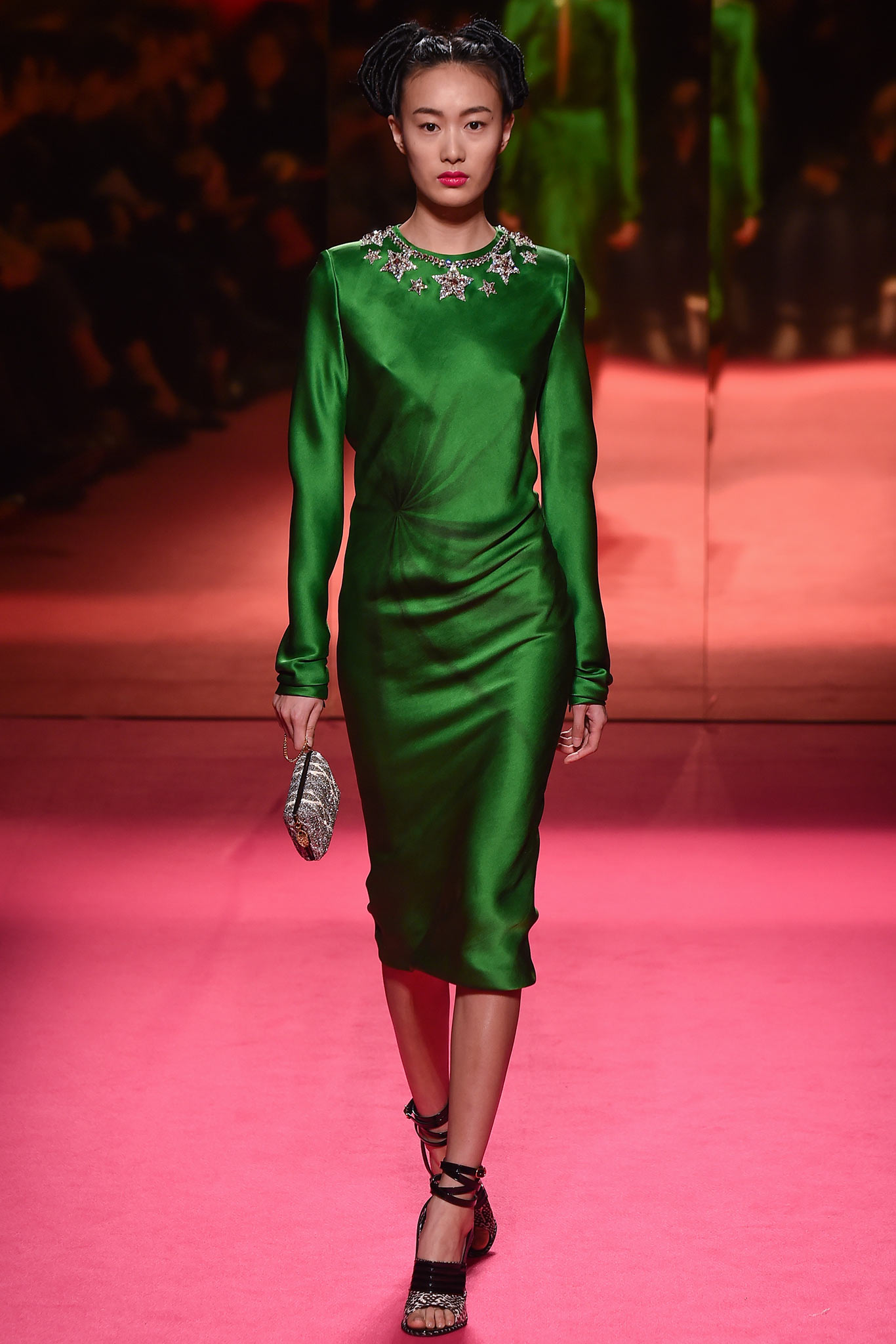 沒有Zanini執掌品牌時候的誇張創意,但卻把詼諧的小心機設計放在衣服當中,像是手腕的印花啦,不同紅色調交互拼接成的亮麗洋裝,依然可愛的愛心洋裝(還有可愛的箭)都是既有創意也實穿的單品。當然,高級訂製服中不可或缺的刺繡,亮片還有3D剪裁這些要表現工藝的細節也都沒有缺席。除此之外也有好多漂亮的細節,像是用大頭針創造出來的印花,裝飾,或是把印花做成項鍊和手環,還有細膩到不行的抓皺還有編織手法。我喜歡團隊努力創造出的這個平衡點,想必在銷售上一定會有正面的反應。