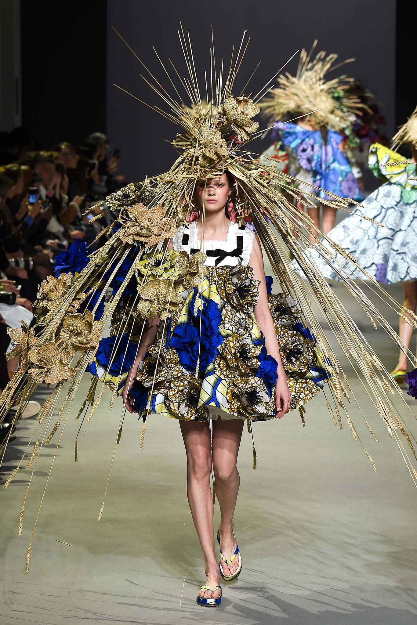 這一季是超現實的鄉村女孩,靈感有部分來自Vincent van Gogh(梵谷)的畫。整個系列第一個亮點就是各式各樣不同尺寸的草帽,上面有很多麥穗,而且尺寸越來越大(魯夫,這一系列的帽子都是你的)。