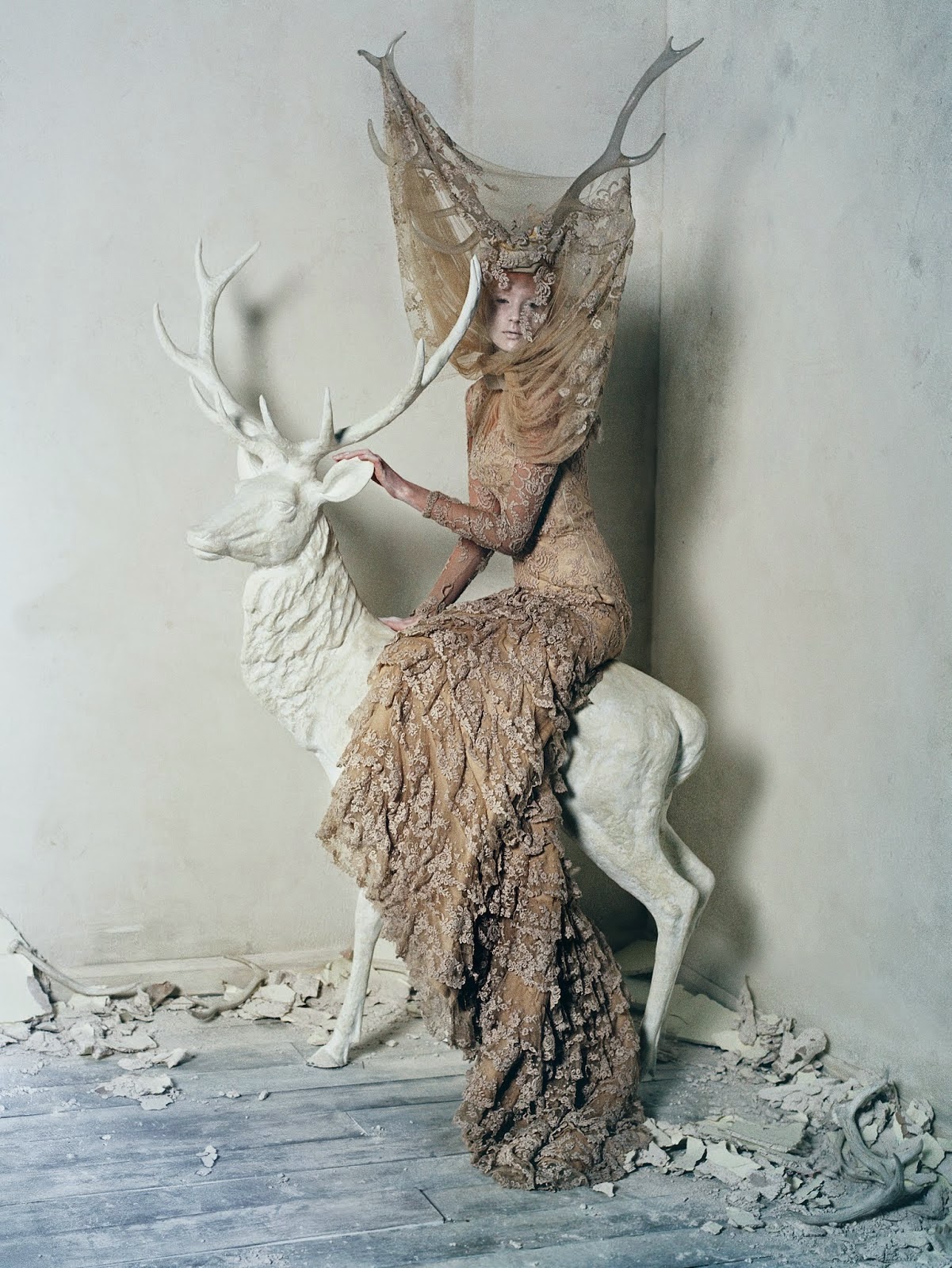 這組照片皆以Alexander McQueen的服裝作為主體(每一套都是經典,不但不退流行還歷久彌新),每張照片都極美,我都看不到models,只看到服裝還有主題的緊密互動。