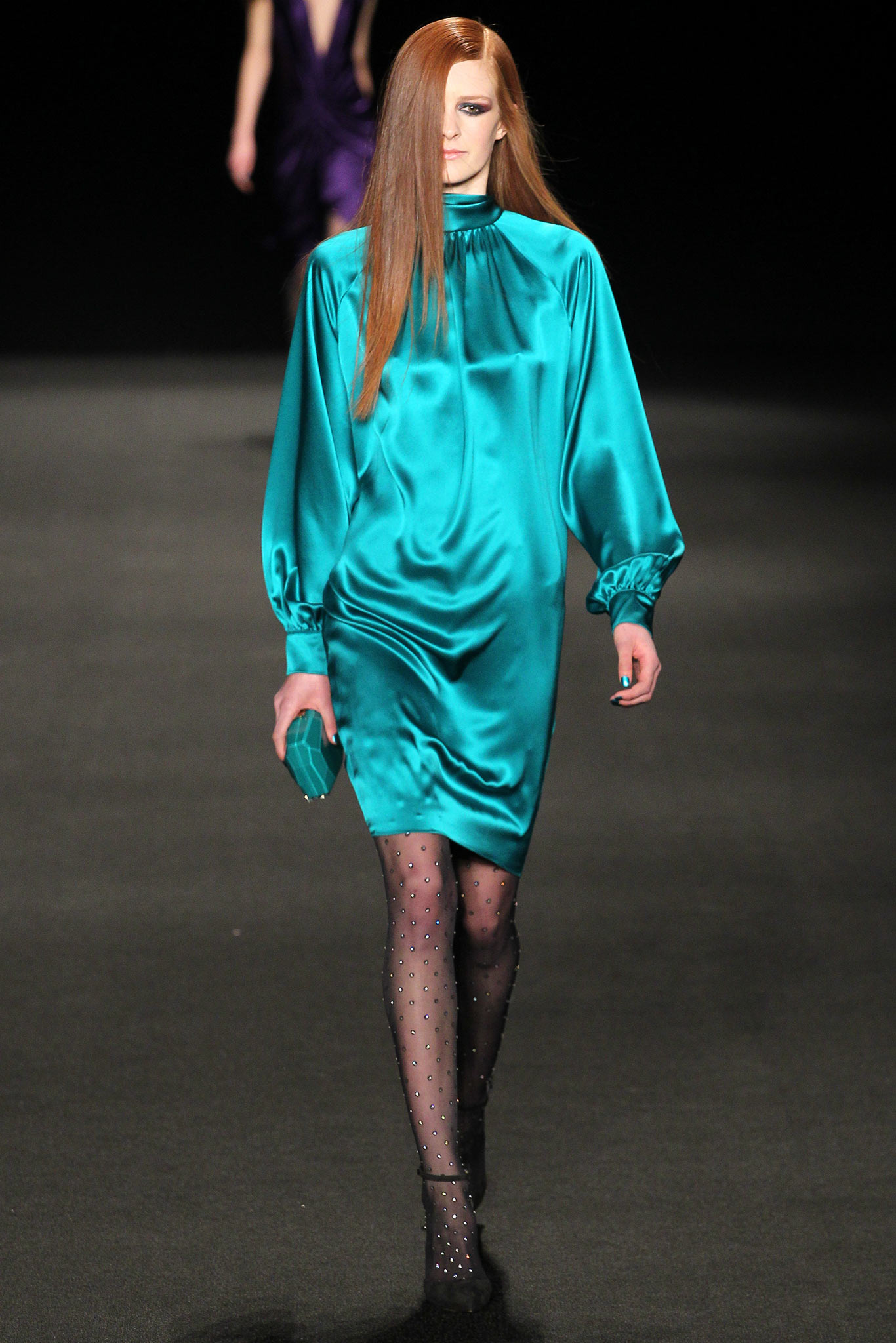 還記得在早秋的時候,是一種不過分張揚的美麗,淡淡的。但是在秋冬的時候,就把色彩的濃度轉濃,交出了好像是穿在身上的寶石一般的系列。好喜歡這一季的顏色,有碧璽,有水晶,有紅寶石,綠寶石,翡翠,藍寶石這些濃淡不一卻都是視覺亮點的顏色,把女人如寶石,卻各有不同光芒閃耀的特性傳達得很棒。