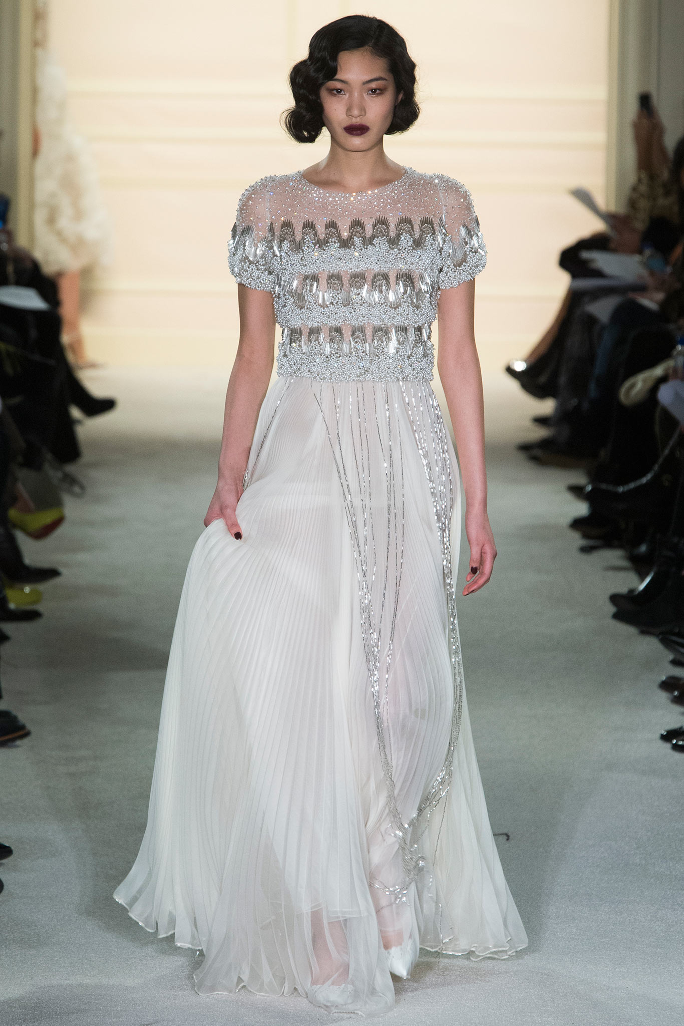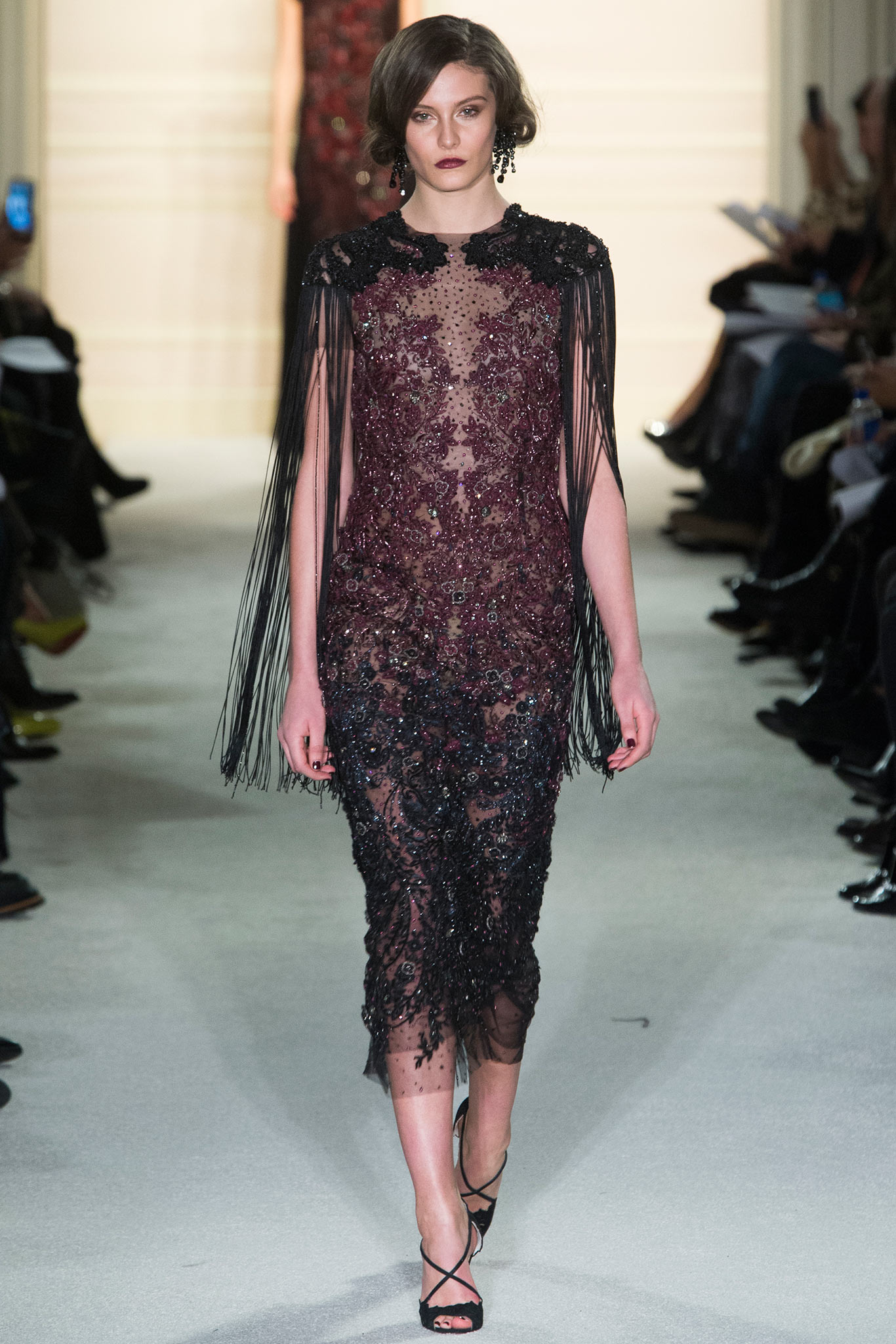 除了一貫的華麗、優雅以及充滿女人味之外,這一季我覺得多了危險的誘惑感,還有濃濃的20年代的輪廓(大亨小傳的Daisy又會心花怒放了~~)。我們可以看到在禮服的設計上面充滿了流蘇,各式各樣的流蘇,這些都讓女人在行走的時候多了韻味,也讓整體的動感更有餘韻,很美。