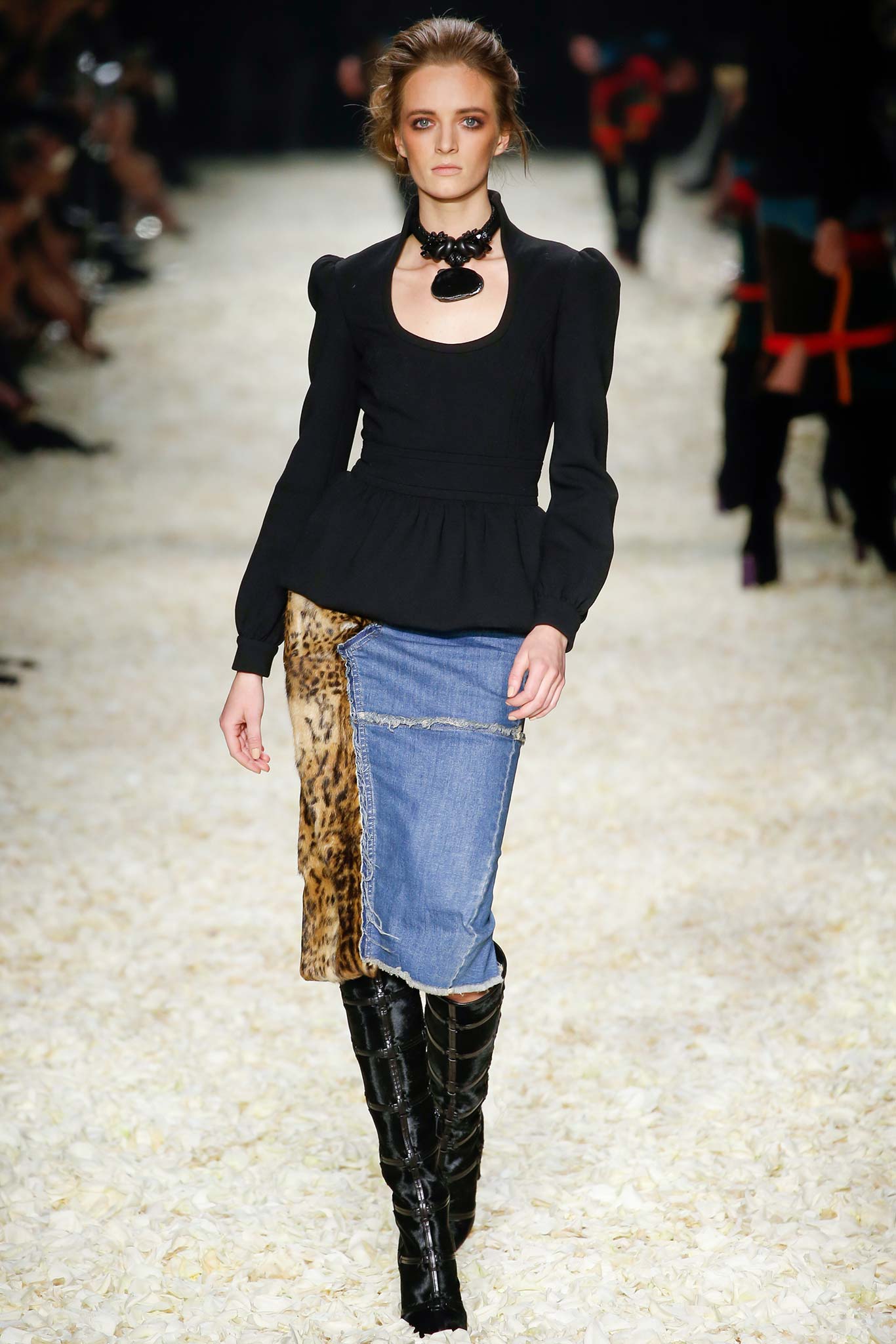 這個系列非常豐富,從帶點鄉村風味的黑色多層次洋裝作為開場,在肩膀還有袖子上的設計非常細緻,裙子上的荷葉打褶也是層次分明。接下來就開始展露他對女人個性中的不單一性來做延伸,可以是印花的大膽配上單寧的輕鬆、豹紋配皮革的野性性感、豹紋混單寧的都會不羈等等,都是在強調不同的性格。當然流蘇這個他相當愛用的元素是不會缺少的,好好看。晚裝部分當然不用說,亮片刺繡運用得也很細緻,不但有性感也有摸不透的神秘。