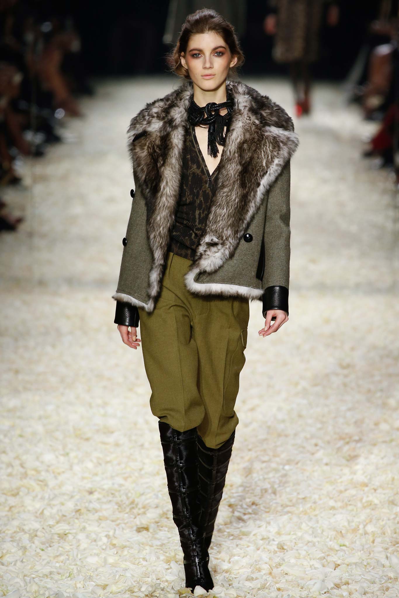 在看衣服之前,我們先來看鋪滿玫瑰花瓣的T台,內心一陣激動,這個排場不就是和他在2004在Gucci最後一場秀的時候是一樣的嗎?只是這一次更盛大,當時的花瓣只是從頭頂上飄落,這一次已經鋪滿整條走道,有沒有什麼意涵我們還不得而知,但是除了美不勝收之外,更佩服這樣的排場。