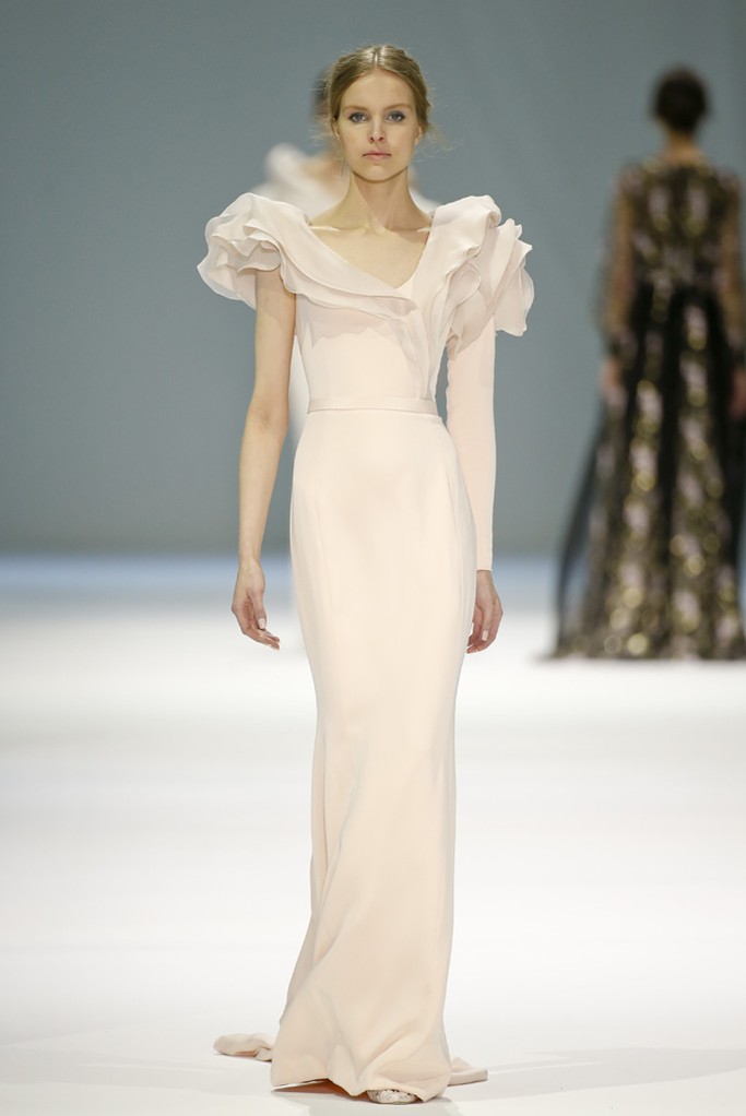 Gwyneth Paltrow今天則是以相當溫柔婉約的裝扮出現,這一套Ralph & Russo 2015春夏高級訂製服是讓人感到溫暖舒服的禮服。
