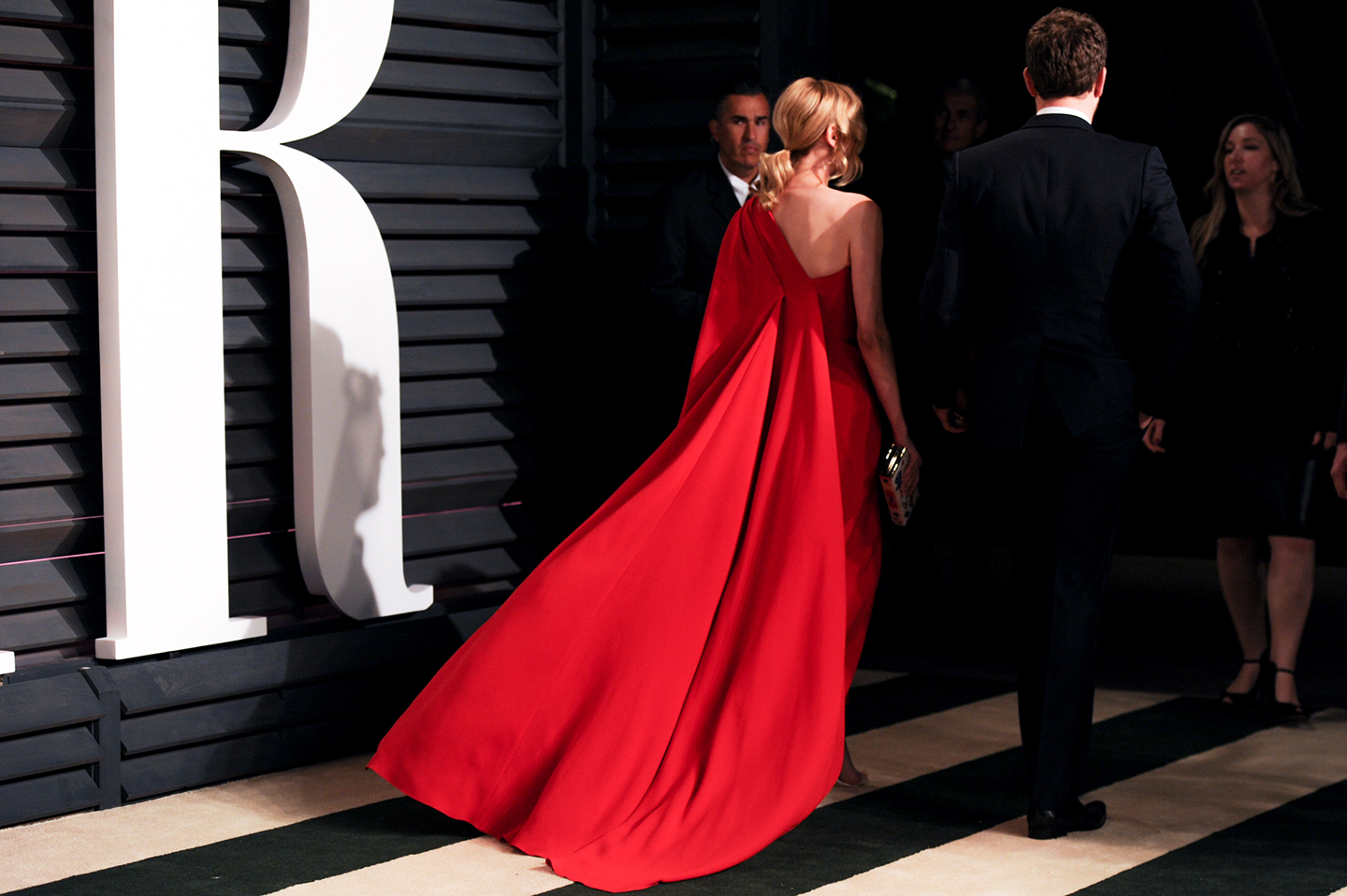 她挑的是Donna Karen Atelier(那個也挑同一家的Rita Ora,妳看看,為什麼人家Diane可以這麼美,妳那麼露),這個斜肩設計的連身褲裝實在太好看。混合了裙裝、披風還有連身褲的華美、大器、瀟灑率性風格於一身,太好看了。腳上踩的是金色的Jimmy Choo高跟涼鞋,不但和髮色呼應,和整身裝扮也相融極了。