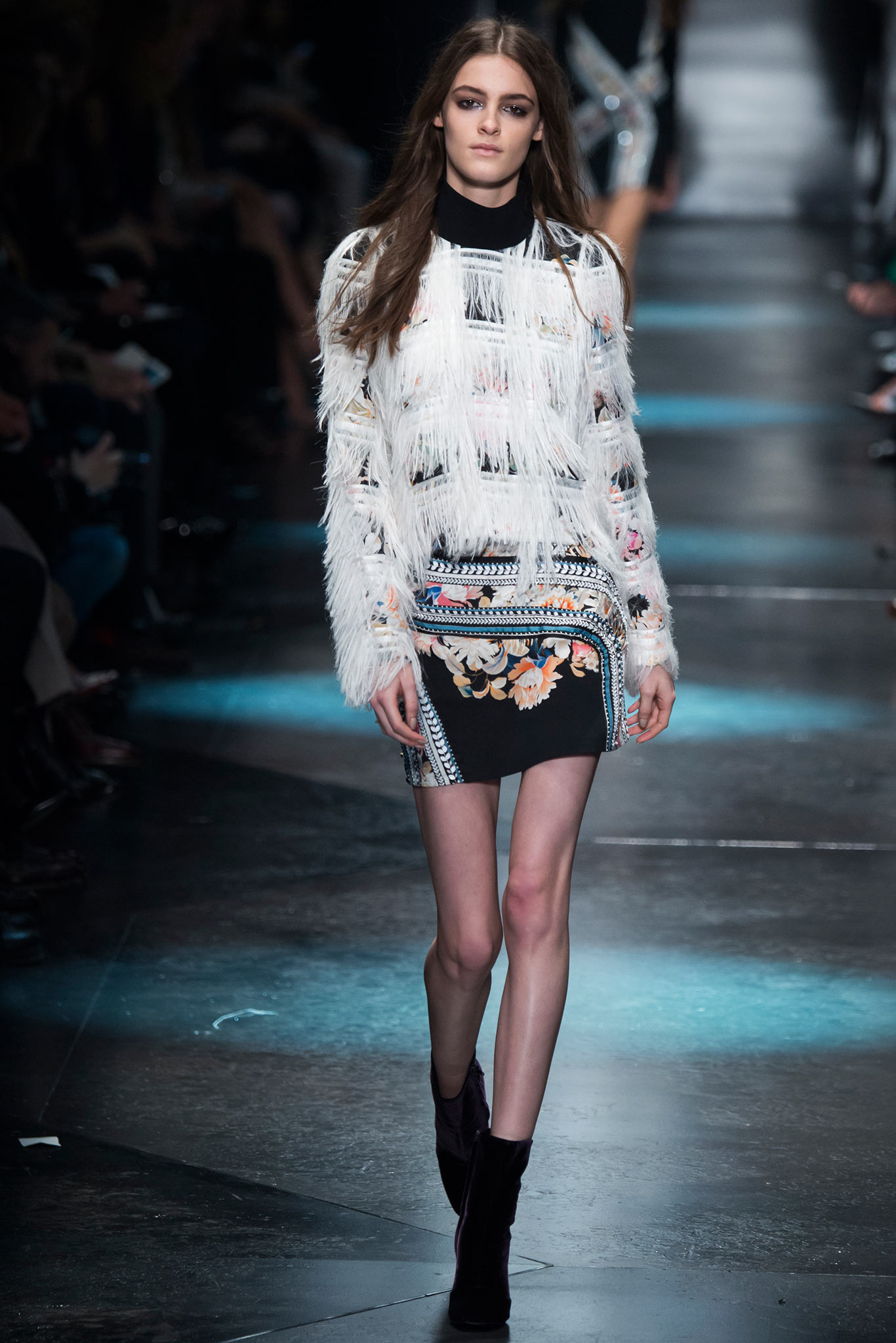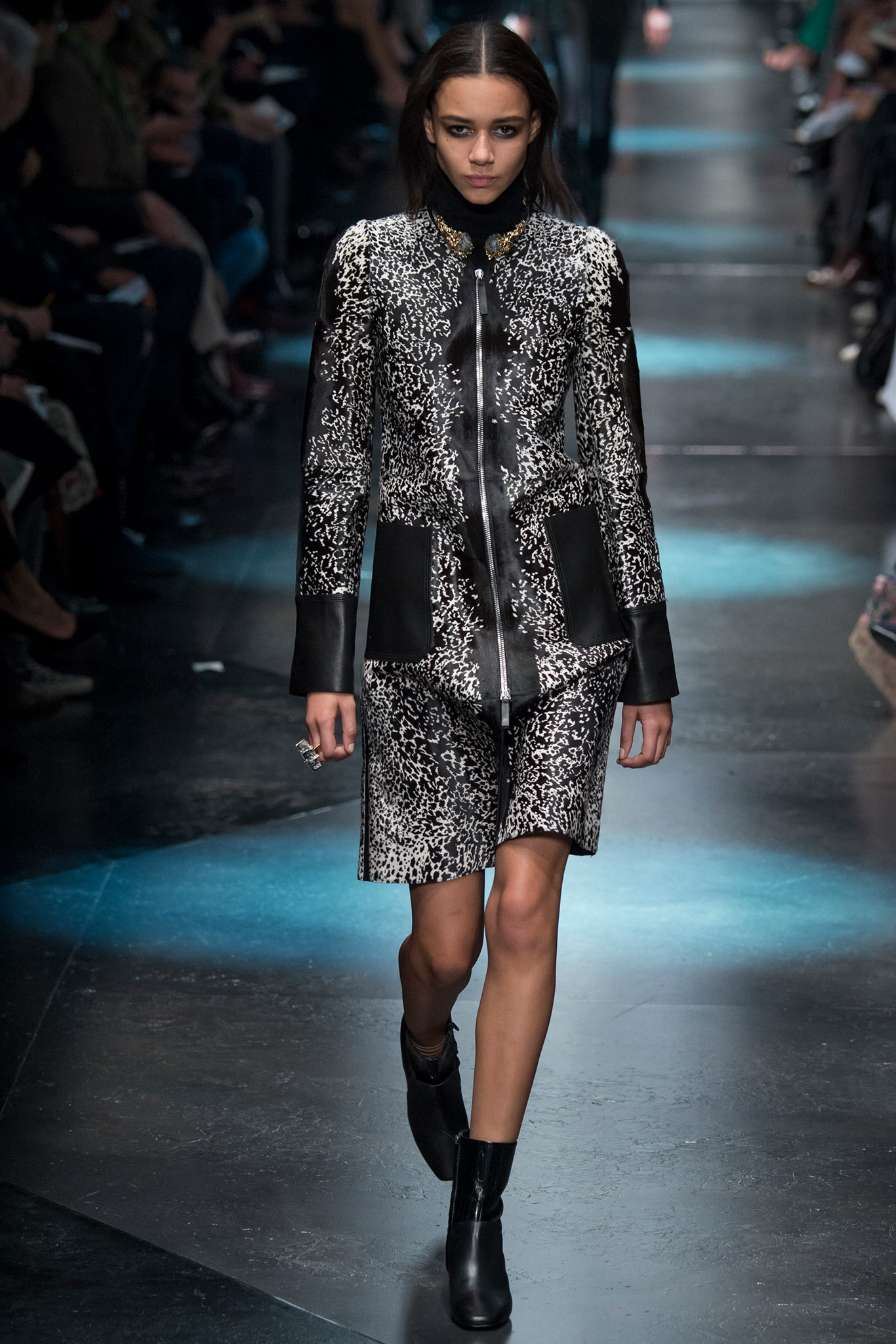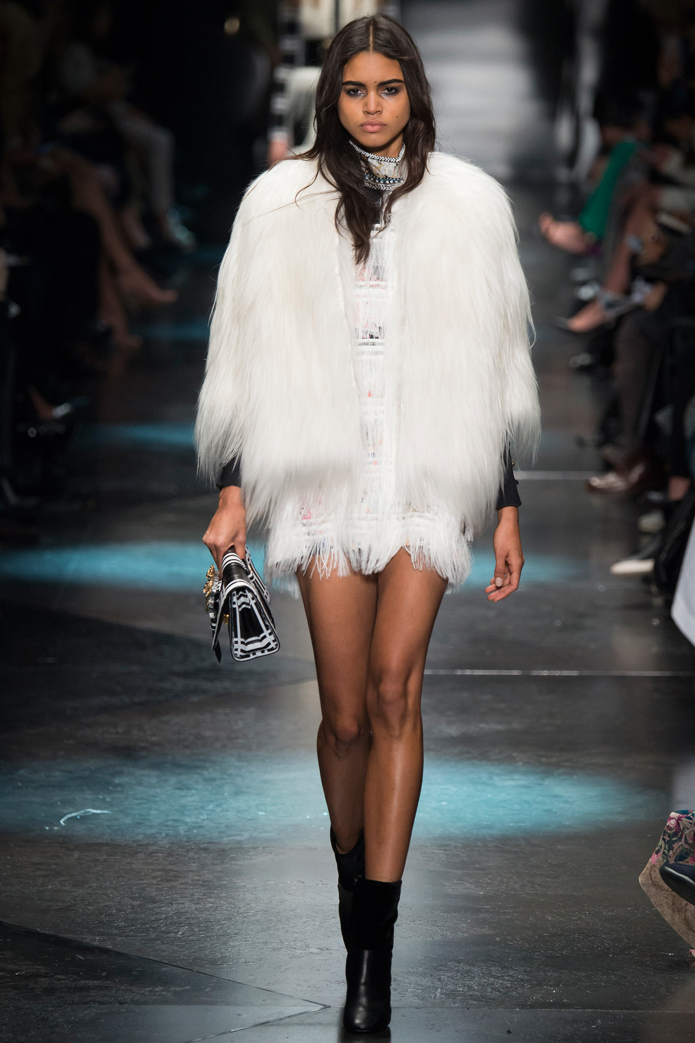 動物紋依然大量,卻沒有之前劍拔弩張那種狂野狂放,雖然說有氣質的動物紋有點可笑,但就是給我這樣的感覺。蕾絲和刺繡自然不會缺席,但這次的搭配是典雅的性感,加上像是窗櫺一樣的皮草處理以及相當好看的長流蘇,我很欣賞。