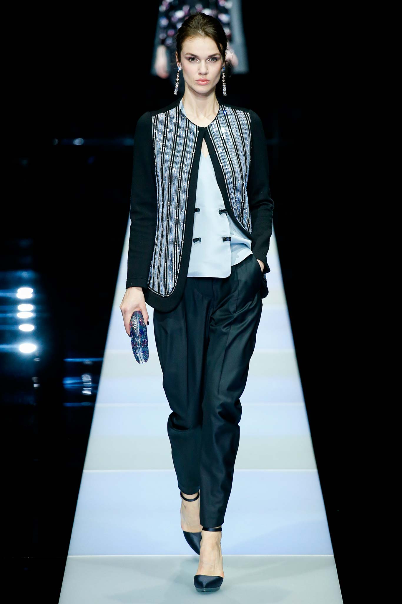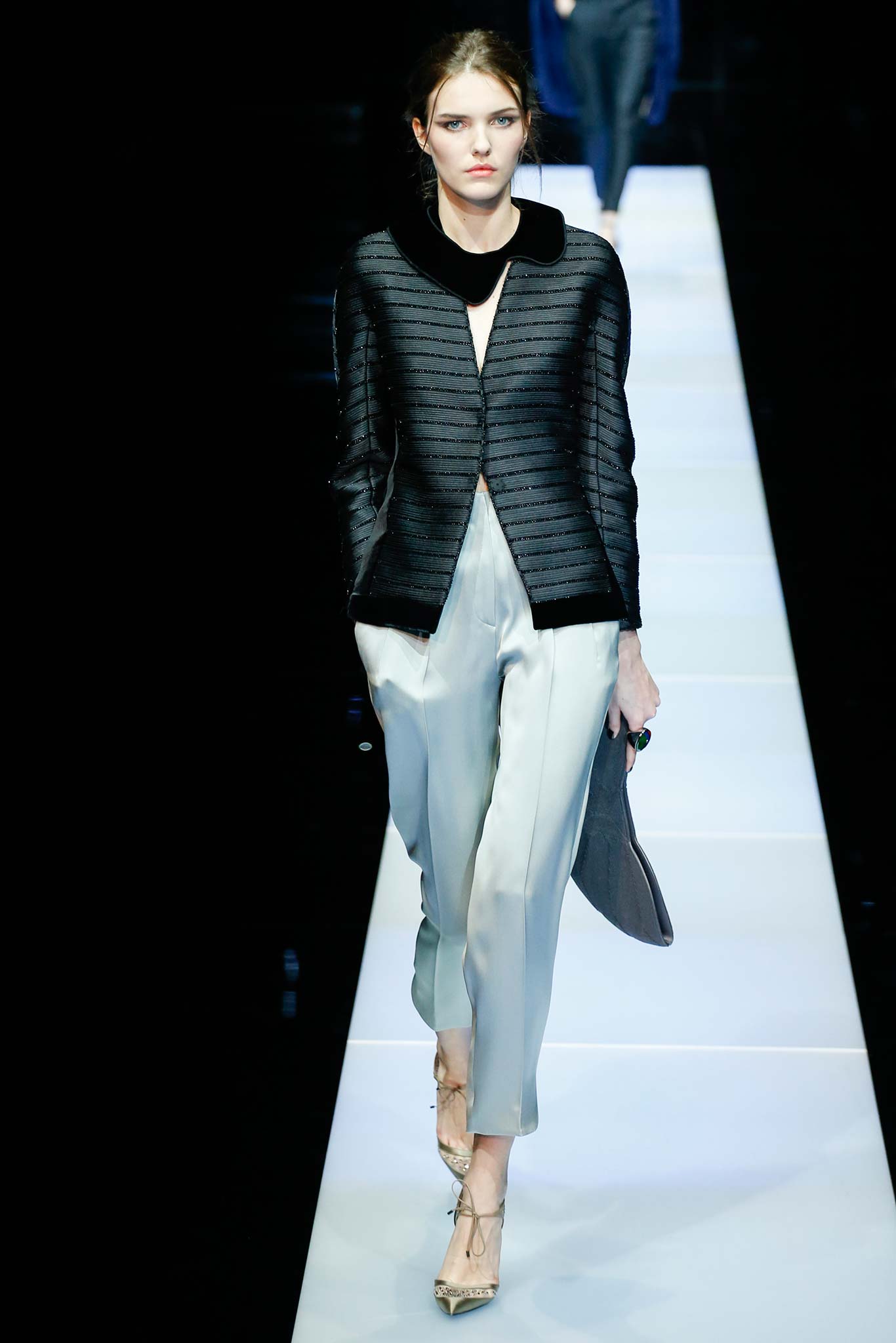 這一季乍看之下有點難馬上得到一個中心概念,但是時值Giorgio Armani四十週年的當下,他帶我們回顧、理解了他強大、簡單、高雅卻強大到無以復加的優雅之美。