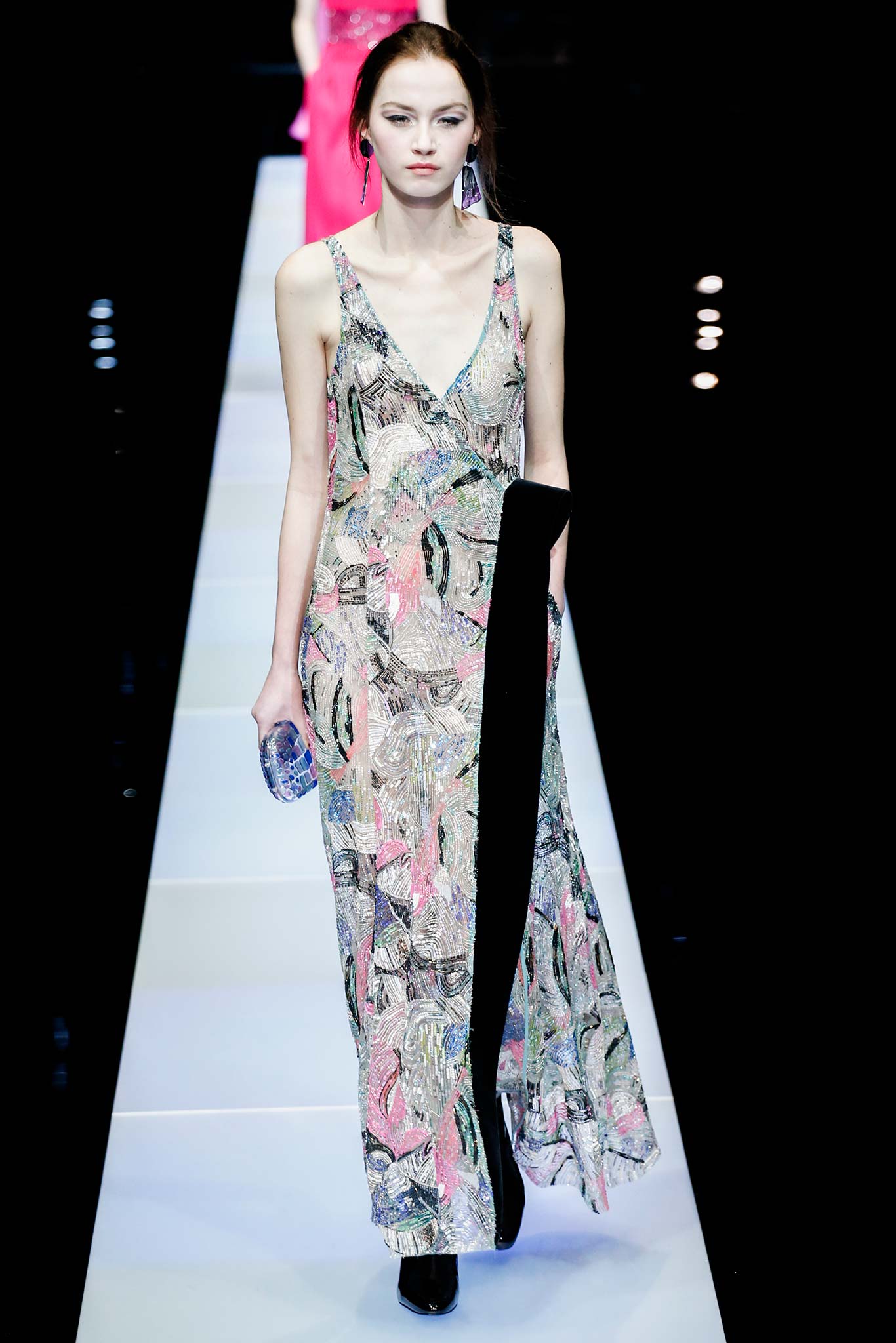這一季我覺得最厲害的是在衣服上面的細節(當然整體來說的輪廓還有剪裁都很棒,但是一直以來都是GA的強項),不論是水晶的繡飾、印花或是抓皺立摺等設計,都幫衣服增添了更多的吸引力。