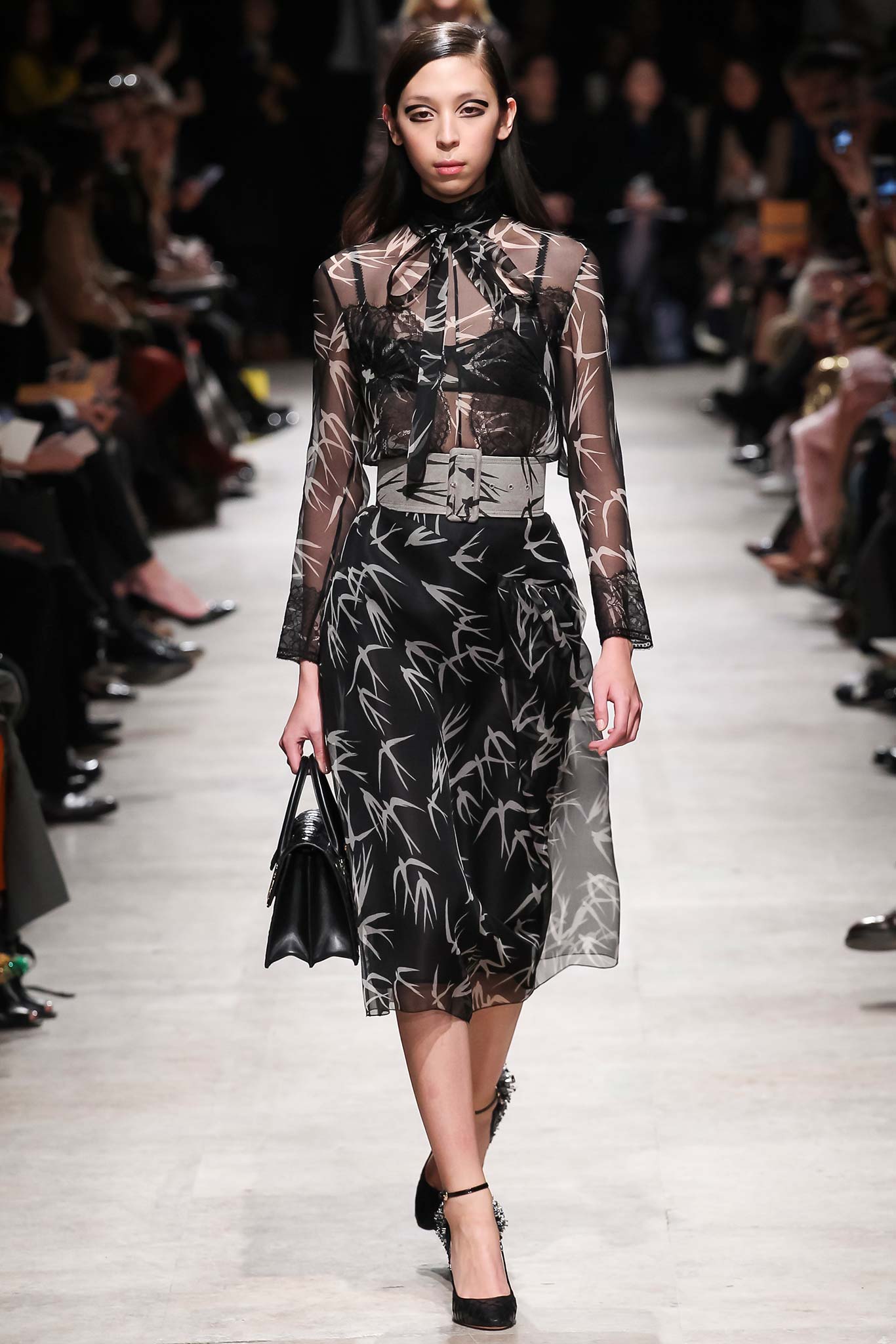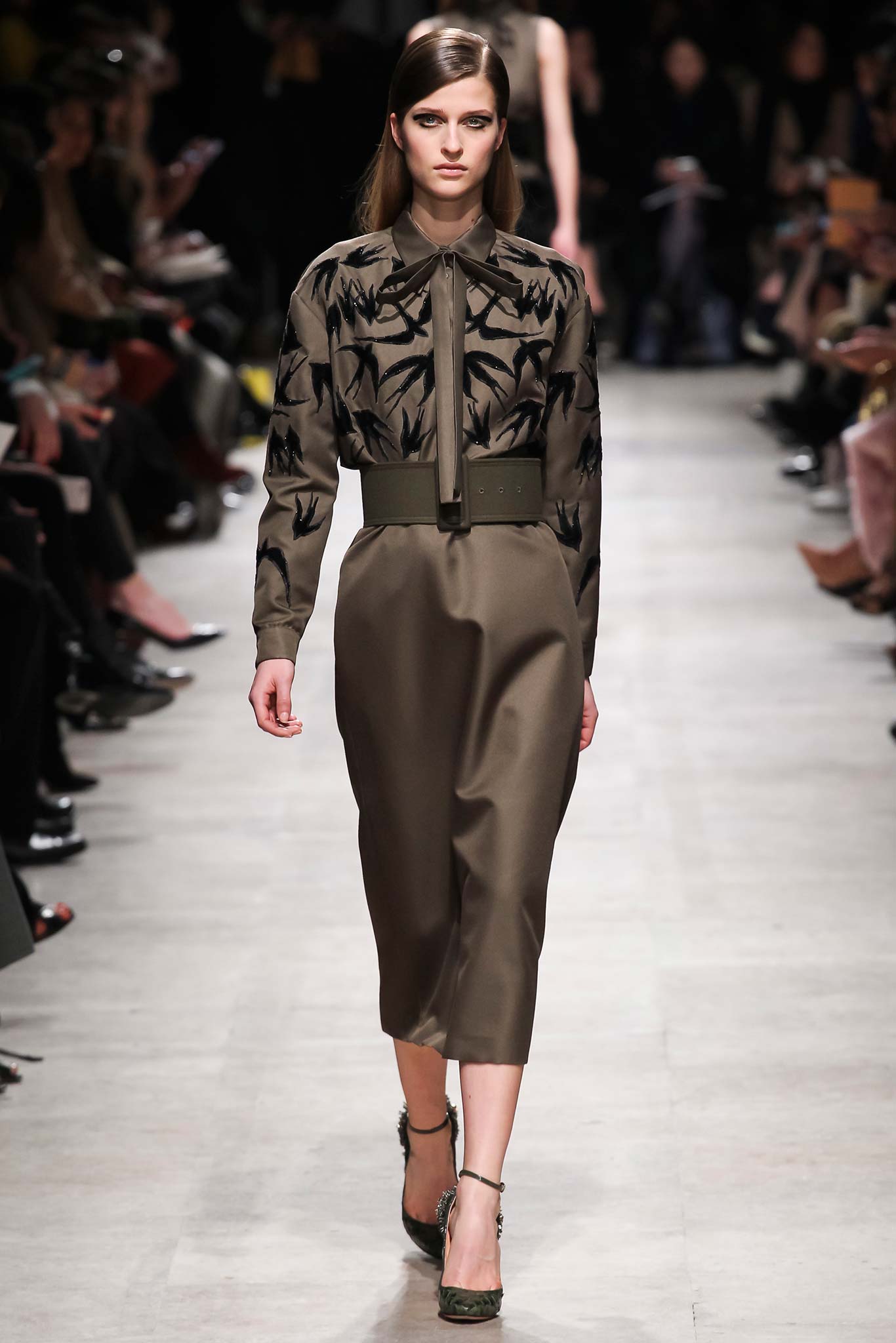這一次設計師是從歷史檔案櫃中,藉著咀嚼品牌舊有的經典,翻新,加入他自己的想法重新詮釋出30年代的優雅女子。品牌經典的燕子也巧妙地成為衣服上面的印花,讓秋冬不再厚重,反而多了一點春天的輕盈。