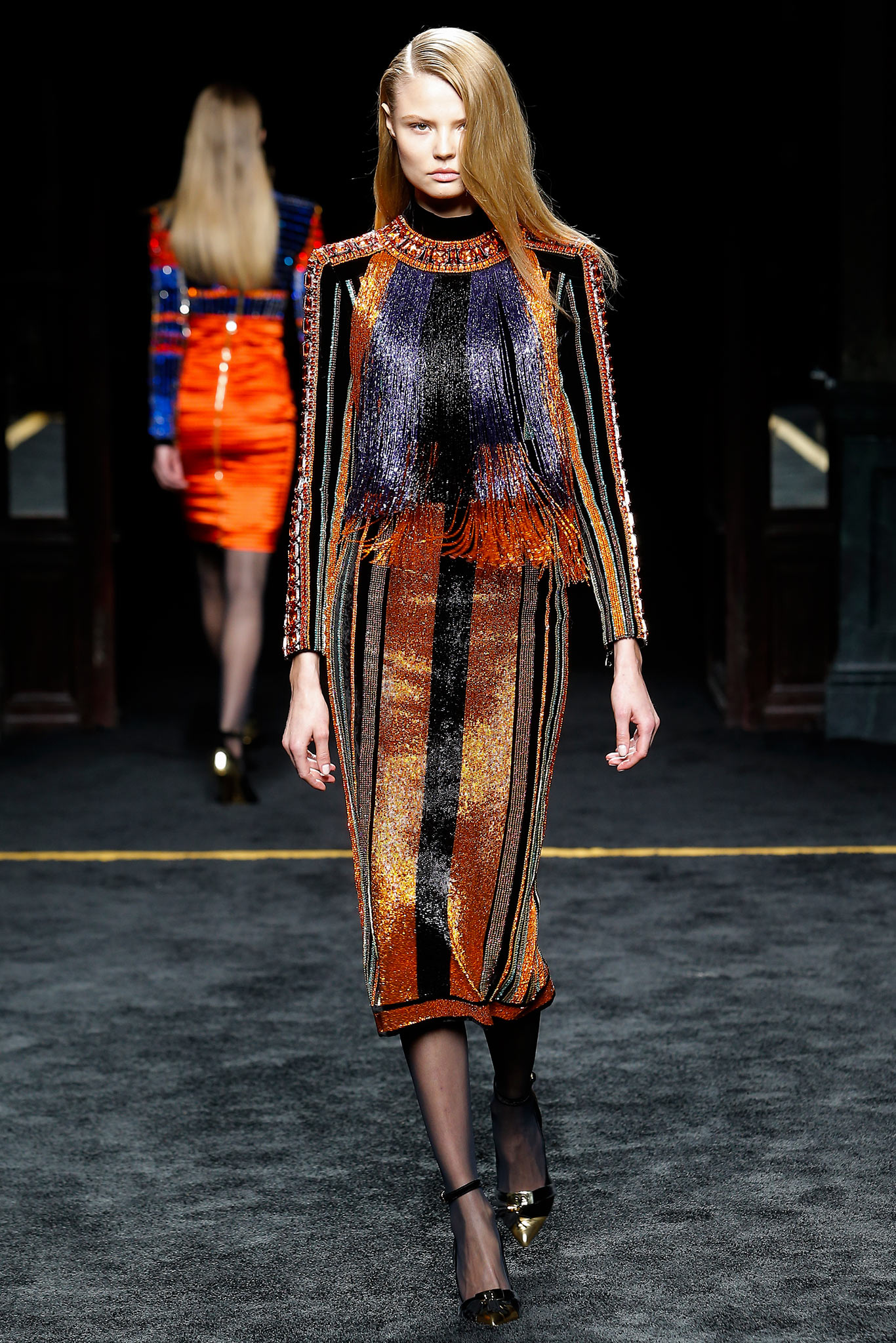 這一季設計師Olivier Rousteing提到了年初發生,震驚世界的法國查理週刊事件,他重申對自由的珍惜以及渴望,也因此,他想到巴黎是個瀰漫著自由氣息的城市,不論是對藝術,或是各式的包容。他連結到了七零年代的大膽氣息,大家都恣意的裝扮自己表現出最符合自己的那一面,這就是他的靈感。