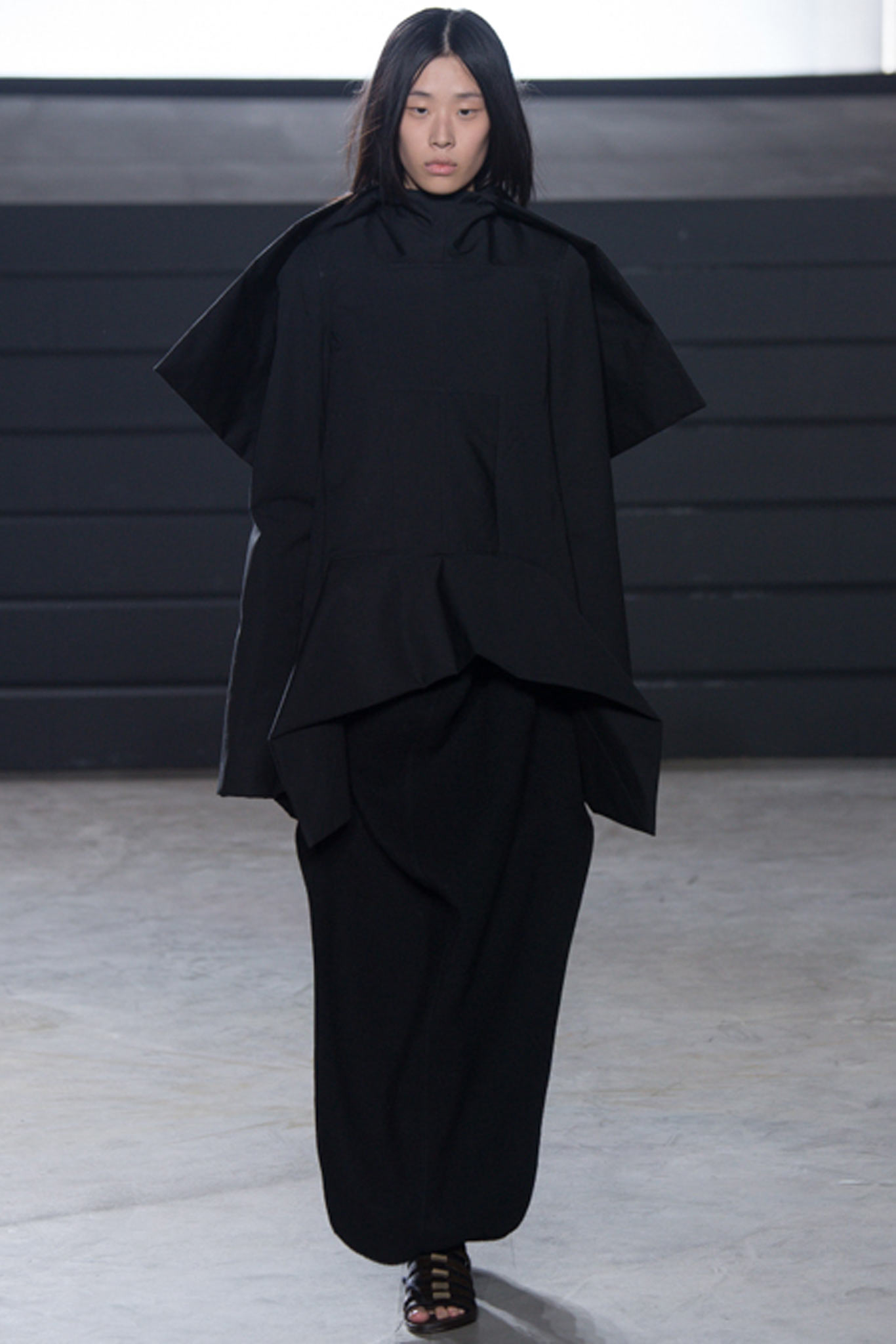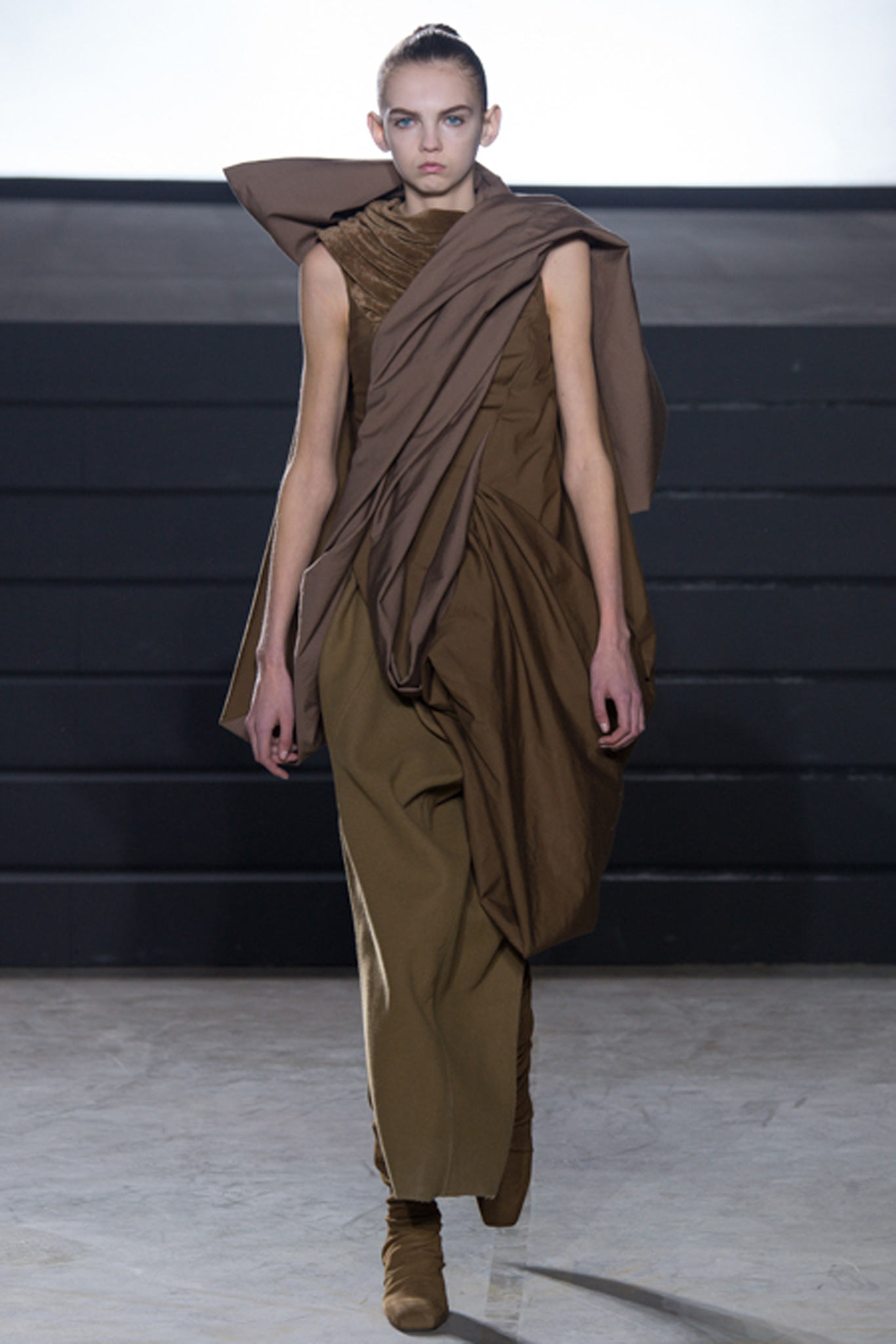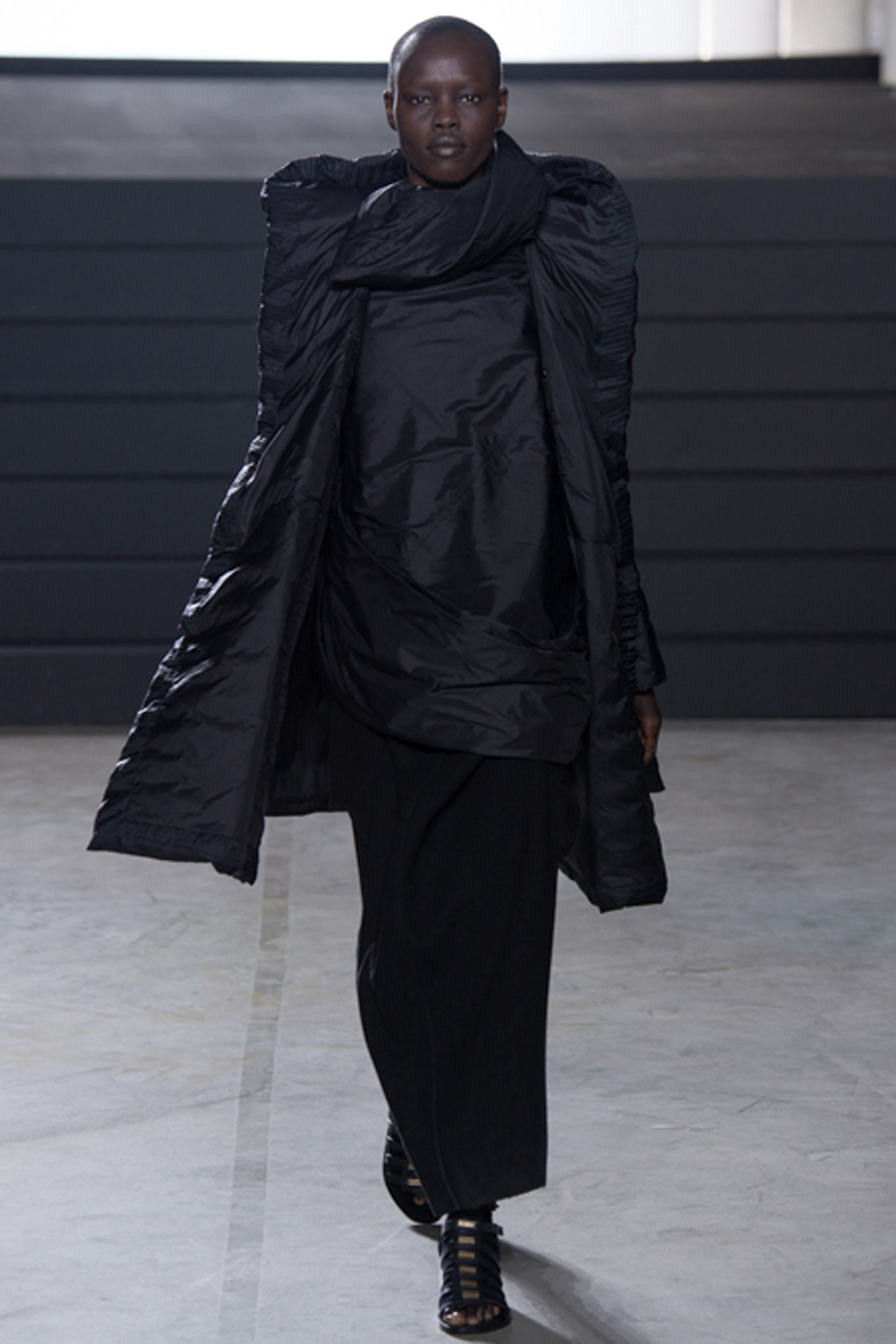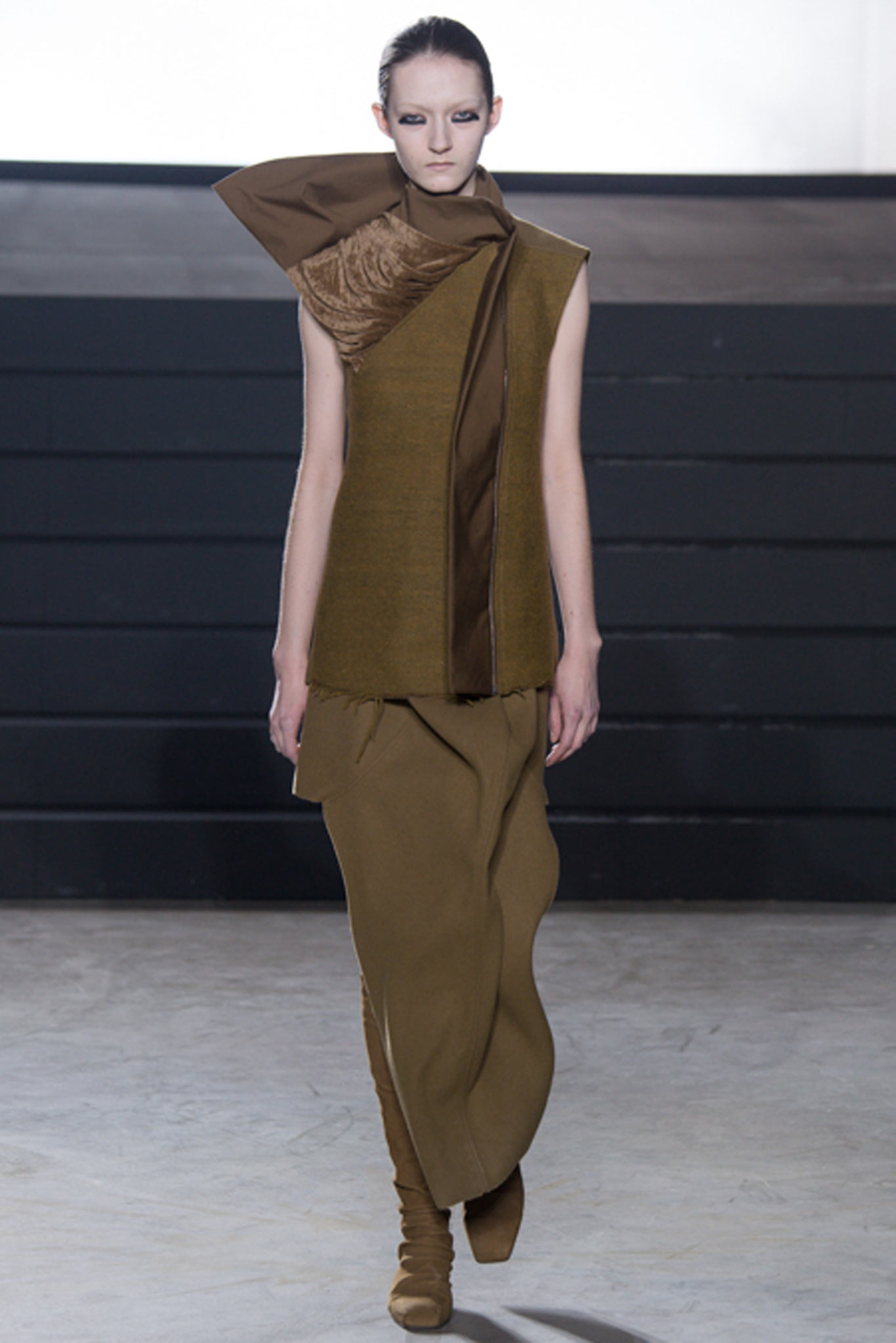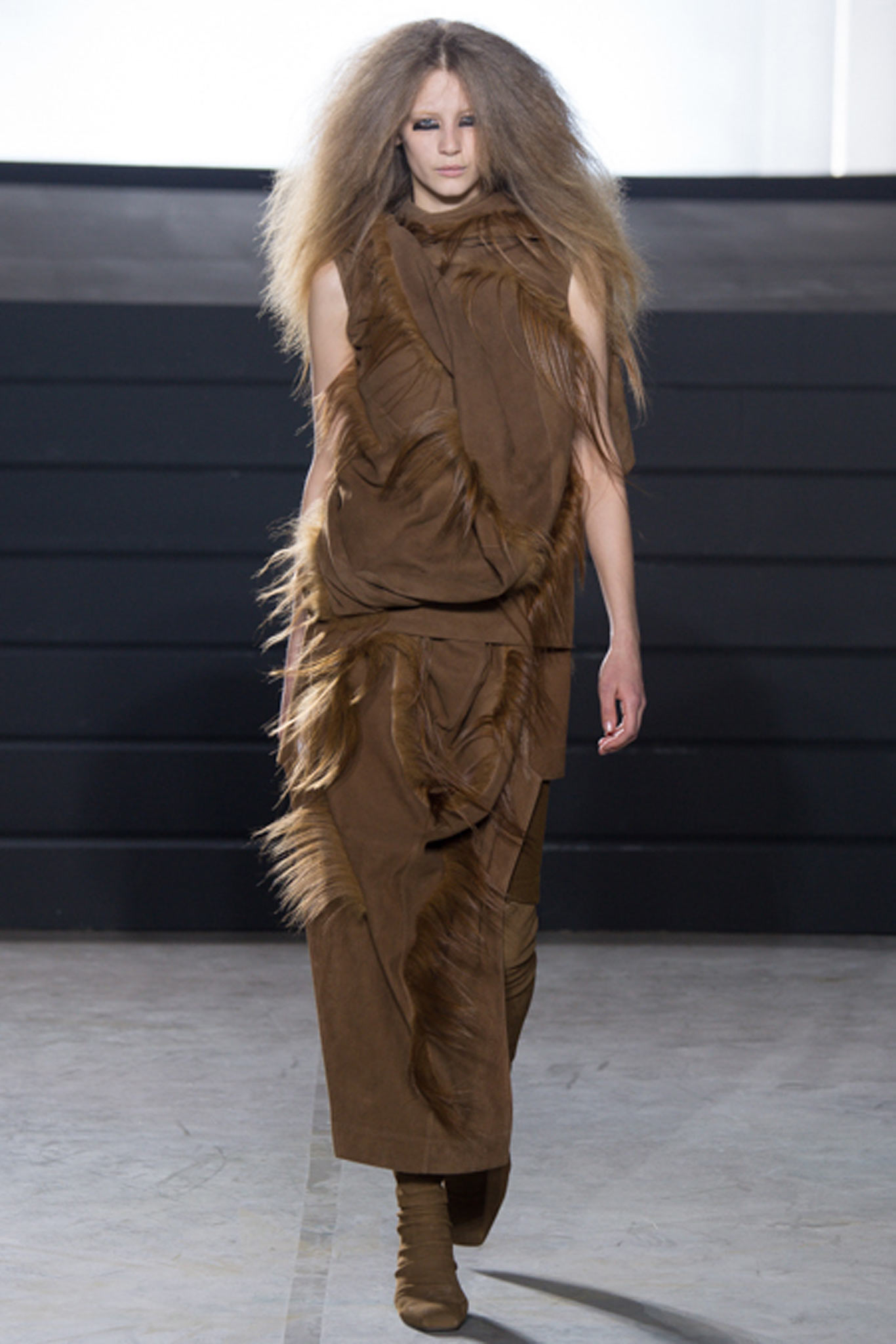 這一季另外一個亮點就是在臉上塗滿金箔的模特兒了,拉遠人的距離,反而和這一季衣服的靈感更有所呼應,我很喜歡這一季的Rick Owens。