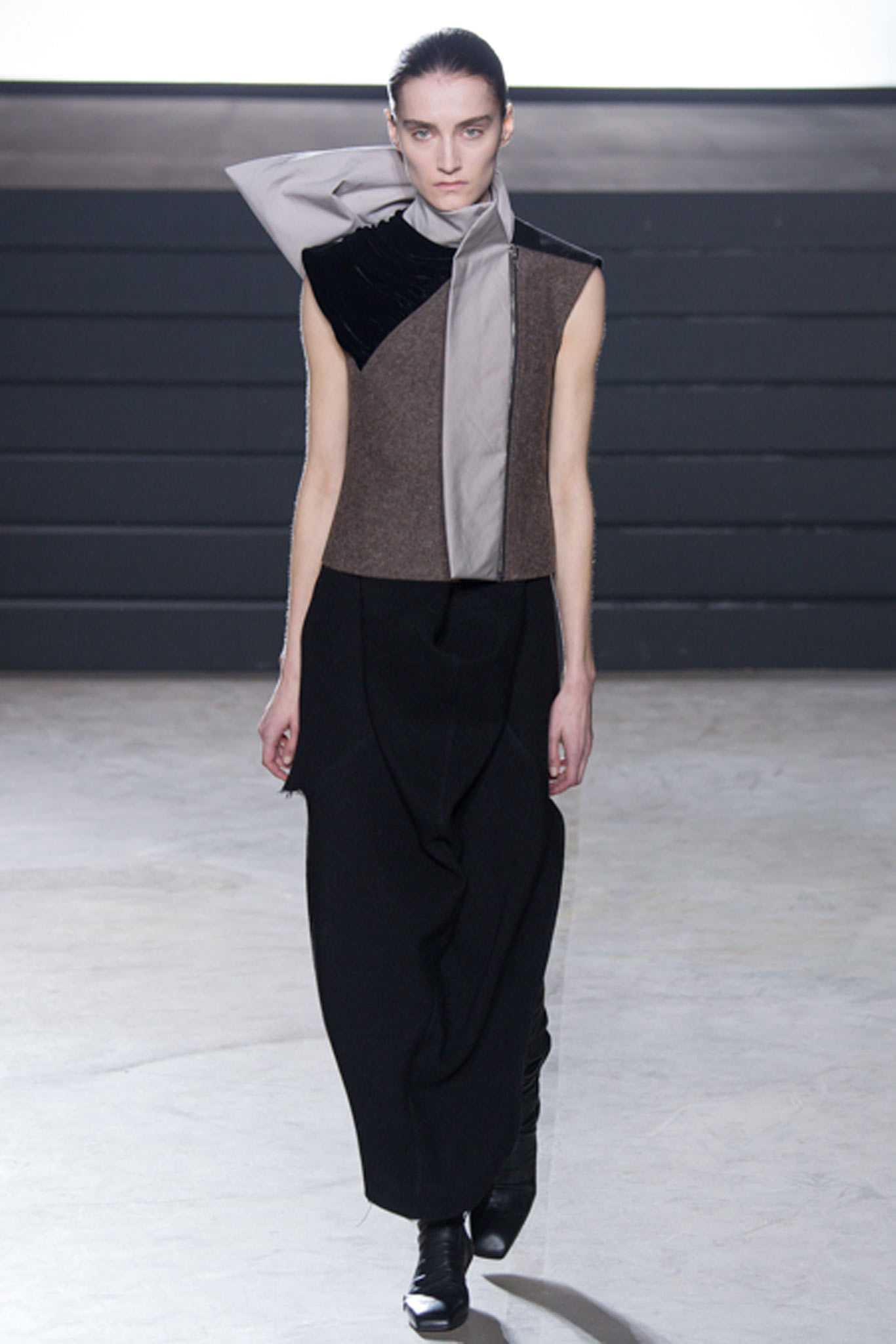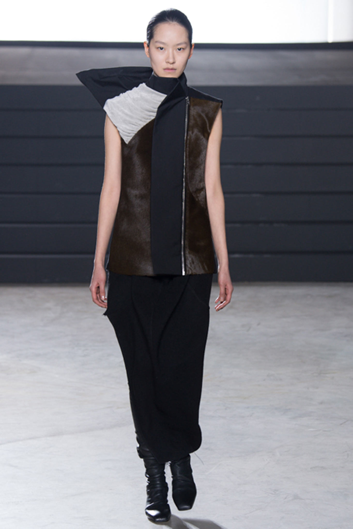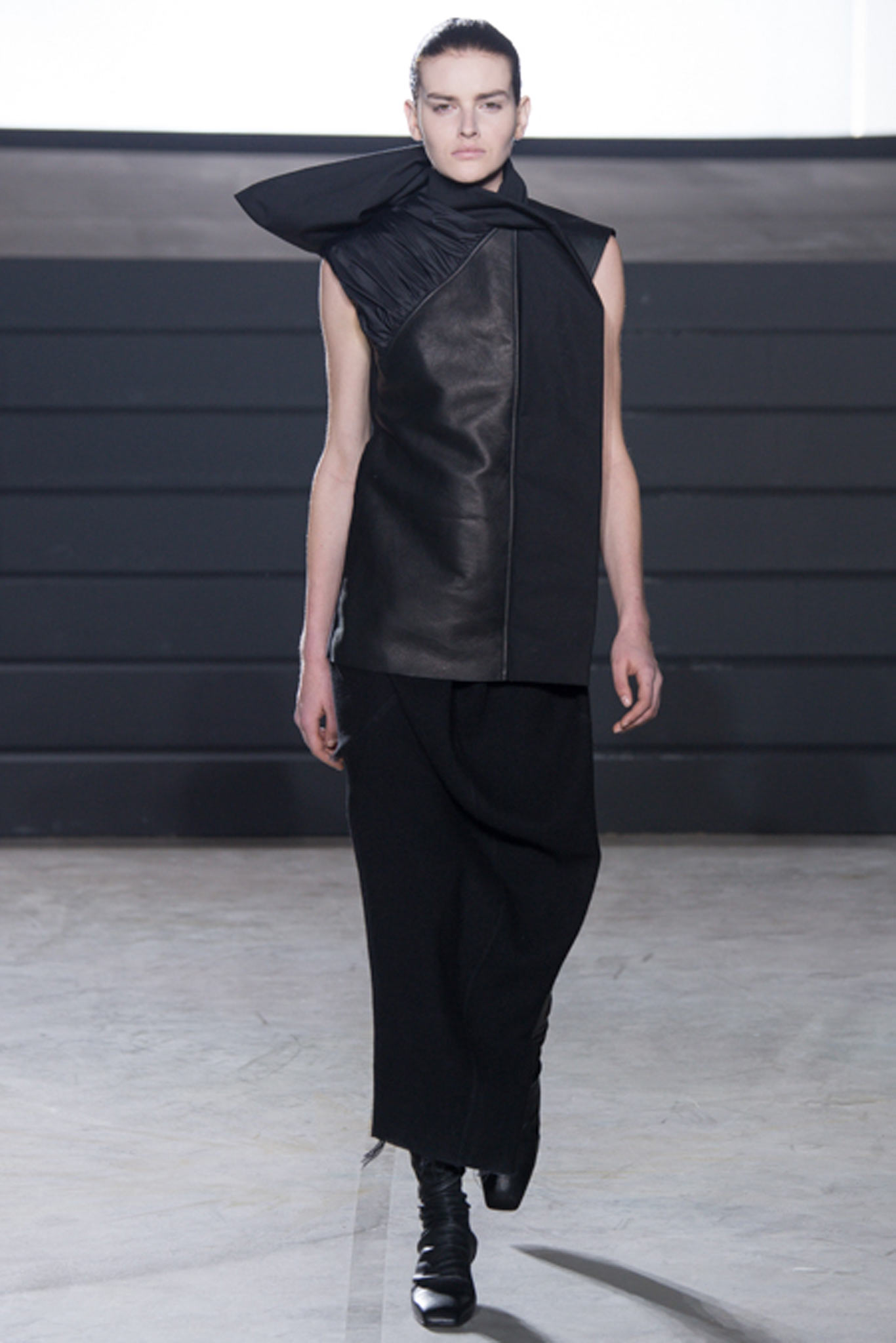 Rick Owens這一季女裝不走男裝那樣驚世駭俗的裸露路線(當然是有設計理念的撐腰啦),而稍微拉回一點,比較私人一點、比較柔軟、也充滿情感。