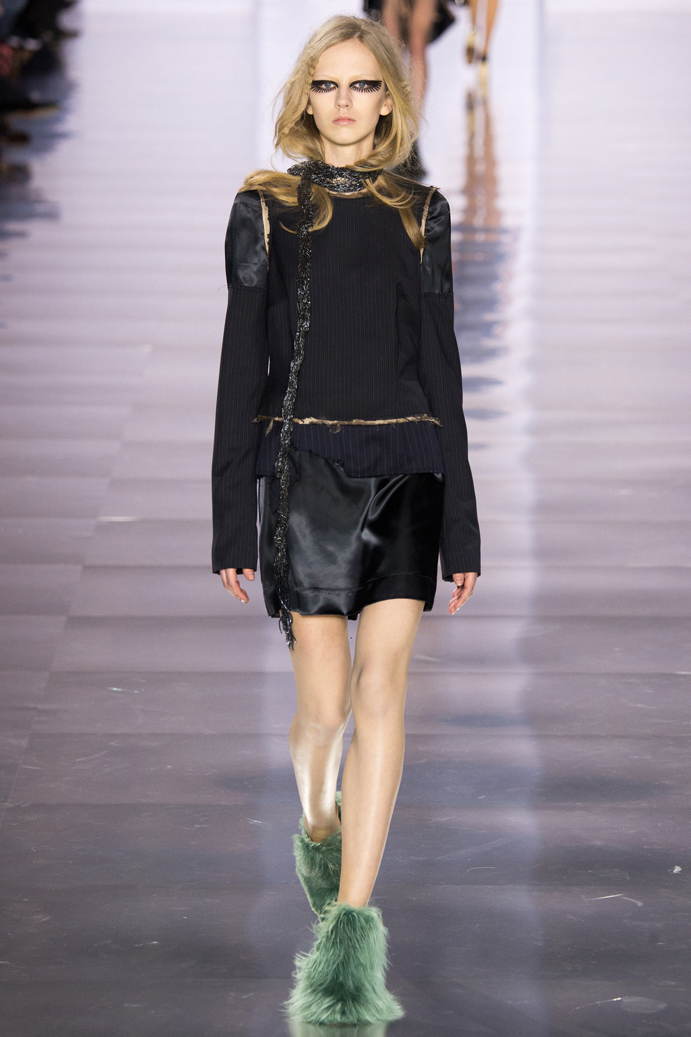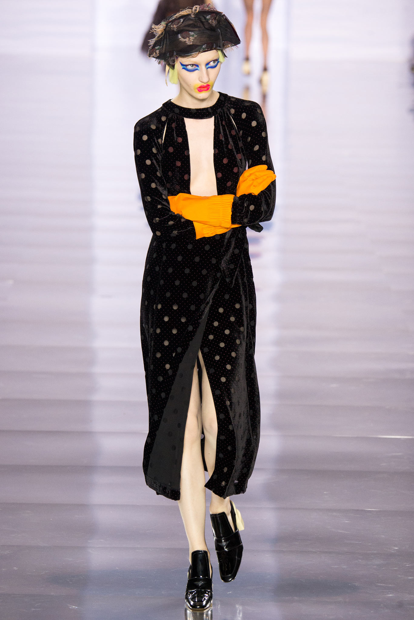 我自己很喜歡這一場秀,有很多面向讓我很喜歡,那就先從衣服本身說起吧。整個系列的風格其實看得出來是從70年代的復古風潮思維出發,他保有了Maison Margiela的解構衣服元素(我想這個部分一定會有很多死忠的MMM迷覺得有點失望,因為解構的力道實在不是很重),也加入了他個人的美感,在很多地方都有有趣的細節。
