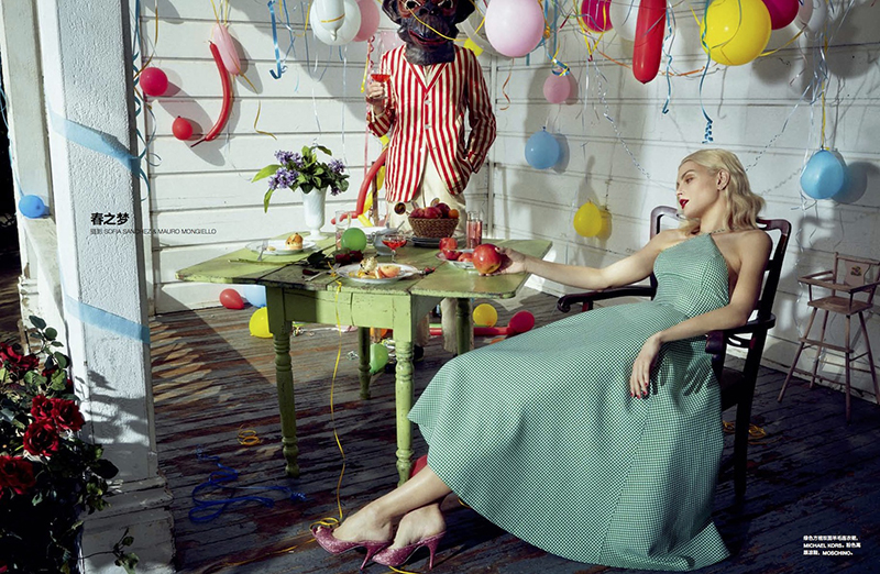 Numéro China四月份請來了Jessica Stam,在攝影師Sofia Sanchez & Mauro Mongiello的鏡頭下,她辦了一個生日派對。這個派對看來盛大,也充滿了成人眼光下的童趣,但是卻瀰漫著一股悲傷感。