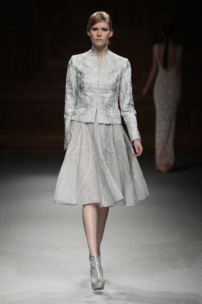 和Elie Saab絕對的柔美不一樣,Tony Ward的作品中透露出更多堅毅以及願意嘗試的個性,因此我們看到在主體輪廓的結構上有一些立體剪裁的設計,接著再搭配上精緻的刺繡、蕾絲、雪紡紗還有各式拼貼的水晶與珠墜。每一套都那麼好看(有些日裝是要把外套脫掉以後才看得出裡面小洋裝的精緻之處),推薦給大家。