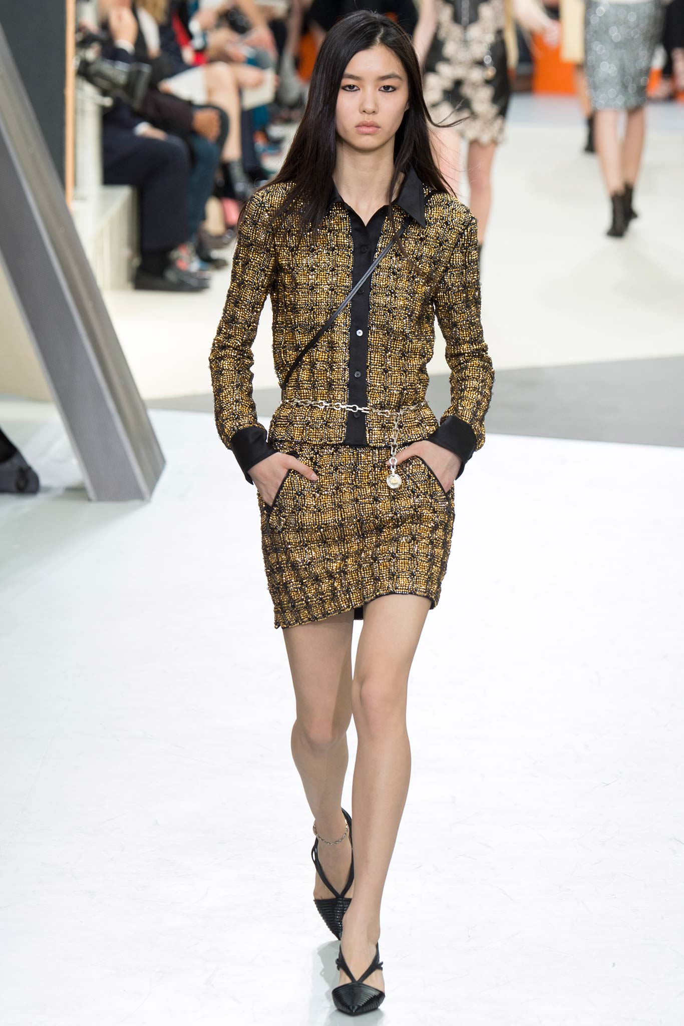 這一套挑得好,以往她選擇的衣服,不是太有設計感以致於她駕馭不來,或者是太平淡以至於像是路人感,這一套很適合她!有一點復古感的配色,充滿精緻手工技法的細節(上衣都逢滿了亮片和珠墜),配合上短裙還有腰部的鍊條腰帶和腳上的娃娃鞋,整體看來相當好看。