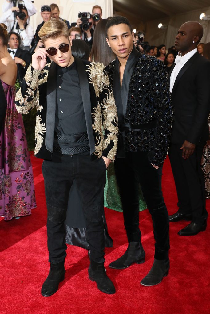 Justin Bieber也來參加這個活動,不得不說我喜歡這一身道上大哥或是上海灘的穿著風。這一套是選自Balmain的西裝,很有氣勢,配上了墨鏡真的很有兄弟風!
