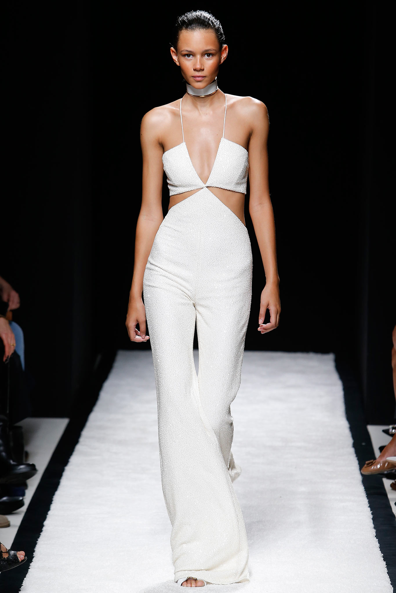 他今天選的是Balmain 2015春夏的連身褲裝,我很喜歡這一套連身褲裝,性感帥氣兼具,又有她的青春活力,她的褲管看起來有秀上那麼誇張,更俐落了。不得不承認,今晚的她,真的很迷人。
