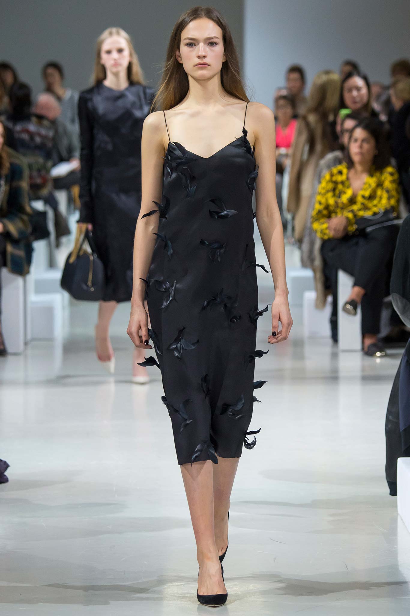 在出席評審團記者會的時候,Sophie Marceau以一身簡單的Nina Ricci 2015秋冬洋裝出席。這一身洋裝線條簡單,但是很從容優雅,洋裝上的繡花(我放大來看以後,覺得應該是品牌的經典的鴿子的具象表徵)使這一件洋裝更充滿了溫柔的氣息。通常這種睡衣感強烈的衣服,很難駕馭,但我很喜歡Sophie Marceau這一次的詮釋,相當好看。