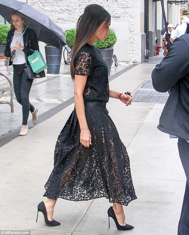 Victoria Beckham又穿了一套還沒亮相的2016早春系列被拍到,這一身由黑色蕾絲組成的上身和裙子,很細膩,相當相當有氣質,她設計的風格也太多變,但都好有品味。