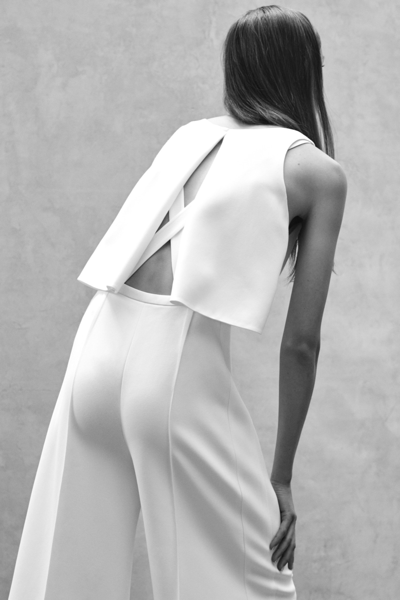 這一系列的衣服質感極高,而且非常有品味,他從一些古典領帶打板的製圖中擷取靈感,把充滿結構感的線條運用在服裝上,簡單大方。除此之外,連身褲的褲子線條有夠讓人心醉,性感又幹練,太好看。而許多在正面看來只是件有件幾何藝術感印花的洋裝或上衣,在背面是以立體切割流露些許性感氣息,相當厲害。